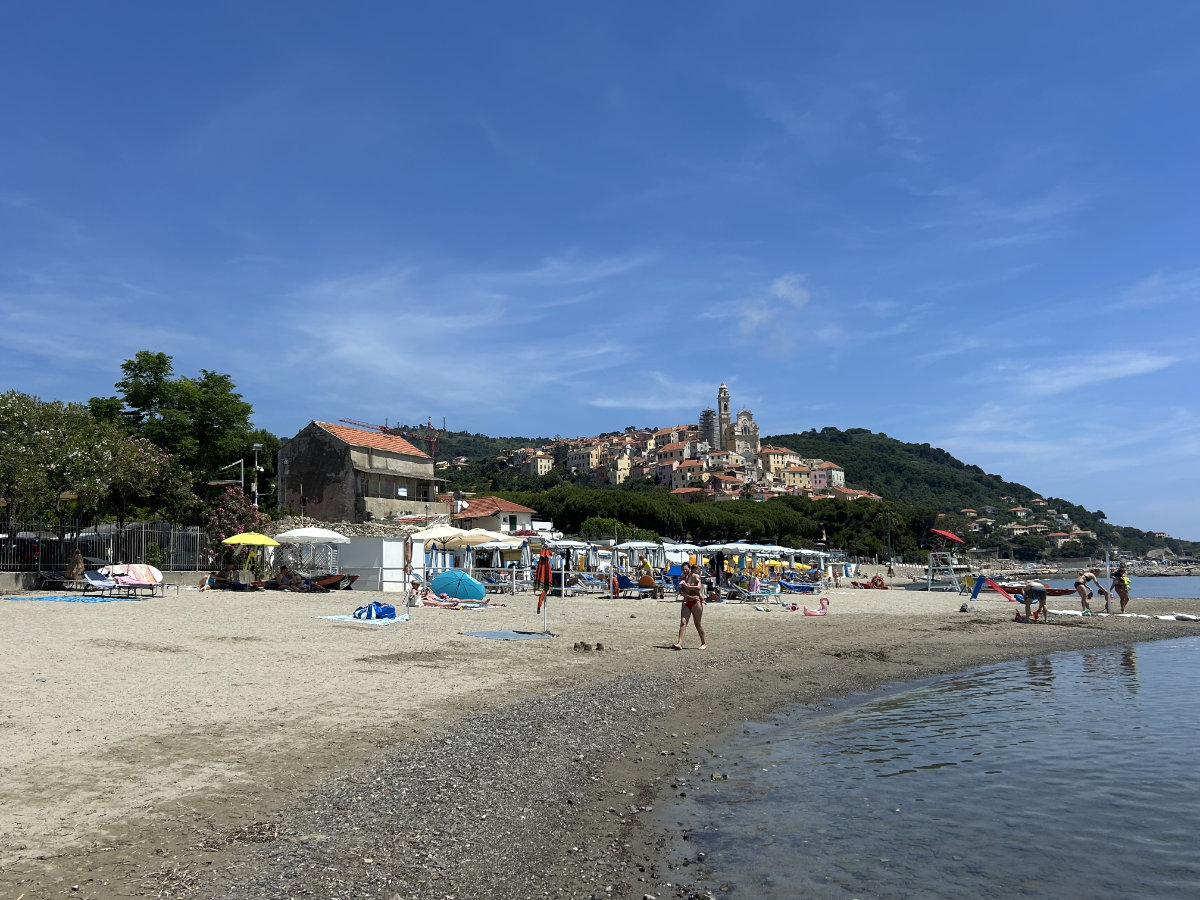 An keinem anderen Ort am Mittelmeer haben wir uns häufiger aufgehalten als hier, an der ligurischen Küste, zwischen Diano Marina und Alassio. Hier beschliessen wir unseren Mediterransabbatical, mit einem Schwumm in der seichten Badebucht bei unserem Campingplatz, einer ausgelassenen Feier zuoberst in Cervo auf einer Restaurantterrasse mit Blick auf das Meer tief unter uns. Ein DJ legt Clubmusik auf und robust ergattere ich uns einen der letzen freien Tische, damit auch wir an der feucht-fröhlichen Party teilnehmen können.