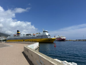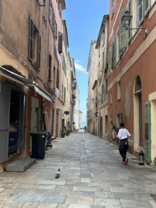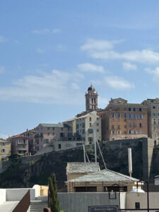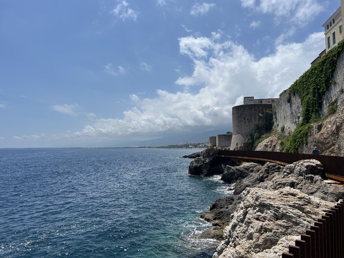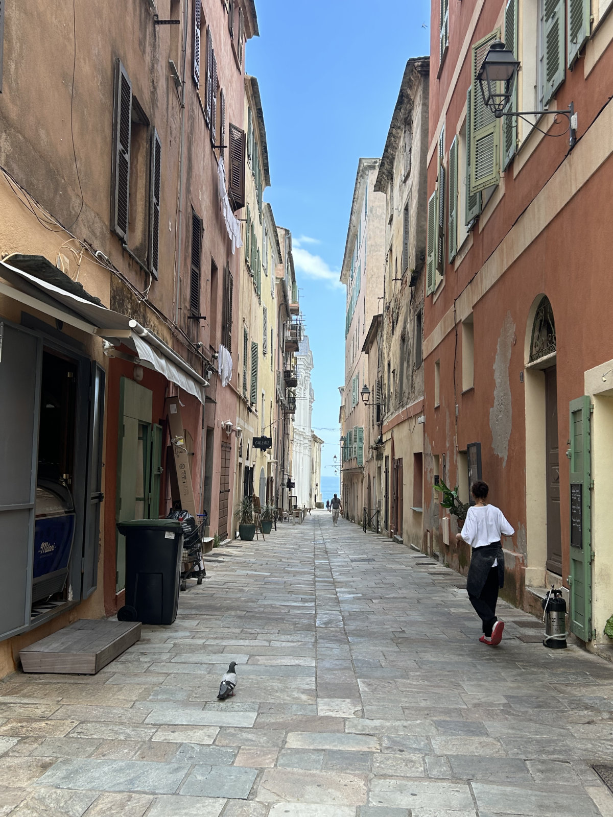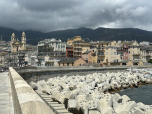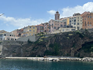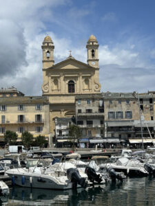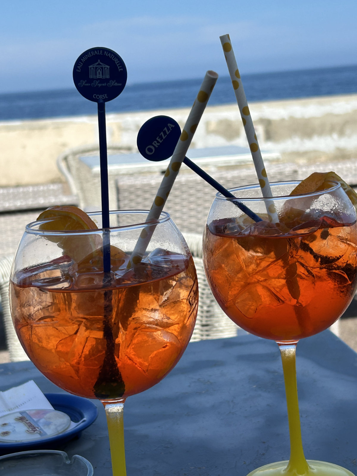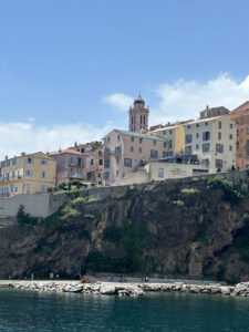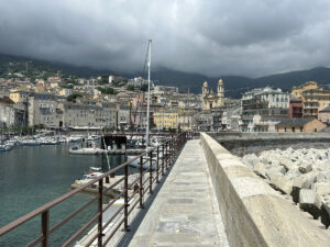 Wir steigen ab und erkunden zuerst den Fährhafen, gehen dann über die riesige Place Saint Nicolas und der Küste entlang bis zum alten Hafen mit seinen Bars und Restaurants, hinter dem die Kirche Saint-Jean-Baptiste mit ihren zwei Türmen aufragt. Wir gehen weiter in südlicher Richtung entlang der Küste, vorbei an der jahrhundertealten Zitadelle mit Festungsmauer, die von den einstigen genuesischen Herrschern erbaut wurde. Wir folgen weiter der Küste und spazieren dann durch ein Stadtviertel zurück zur Zitadelle und der Kathedrale Saint-Marie. Wir kehren ein um zu essen und erkunden anschliessend die überraschend grosse Altstadt von Bastia. Uns gefällt, was wir von der Stadt sehen und bevor wir den steilen Weg nach Hause in Angriff nehmen, setzen wir uns auf eine Restaurantterrasse in der Nähe des alten Hafens und bestellen einen Aperol Spritz.