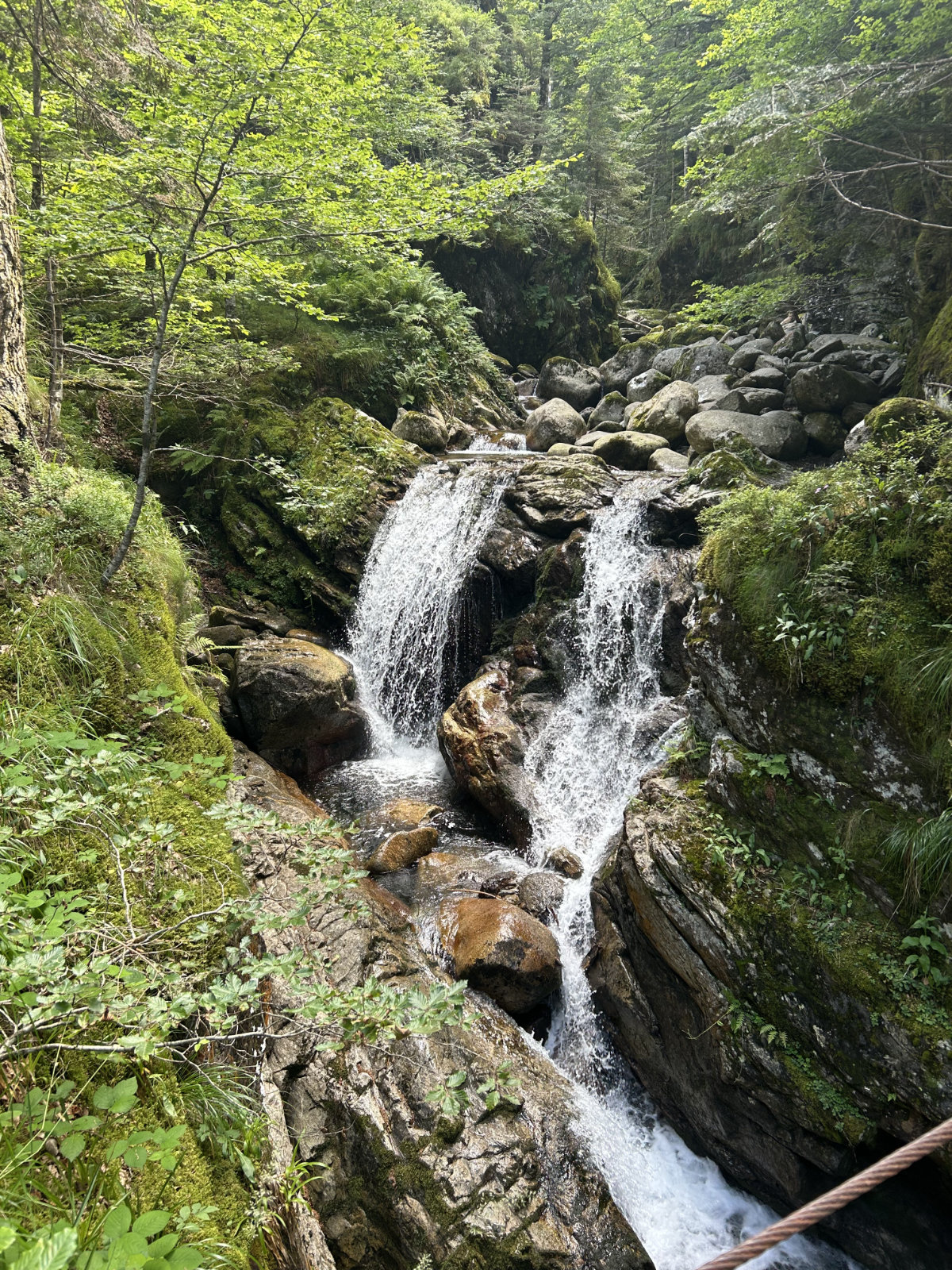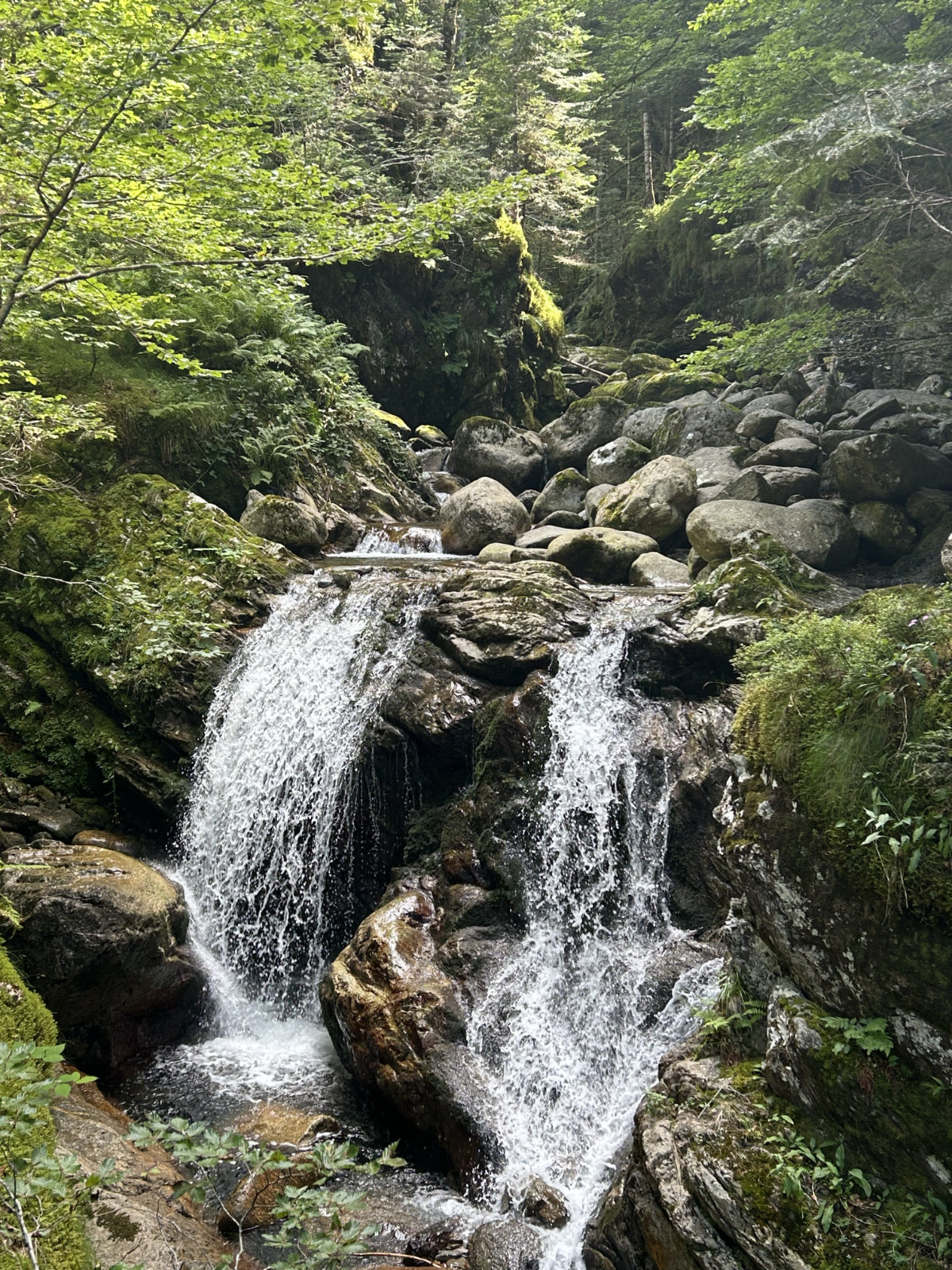 Wir sind gegen 10 Uhr beim Parkplatz von Castillone-de-Larboust eingetroffen und waren die ersten, die das Auto mangels freien Parkplätzen am Strassenrand abstellen mussten. Ganz in der Nähe befindet sich der Wasserfall «Cascade d’Enfer», Startpunkt unserer heutigen Kaskadenwanderung, der längsten und anstrengendsten Wanderung, seit wir unterwegs sind. Als wir gegen 16 Uhr wieder beim Parkplatz eintrafen, war der Strassenrand mit Fahrzeugen gesäumt, wir waren also längst nicht die letzten Wandervögel, die dort eingetroffen sind. Ich wiederhole mich gerne: die Wanderung war schön, sehr schön, wunderschön!