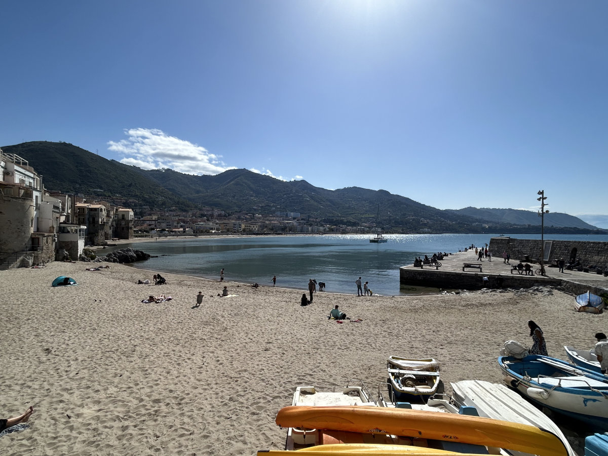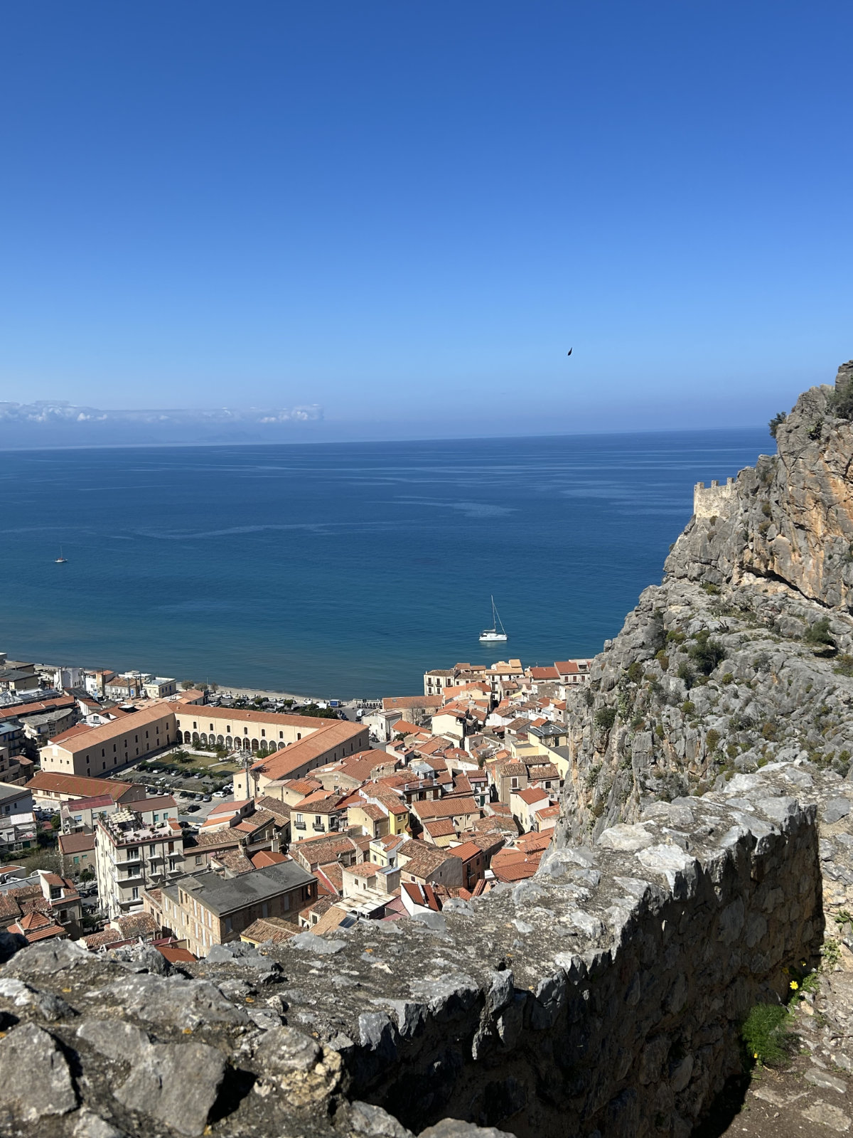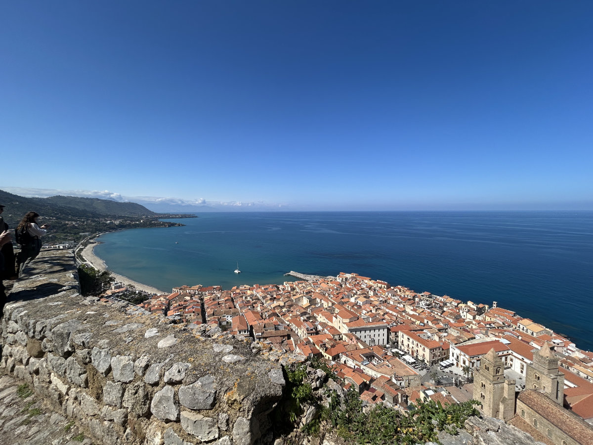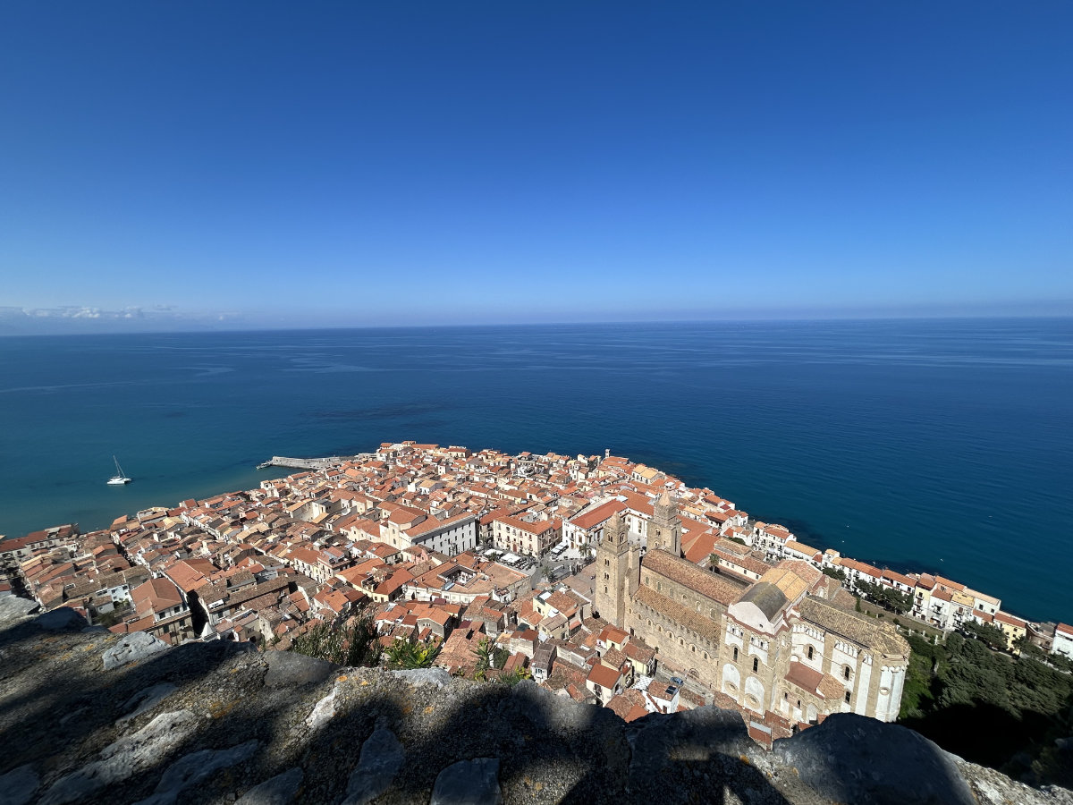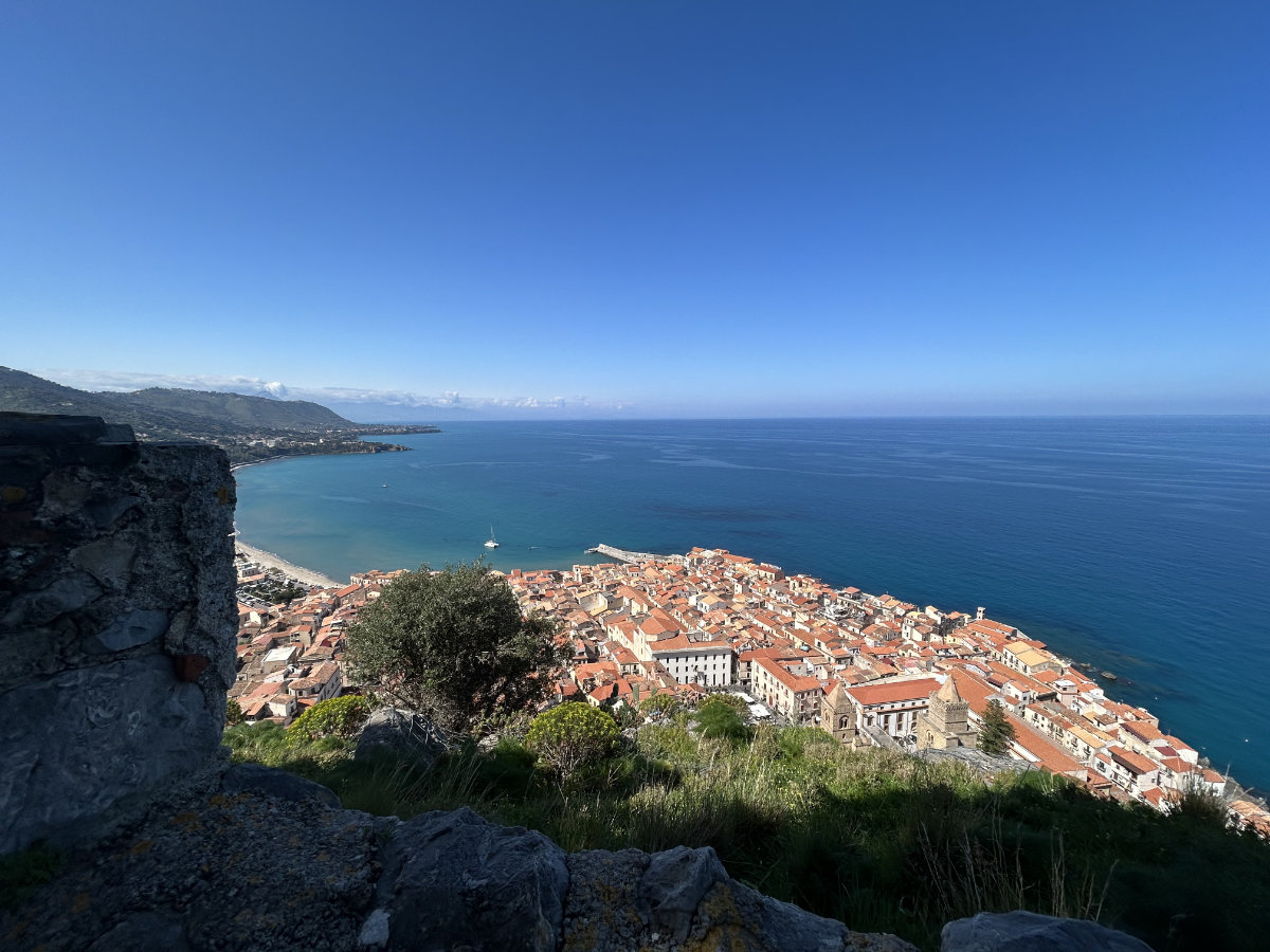 Cefalù ist ein weiterer touristischer Hotspot auf Sizilien. Die Stadt liegt zu Füssen eines 270 Meter hohen Kalksteinfelsens und wurde schachbrettartig um den Dom San Salvatore und die Piazza del Duomo angelegt. Die meisten Häuser der Altstadt stammen aus dem 16. Jahrhundert. Der ganze Felsberg, der die Stadt überragt, war einst eine Festung. Für 5 Euro lässt sich der Felsen erklimmen, vorbei an Ruinen und Zisternen bis zu den Ruinen des Castello, das einst zuoberst auf dem Fels thronte. Der Aufstieg bietet herrliche Aussichten auf die Stadt, die Buchten und Strände und kommt einer kleinen Bergwanderung gleich. Wir sind mit dem Zug hingefahren, in knapp 15 Minuten vom Bahnhof ganz in der Nähe unseres Zeltplatzes und verbrachten dort einen warmen und sonnigen Tag.
