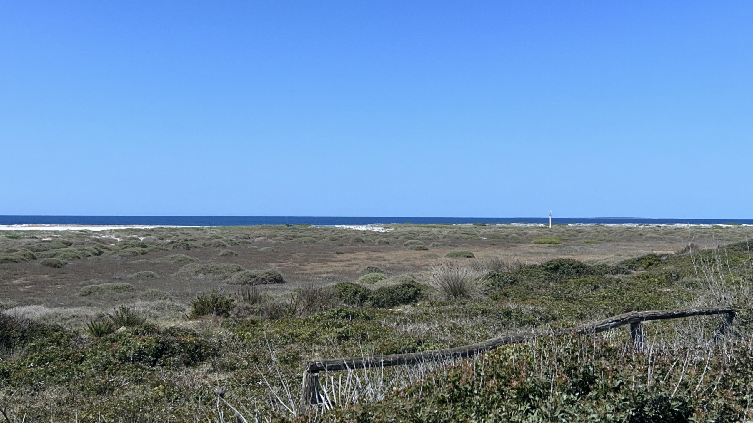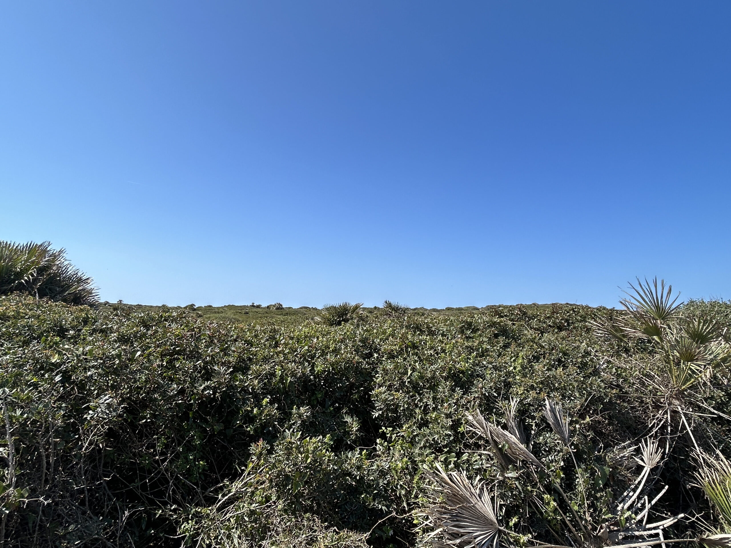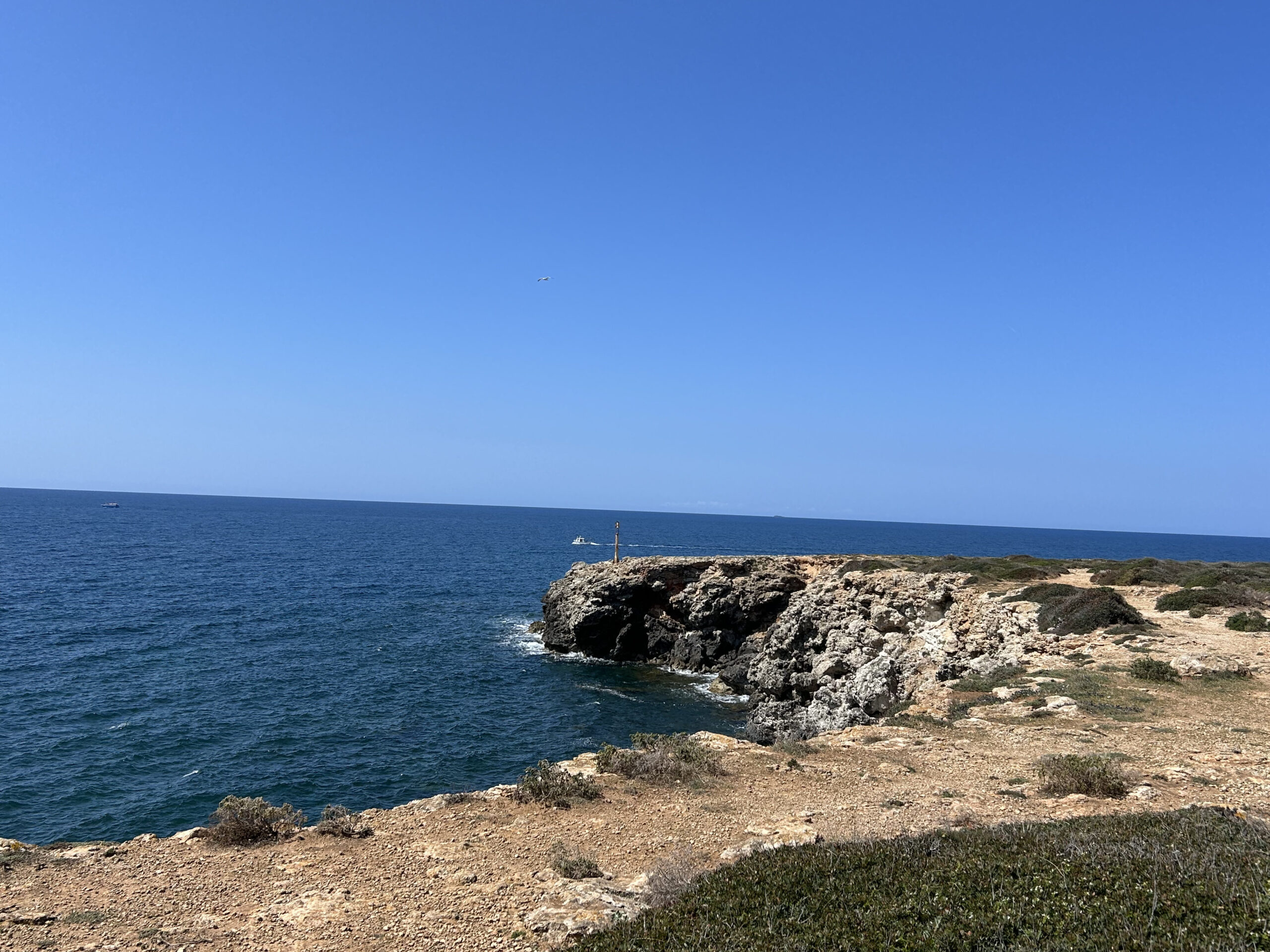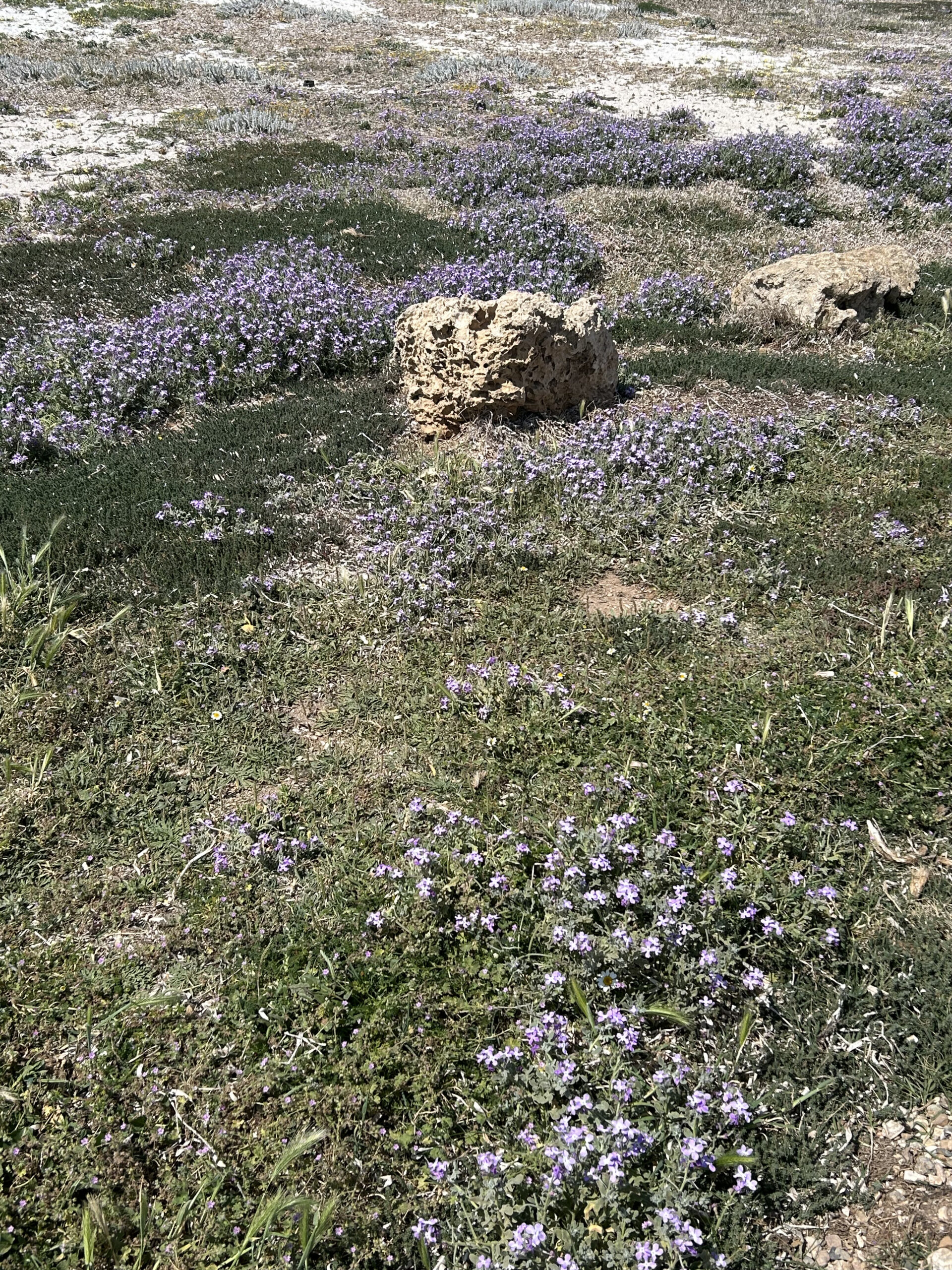 Heute gehen wir durch den Naturpark Turr e Seu, durch dichte, hüfthohe Macchia, eine Vielzahl an ineinander verschachtelten Pflanzen drängen sich hier auf engem Raum, von Zeit zu Zeit bilden Bäume einen schattigen Spalier, durch den unser Weg führt, wo die Macchia im Landesinnern endet, schliessen sich gelbe und grüne Flächen an, es sind landwirtschaftliche Felder. Als wir die Küste erreichen, haben wir Ausblick auf das Cap San Marco, wir gehen am Torre di Seu vorbei und erreichen die Spiaggia di Maimoni. Der Strand besteht grösstenteils aus reiskorngrossen, rundgewaschenen Quarzteilchen. Wir gehen der Küste entlang, der Maestrale sorgt dafür, dass wir nicht überhitzen, die Sonne scheint kräftig von einem beinahe wolkenlosen Himmel. Die Macchia entlang der Küste gleicht nun bodendeckenden Pflanzen, die uns kaum bis zum Knie reichen. Wir setzen uns an den Strand, essen Salami und Käse und bewundern den schönen Küstenstreifen, bevor wir ins nur wenige Kilometer entfernte San Giovanni di Sinis fahren, um uns einen Apéro zu gönnen.