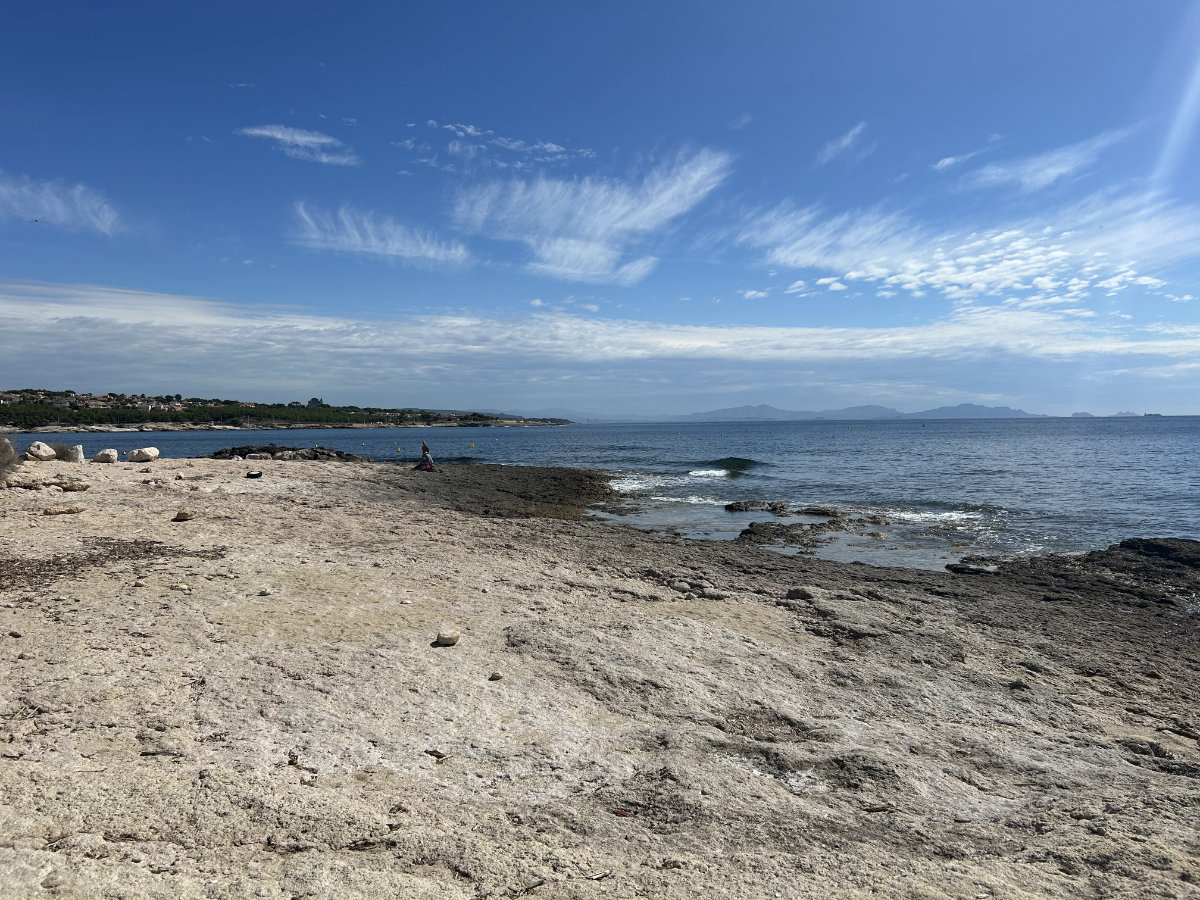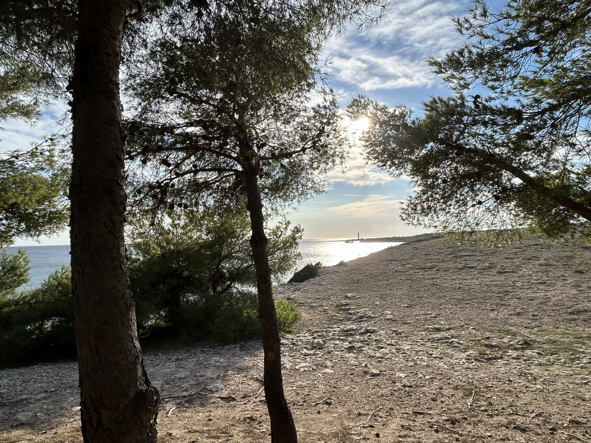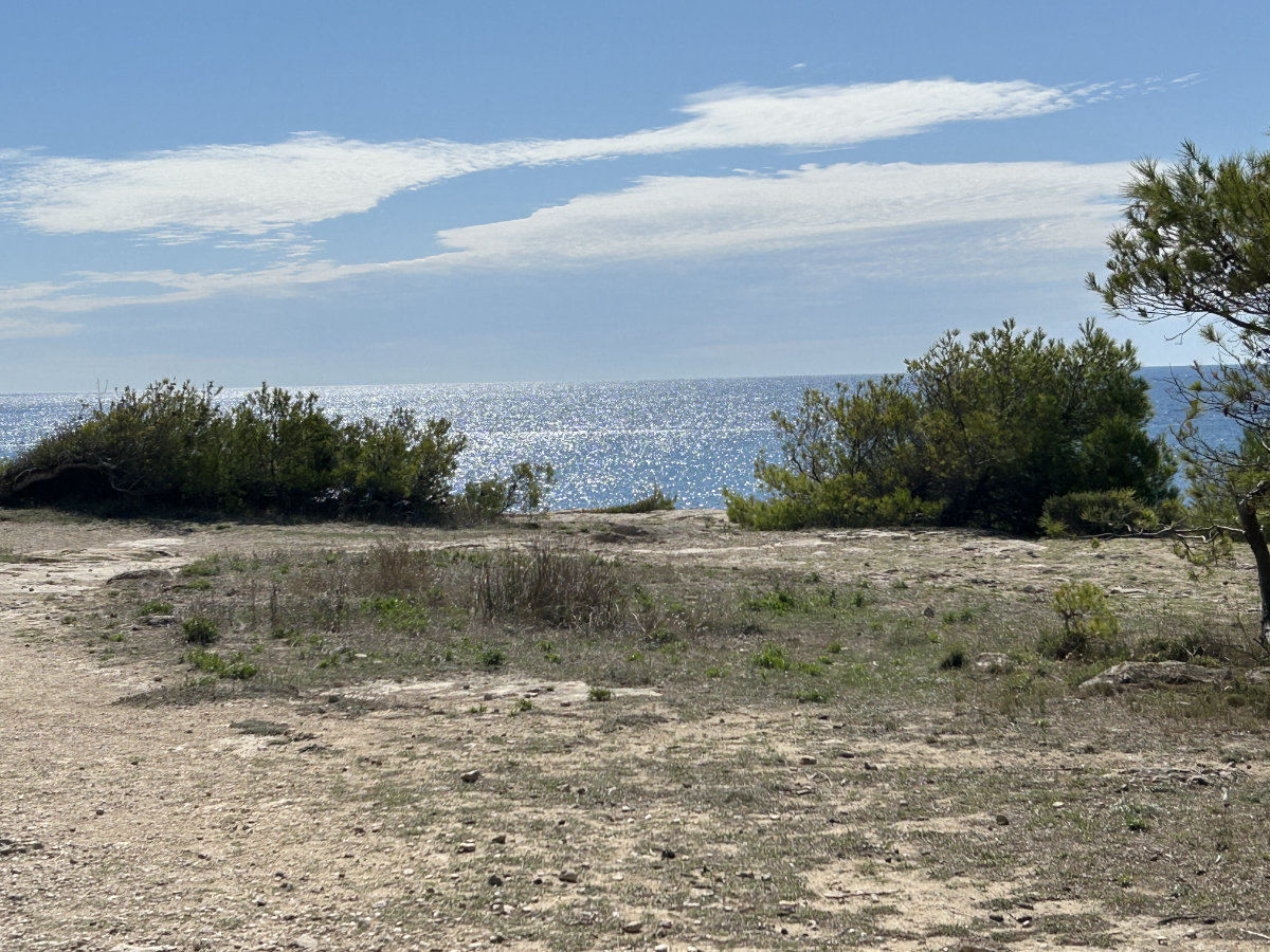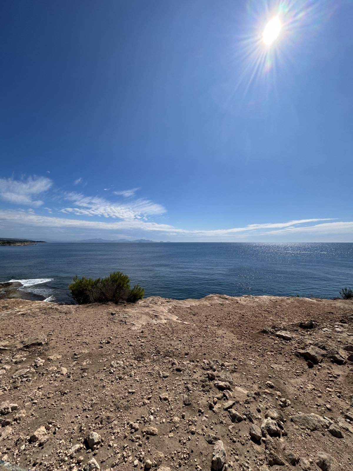 Wir gehen vom Strand in St. Croix westwärts, über lehmigen und sandigen Pfaden vorbei an Pinienhainen und später über steinigen Boden und Felsklippen, mit einem atemberaubenden Blick auf das tiefblaue Mittelmeer. Die Sonne scheint bei angenehmen Temperaturen von 24 Grad, es weht eine leichte Brise, perfekte Bedingungen für unsere heutige Küstenwanderung.