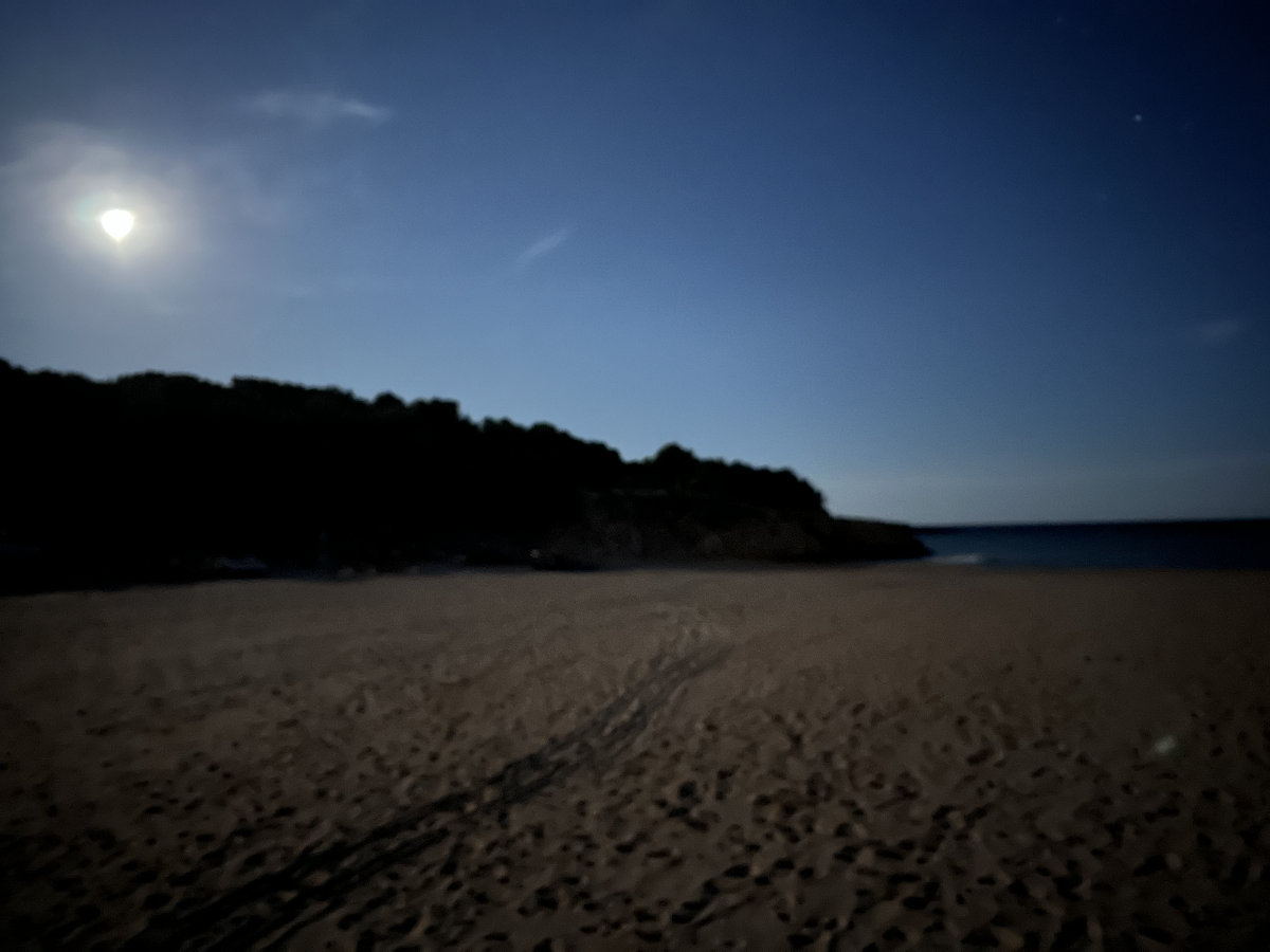 Wir haben heute zum 10. Mal, seit wir unterwegs sind, unser grosses Tipi aufgestellt. Anschliessend wollten wir fischen gehen, wir hatten Lust auf Bullenhaileberli, aber schliesslich zogen wir es vor, etwas der Küste entlang zu gehen, und in einem gediegenen Restaurant einzukehren. Dank des hellen Mondscheins fanden wir problemlos den Weg zurück zu unserem Campingplatz.