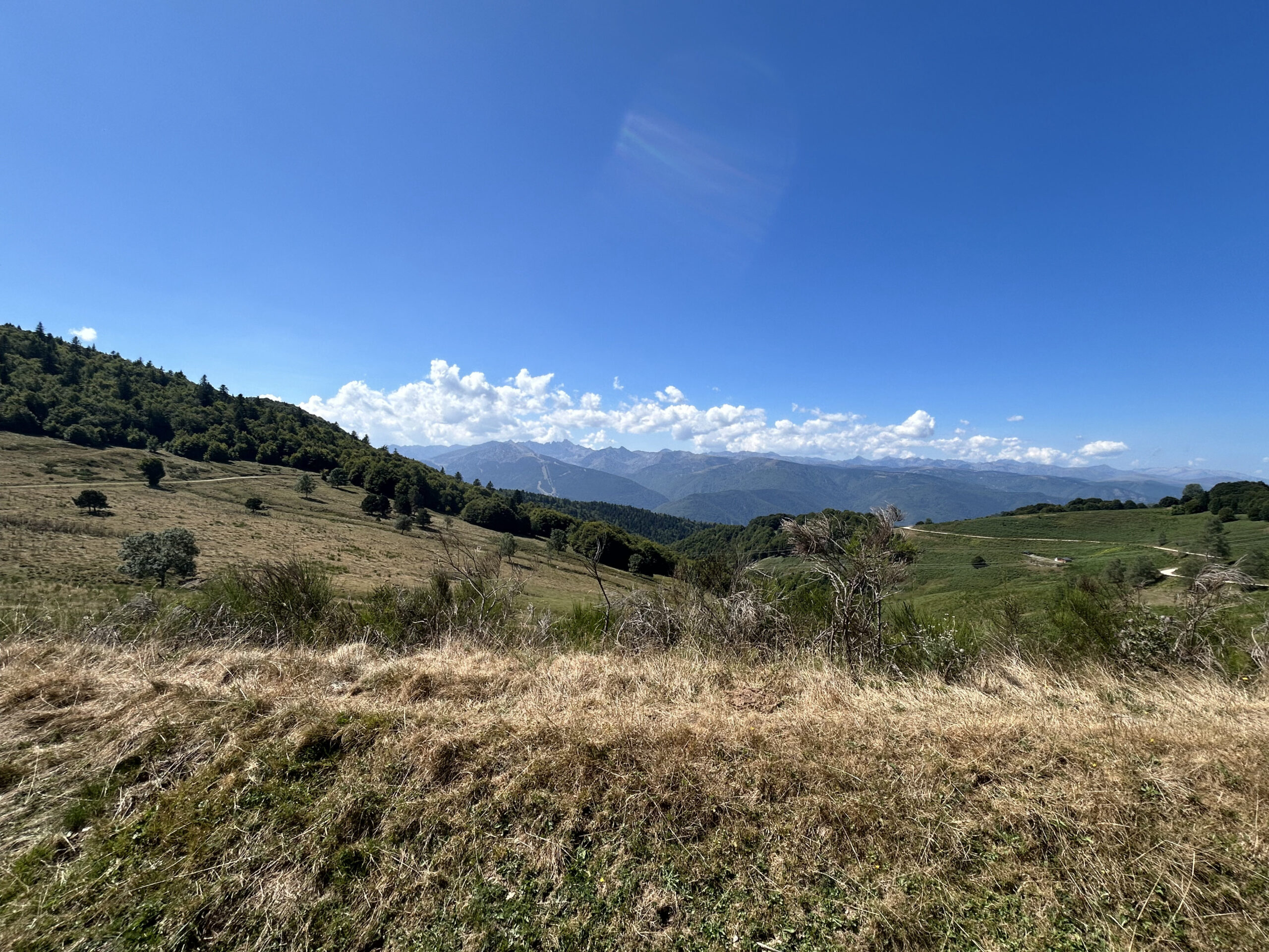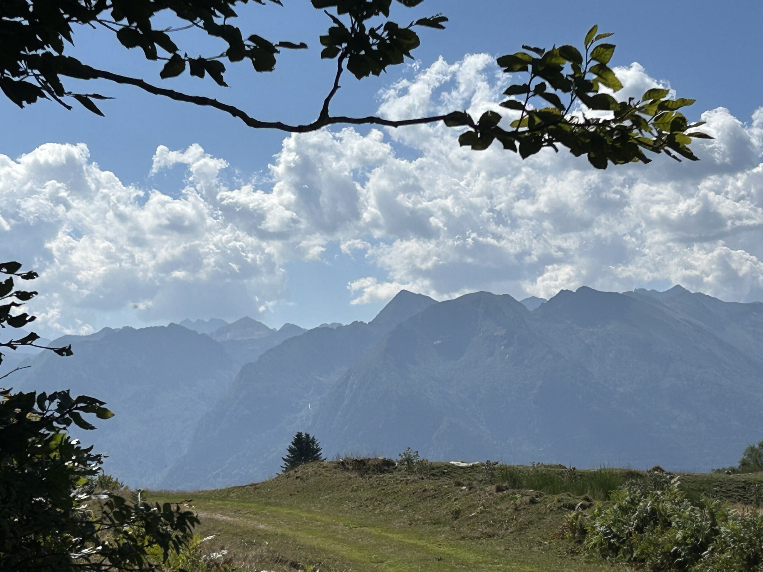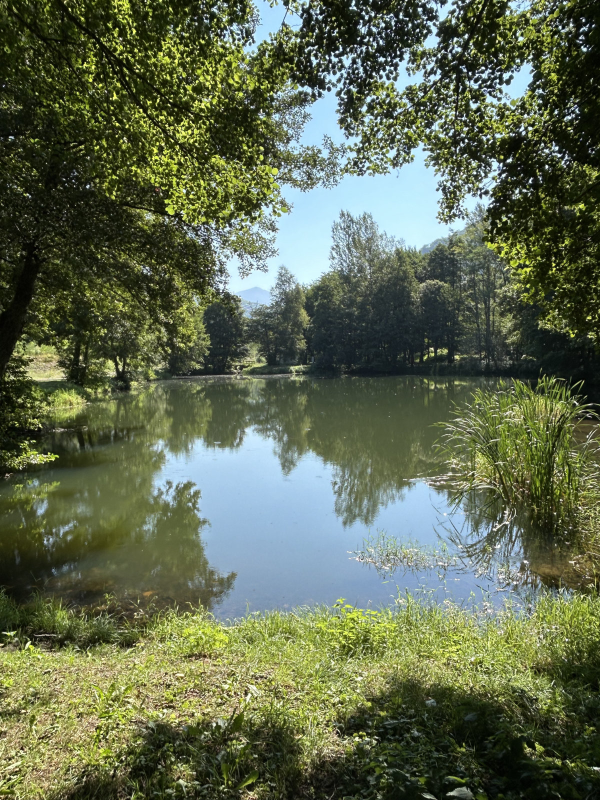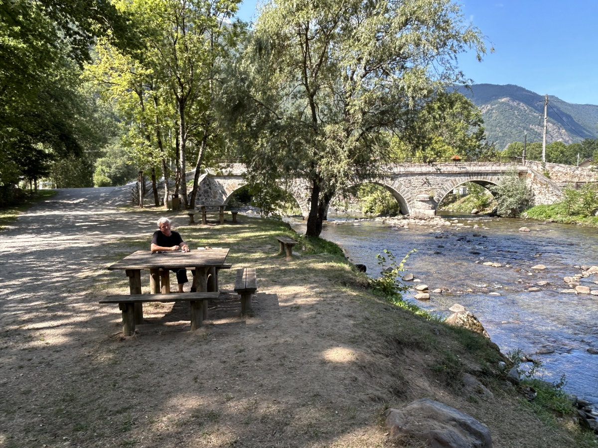 Von Ax-les-Thermes sind es 11 Kilometer die Passstrasse hoch zum Col de Chioula (1431m). Ein schöner Spaziergang führt uns am Waldrand entlang, über Felder, Wiesen und Weiden, manchmal auch durch den Wald, einmal hoch, dann wieder runter. Immer wieder haben wir wunderschöne Aussichten auf die Berge. Selbst an der prallen Sonne ist es hier oben nicht zu heiss, zurück auf dem Zeltplatz messen wir 37 Grad. Wir verziehen uns deshalb für ein Picnic zu den drei Weihern, nicht weit entfernt vom Zeltplatz und rasten im Schatten.