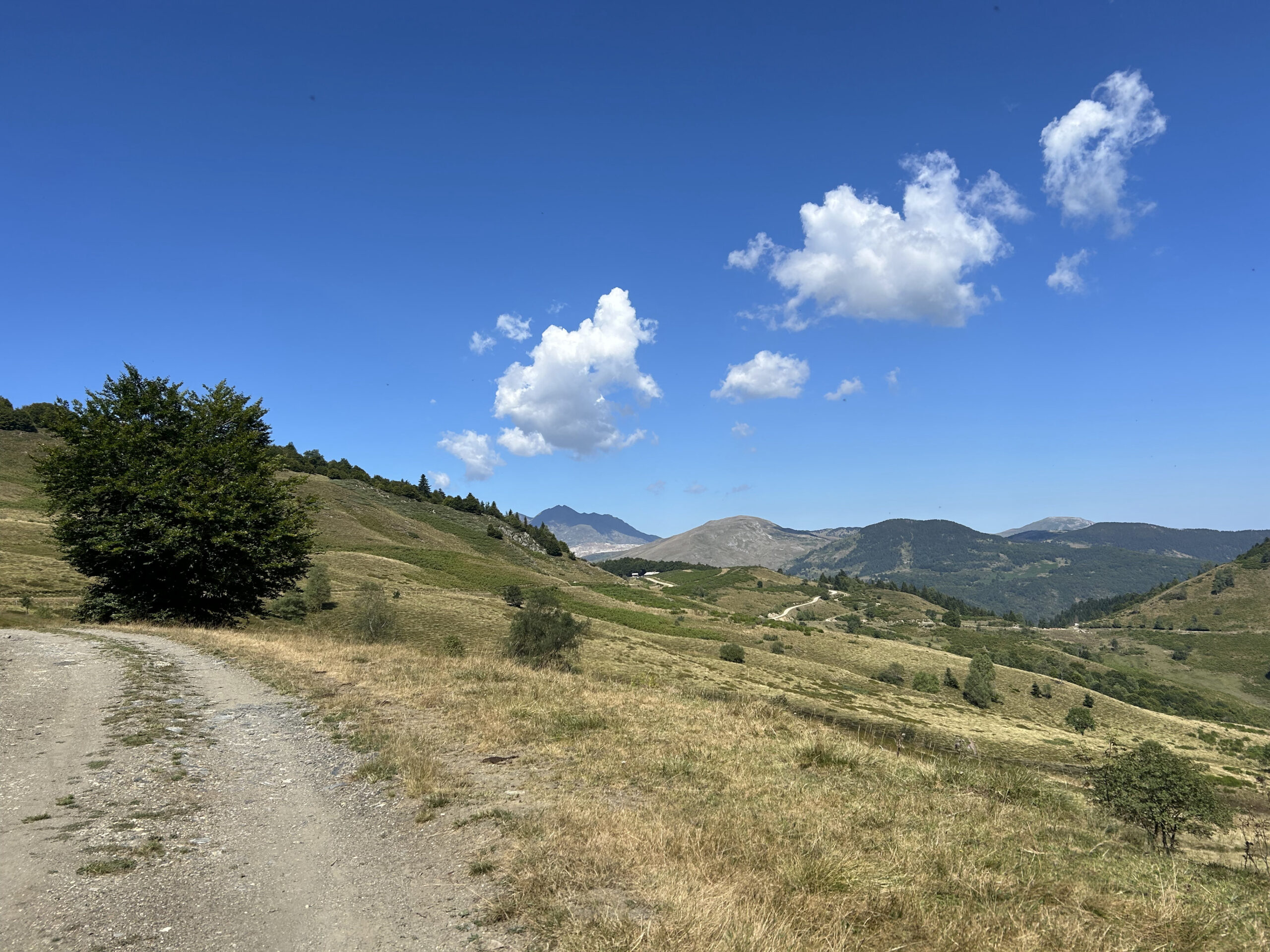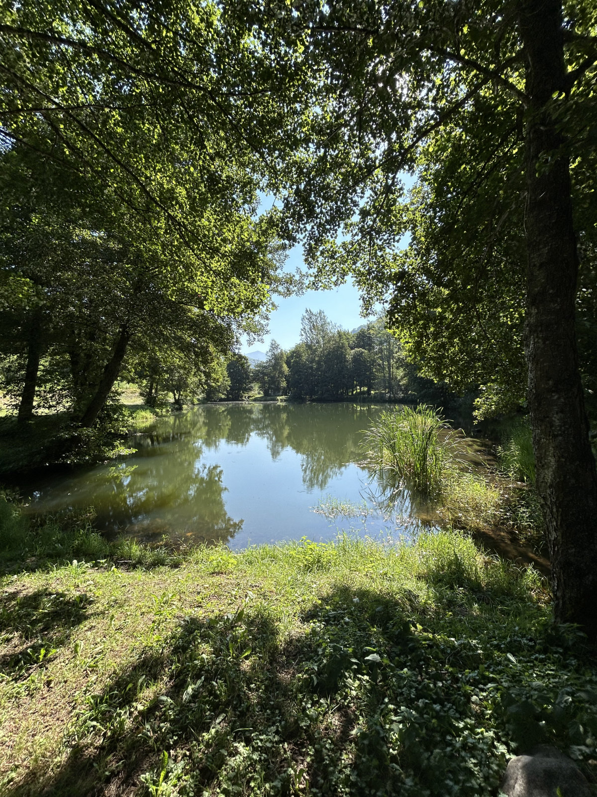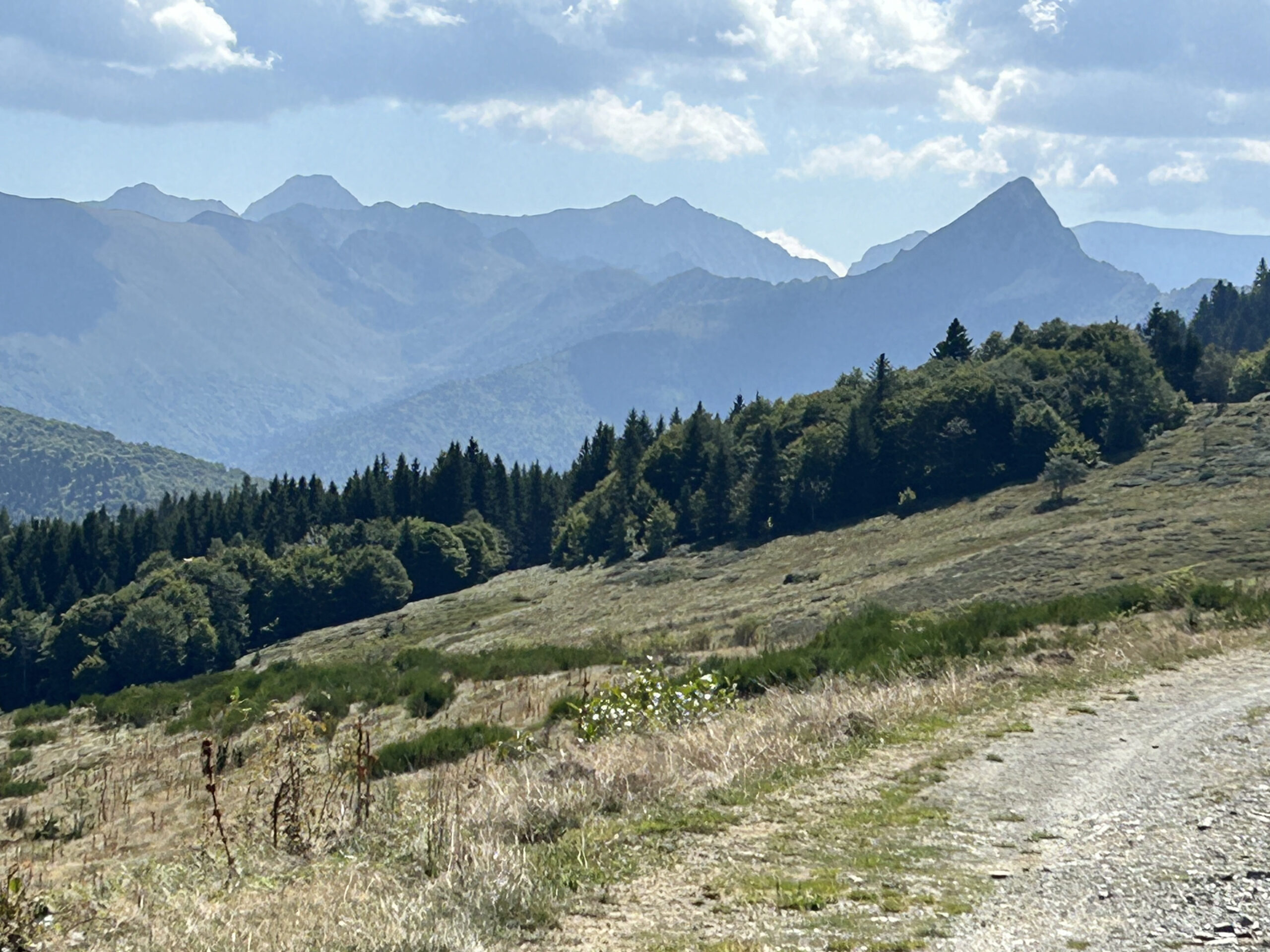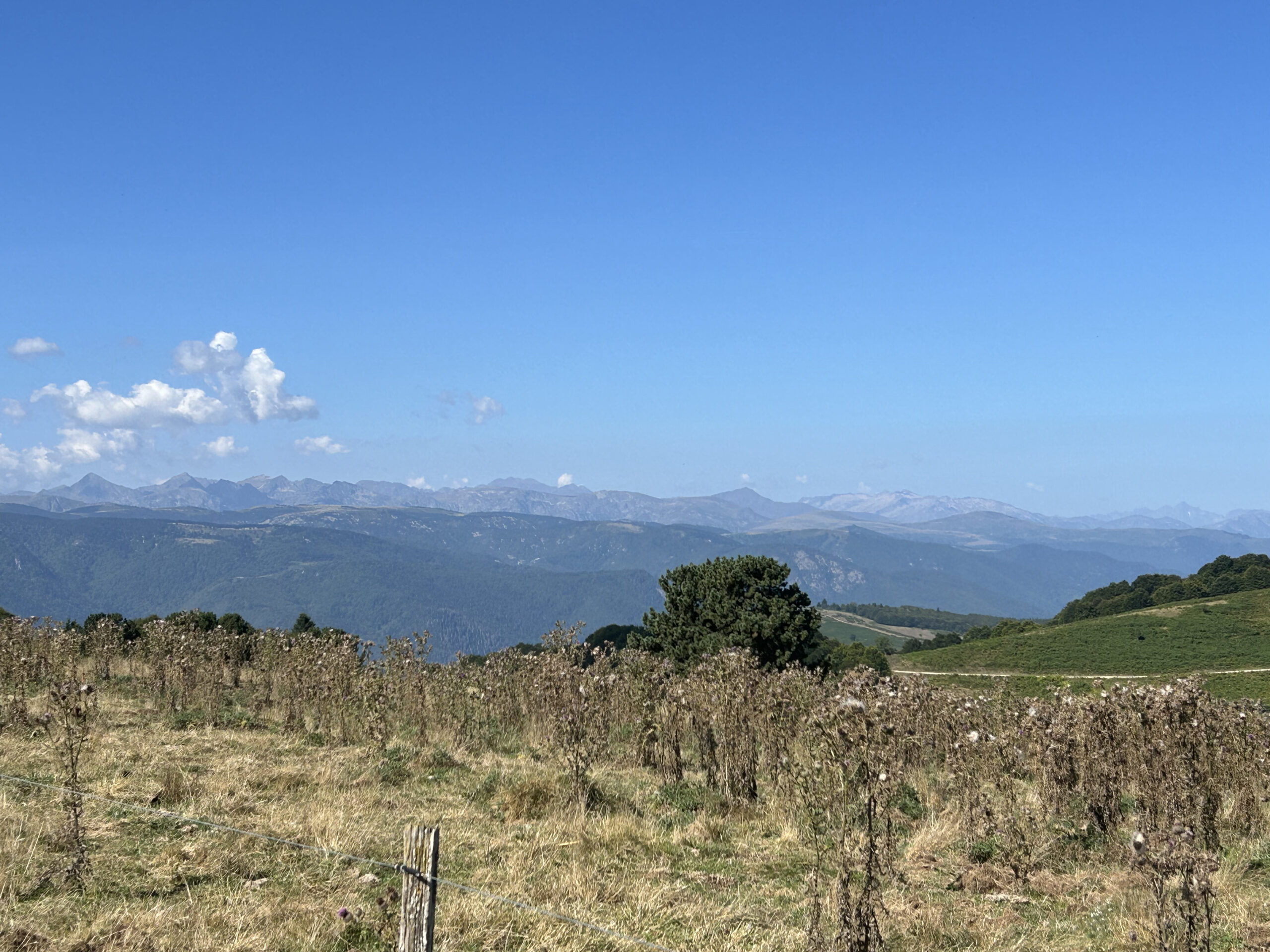 Von Ax-les-Thermes sind es 11 Kilometer die Passstrasse hoch zum Col de Chioula (1431m). Ein schöner Spaziergang führt uns am Waldrand entlang, über Felder, Wiesen und Weiden, manchmal auch durch den Wald, einmal hoch, dann wieder runter. Immer wieder haben wir wunderschöne Aussichten auf die Berge. Selbst an der prallen Sonne ist es hier oben nicht zu heiss, zurück auf dem Zeltplatz messen wir 37 Grad. Wir verziehen uns deshalb für ein Picnic zu den drei Weihern, nicht weit entfernt vom Zeltplatz und rasten im Schatten.