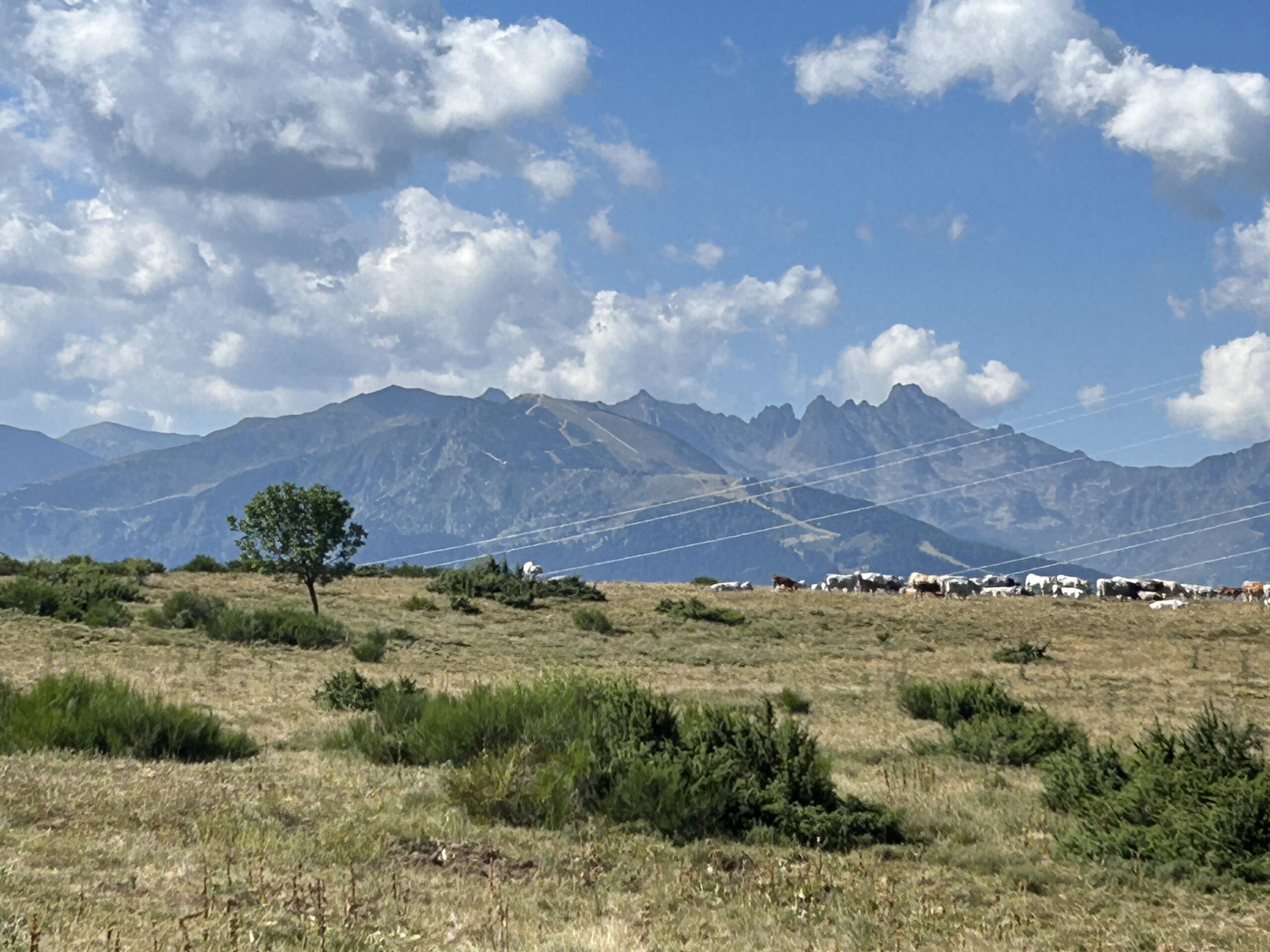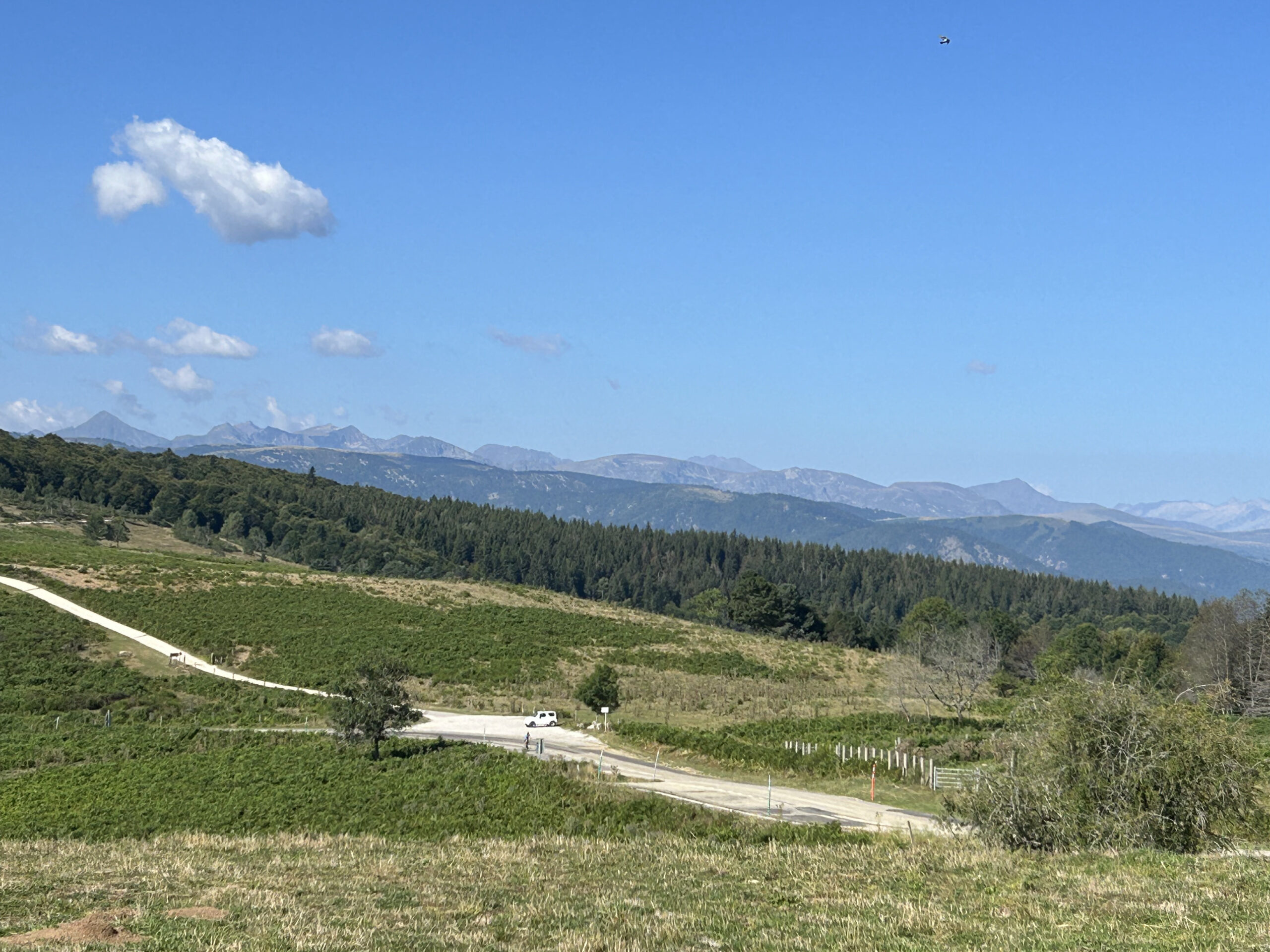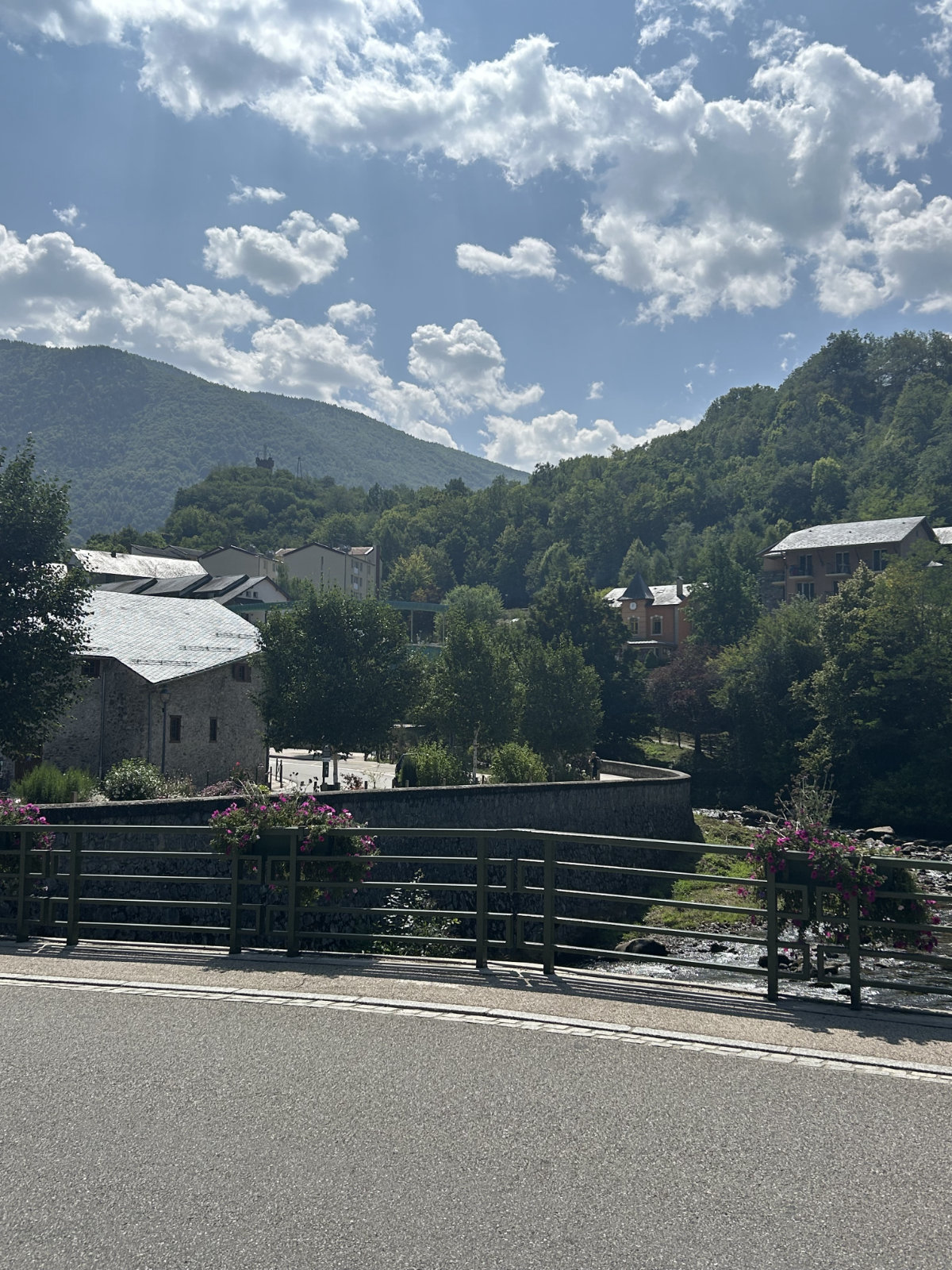 In der Nacht regnete es ein wenig und den ganzen Tag wars ziemlich bewölkt, wie es die beiden Wetterapps prognostiziert haben, die wir jeweils konsultieren. Der Regen sorgt dafür, dass sich die Pyrenäen schön grün präsentieren, wie wir es dieses Jahr erleben. Auch im Frühjahr fiel sehr viel Regen, wie bei uns zu Hause auch. Deshalb ist das Land dieses Jahr von verheerenden Waldbränden verschont geblieben, dafür fuhren die Bauern in Frankreich die schlechteste Weizenernte seit 1933 ein – es gibt eben immer zwei Seiten einer Medaille!