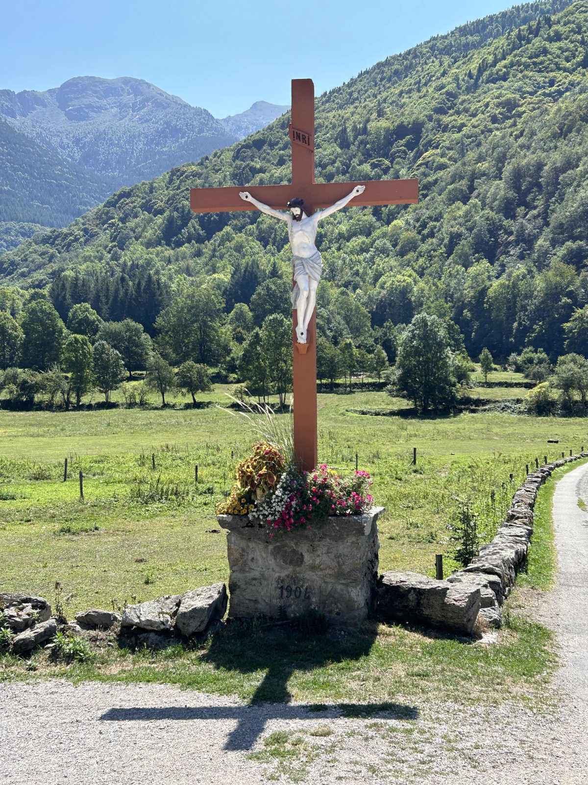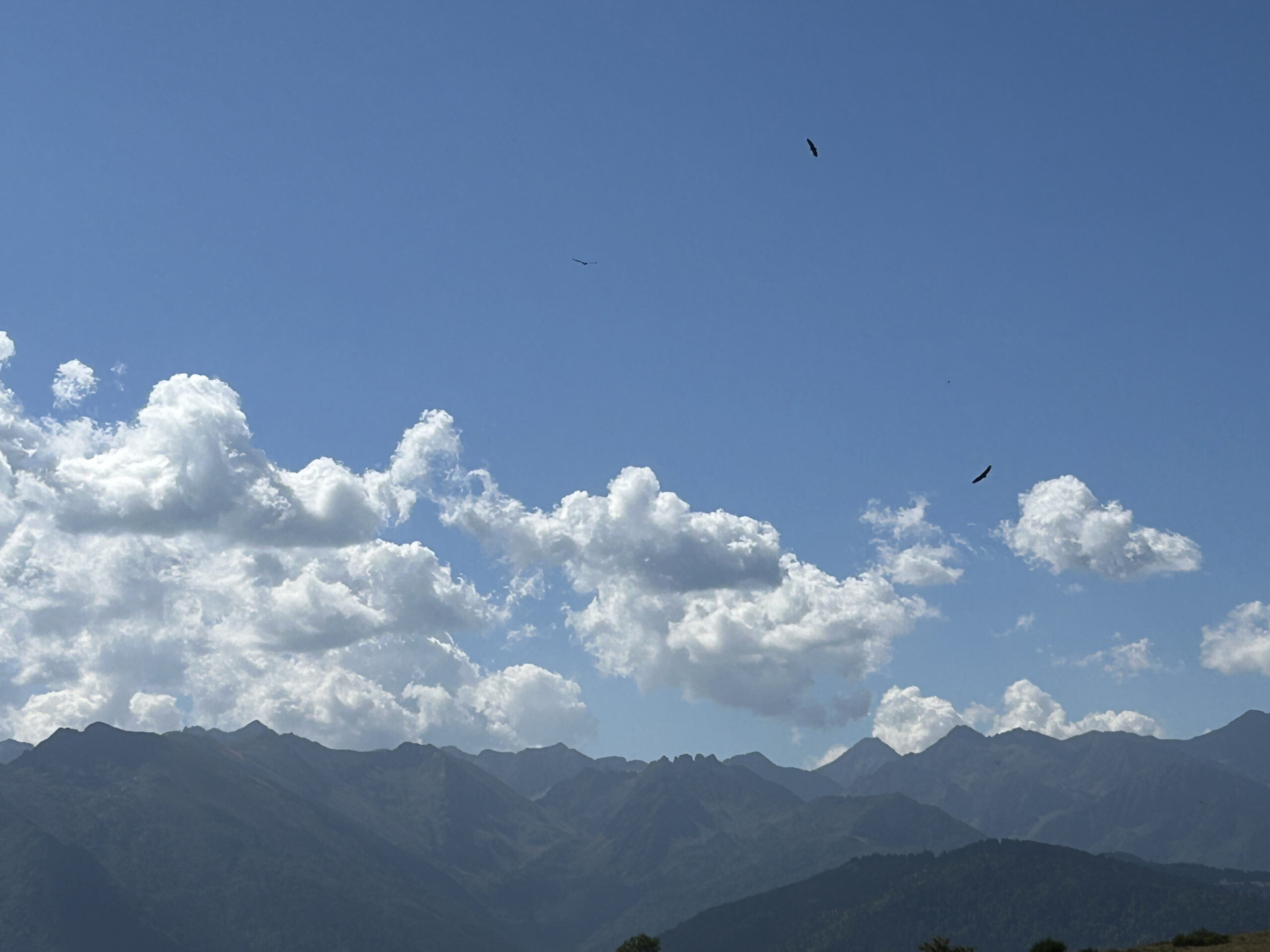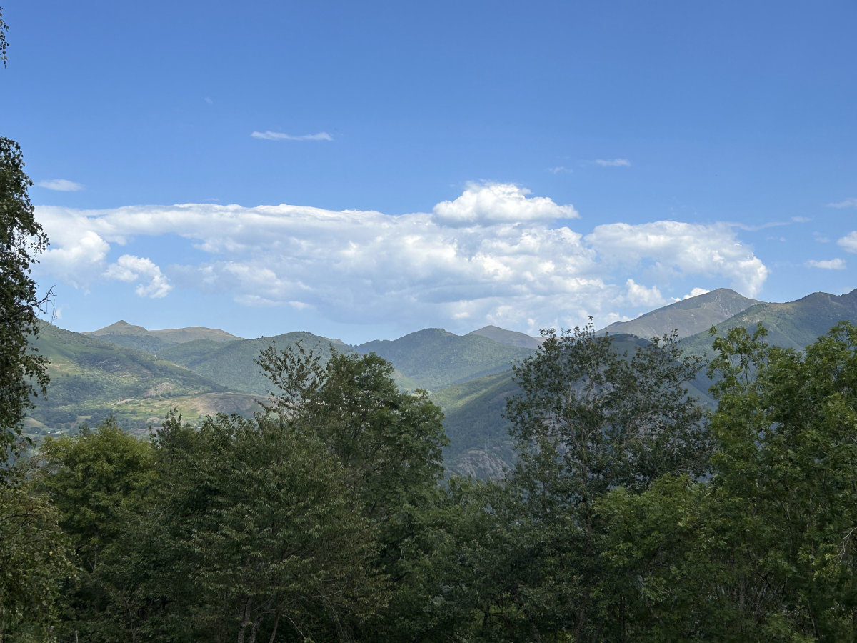 In der Nacht regnete es ein wenig und den ganzen Tag wars ziemlich bewölkt, wie es die beiden Wetterapps prognostiziert haben, die wir jeweils konsultieren. Der Regen sorgt dafür, dass sich die Pyrenäen schön grün präsentieren, wie wir es dieses Jahr erleben. Auch im Frühjahr fiel sehr viel Regen, wie bei uns zu Hause auch. Deshalb ist das Land dieses Jahr von verheerenden Waldbränden verschont geblieben, dafür fuhren die Bauern in Frankreich die schlechteste Weizenernte seit 1933 ein – es gibt eben immer zwei Seiten einer Medaille!
