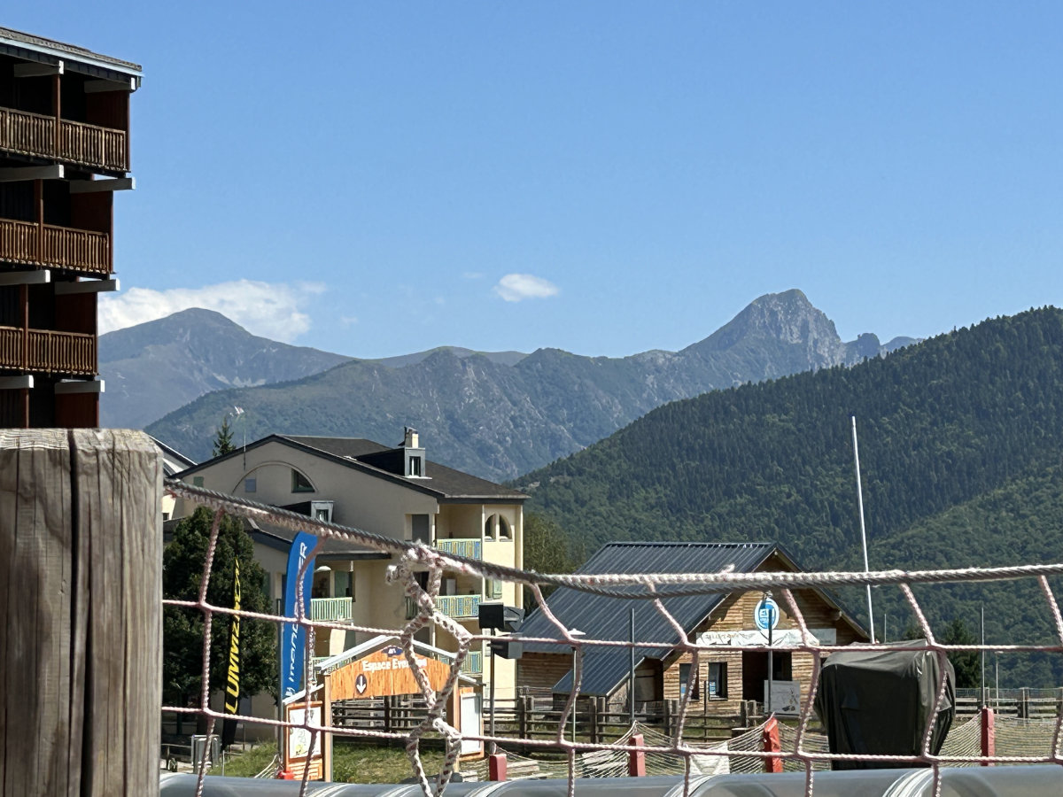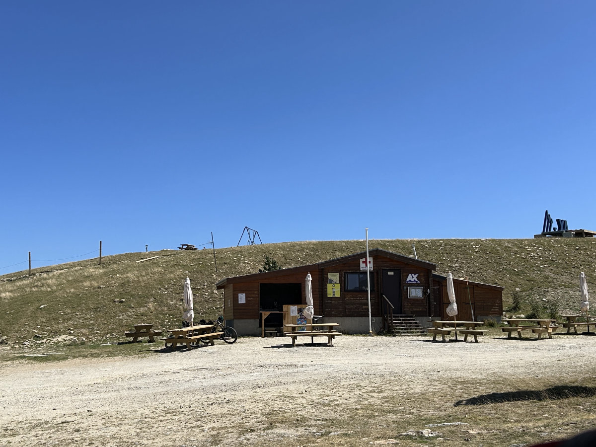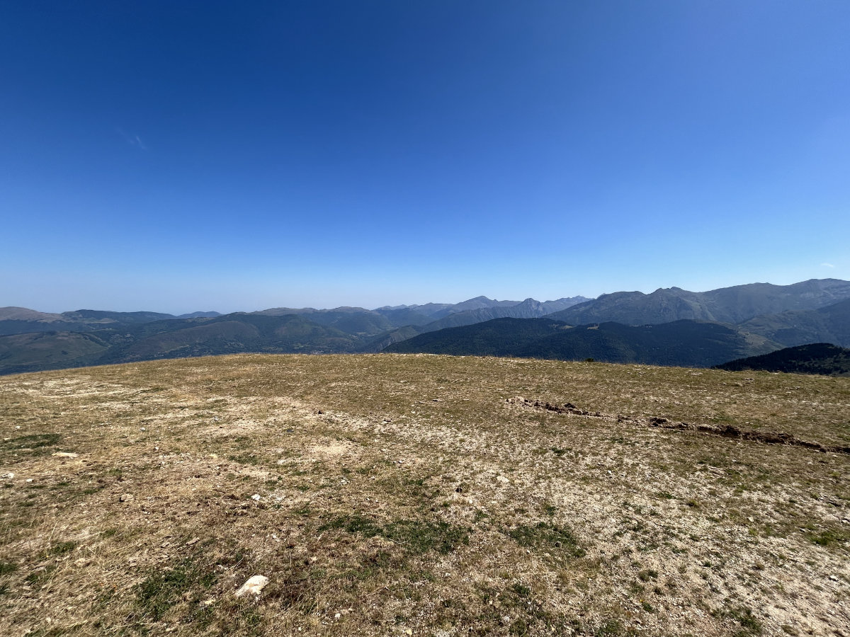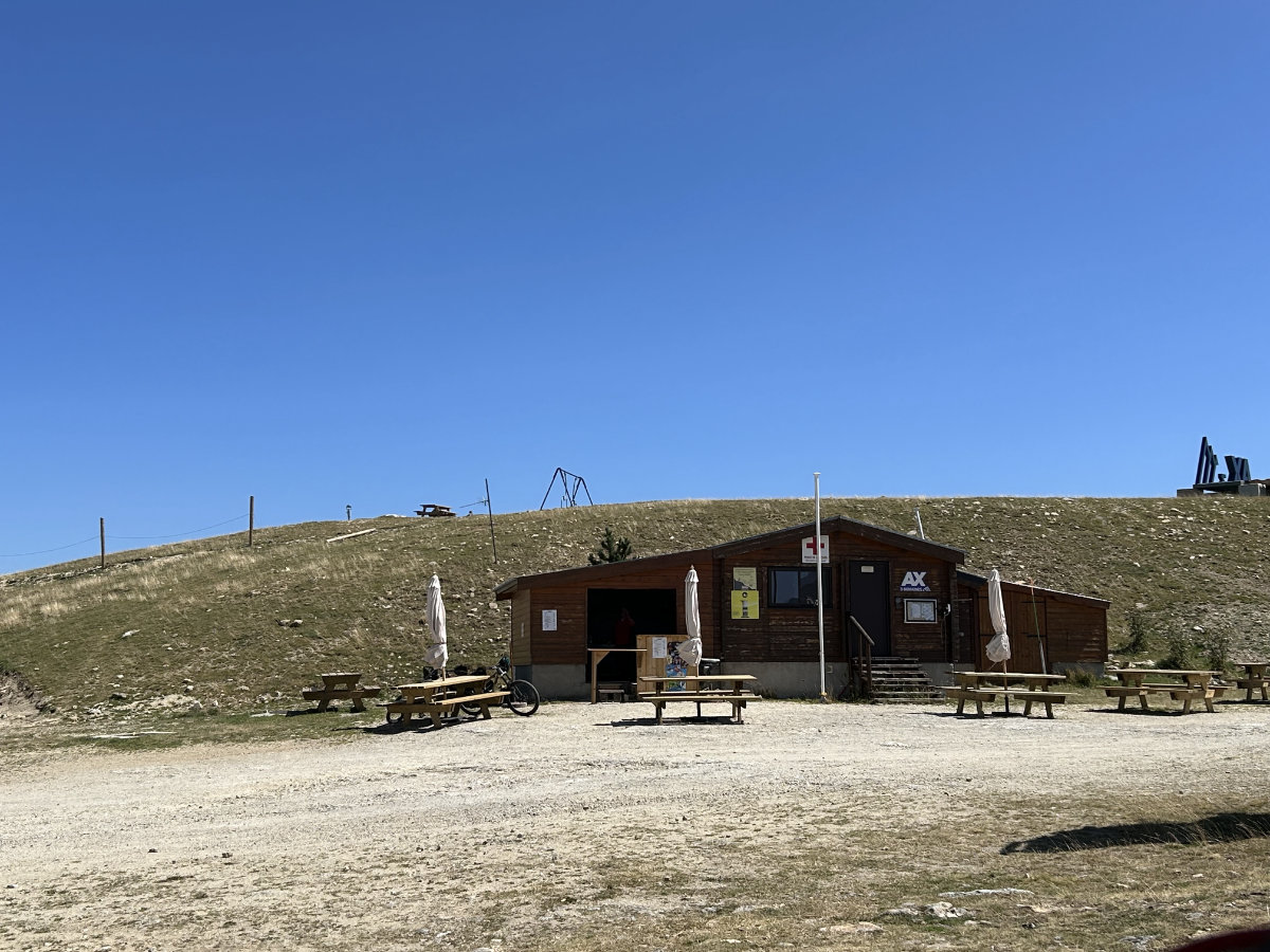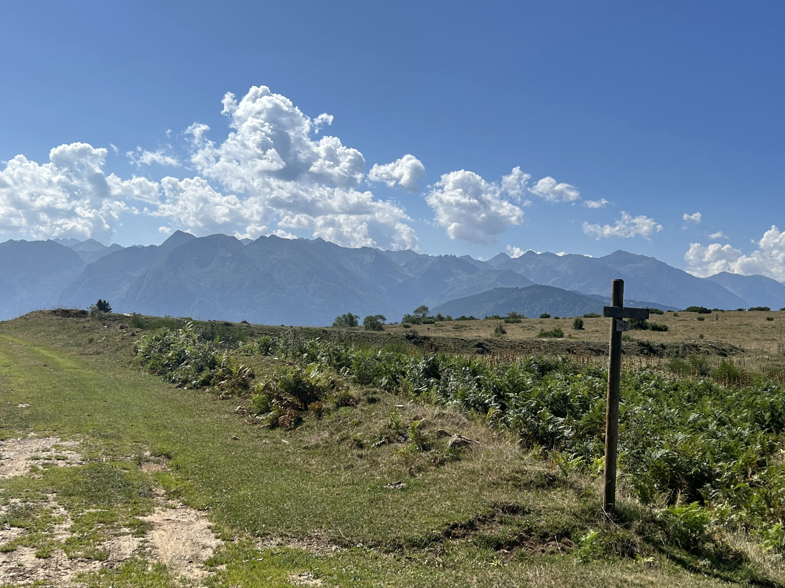 Wir benötigen knapp 40 Minuten, um auf schönen Wegen entlang der Ariège nach Ax-les-Thermes zu gelangen. Dort besteigen wir die Gondelbahn bis zum Plateau de Bonascre (1400m) und von dort mit dem Sessellift aufs Plateau de Saguet (2000m). Das Ticket für die Benutzung der Gondelbahn und des Sessellifts kostet 11 Euro pro Person. Ganz oben geniessen wir den Panoramablick auf die Berge der Pyrenäen. Mit dem im Boden einbetonierten grossen Fernglas würden wir die chinesische Mauer noch scharf zu sehen bekommen, nur die Erdkrümmung verhindert das. Die Sicht durchs Fernglas ist top, und – Sie ahnen es bereits, – genau, gratis!