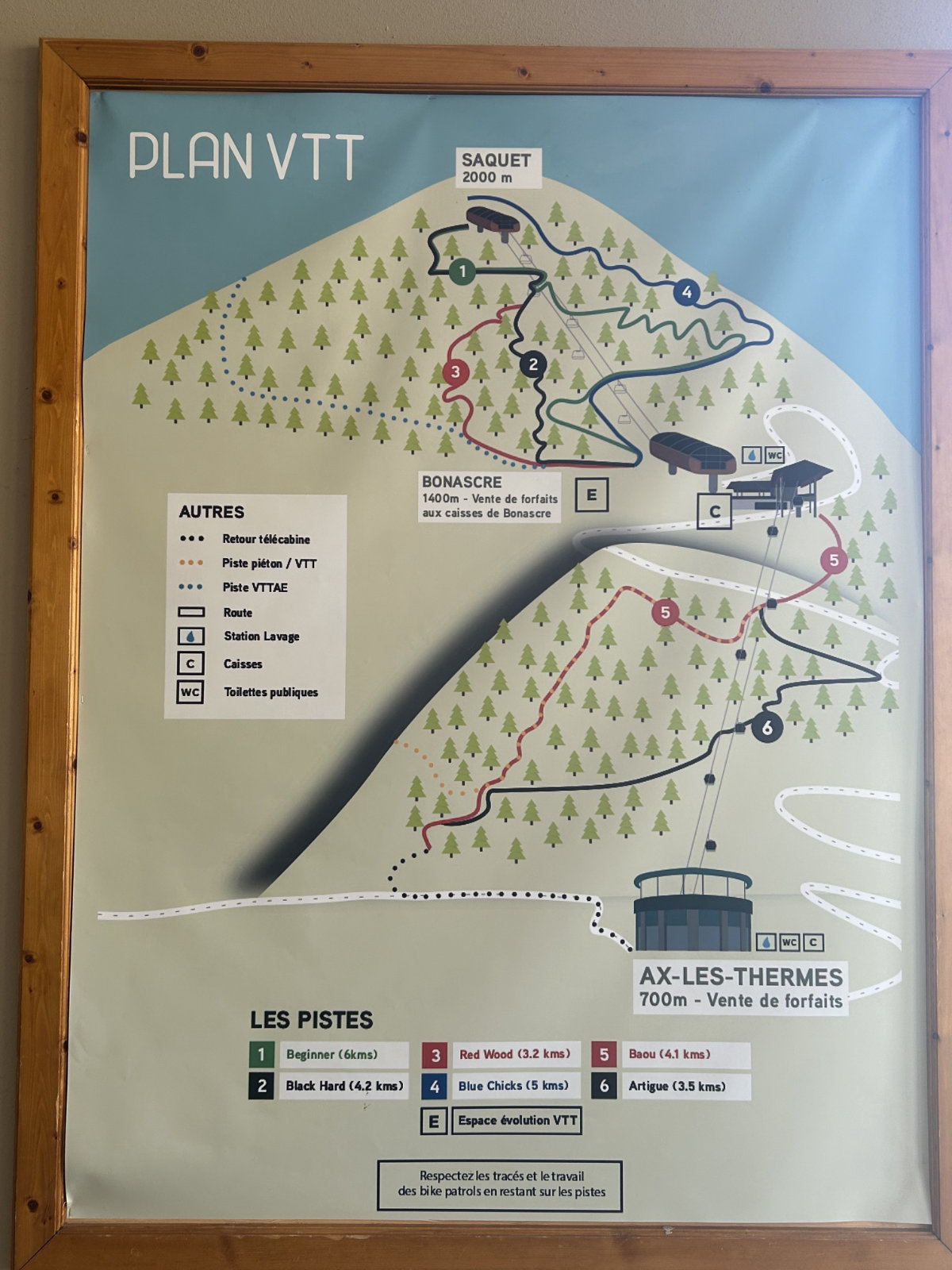 Wir fahren wieder bis zur Mittelstation um von dort nach Ax-les-Thermes abzusteigen. Ein Teil des Wegs ist eine Downhillstrecke für Mountainbikes und schwierig zu begehen. Als wir wieder auf unserem Campingplatz in Savignac-les-Ormeaux eintreffen, sind wir ziemlich geschafft! An der Rezeption liegt ein Päckchen für uns bereit, Gaskartouchen, online bestellt und innert 24 Stunden geliefert (Lieferkosten: keine 4 Euro!)