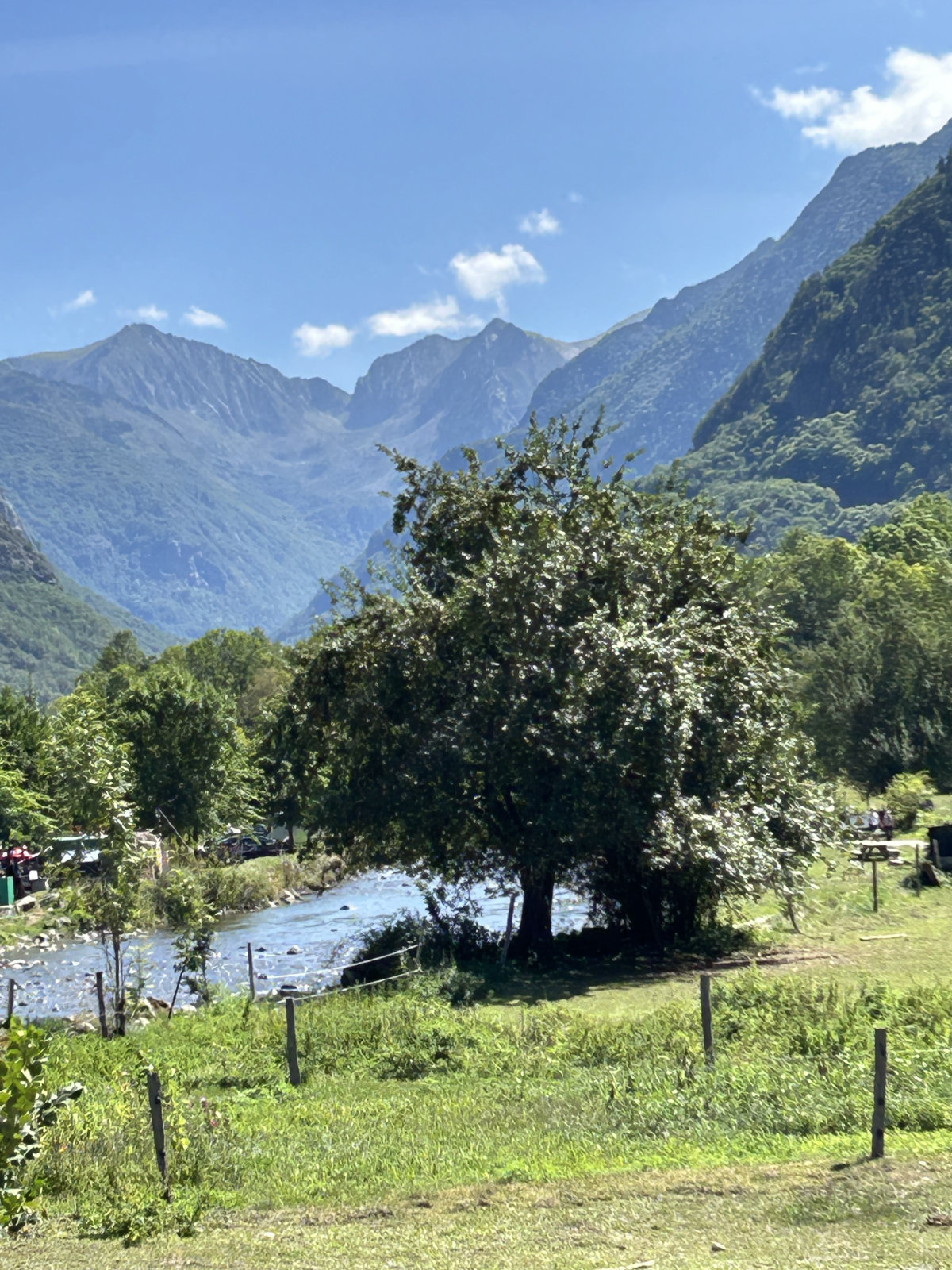 Wir befinden uns im Herzen der pyrenäischen Berge im Hochtal der Ariège, nahe bei Ax-les-Thermes. Wir können unzählige Wanderungen direkt von unserem Campingplatz unternehmen oder müssen mit dem Auto nicht mehr als 30 Minuten fahren, um an die Startpunkte diverser wunderbarer Ausflugsziele zu gelangen. Um in den Nationalpark der Ariège zu fahren, zu bekannten Spots wie der Cascade d’Ars oder nach Andorra, müssten wir mit längeren Anfahrten rechnen, darauf verzichten wir lieber.