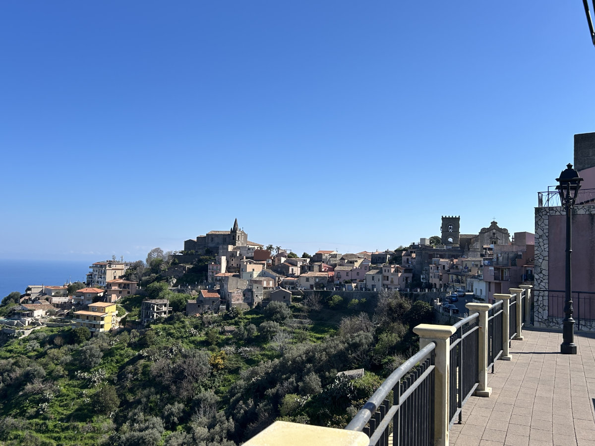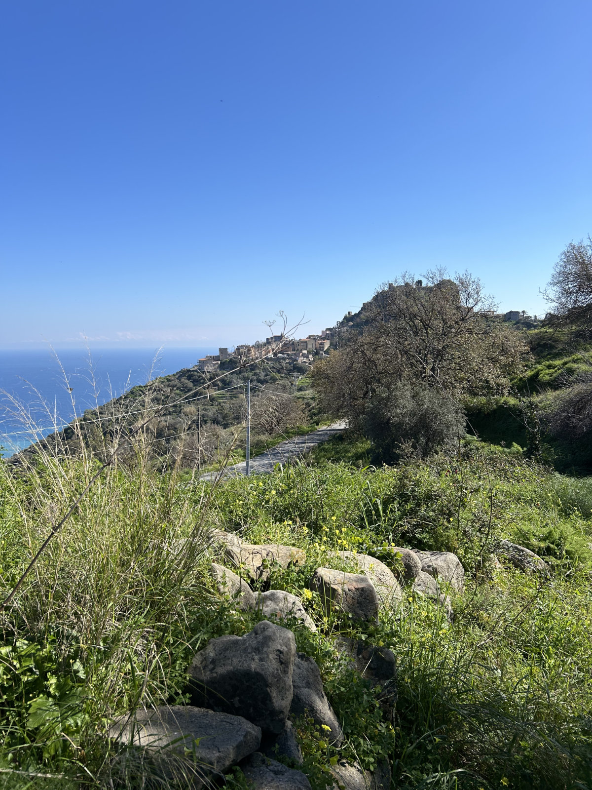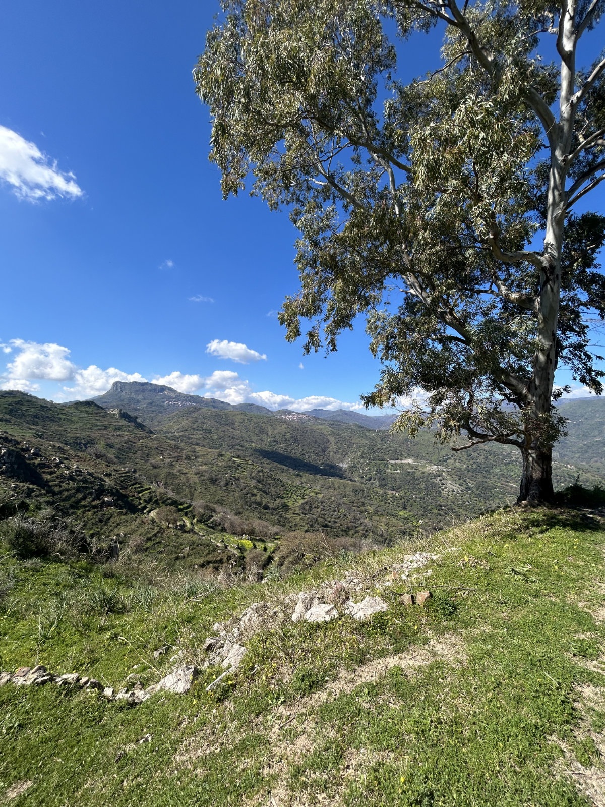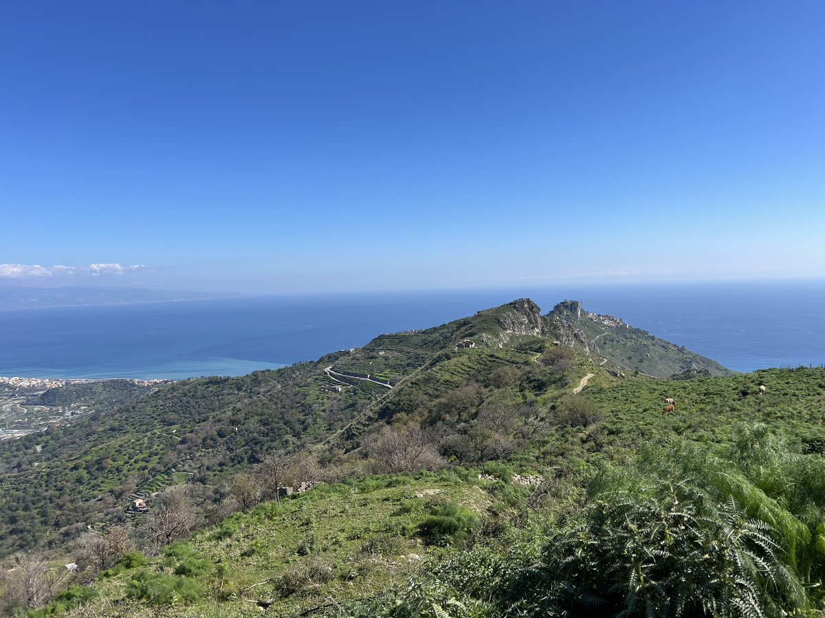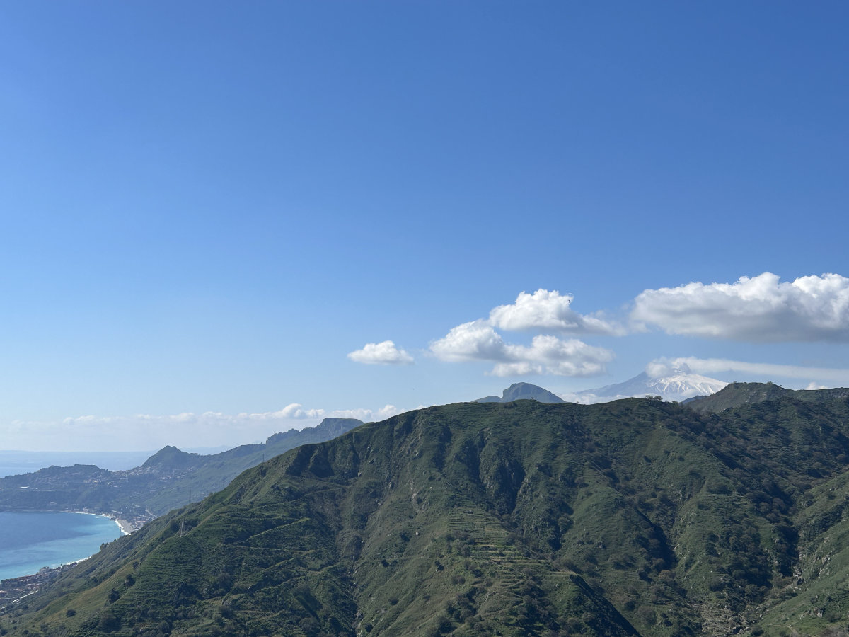 Heute war ein herrlicher Frühlingstag auf Sizilien! Die Fahrt hoch nach Forza d’Agrò dauerte nur gut 10 Minuten. Von da unternahmen wir unsere erste echte, wenn auch leichte, Wanderung auf der Insel. Die Rundtour bot alles, was unser Herz höher schlagen lässt: eine wunderschöne Berglandschaft mit Ausblicken auf die Küste unter uns und übers grosse Blau bis zum italienischen Festland sowie auf den allgegenwärtigen, alles überragenden Ätna, mit seinen weissen, schneebewehrten Flanken. Bei 12 Grad liefen wir nur im T-Shirt an der warmen Sonne, erst auf gut begehbaren Wegen und später zurück auf einem schmalen, verwucherten Pfad durch die üppige Vegetation, mit neckischen Disteln, die uns durch die Jeans stachen. Zurück im schönen Dorf belohnten wir uns mit einem Glas Rotwein und liessen die Tour Revue passieren. Der heutige Tag bot genau wofür wir in erster Linie gekommen sind, Wanderungen in grandiosen Landschaften zu unternehmen.