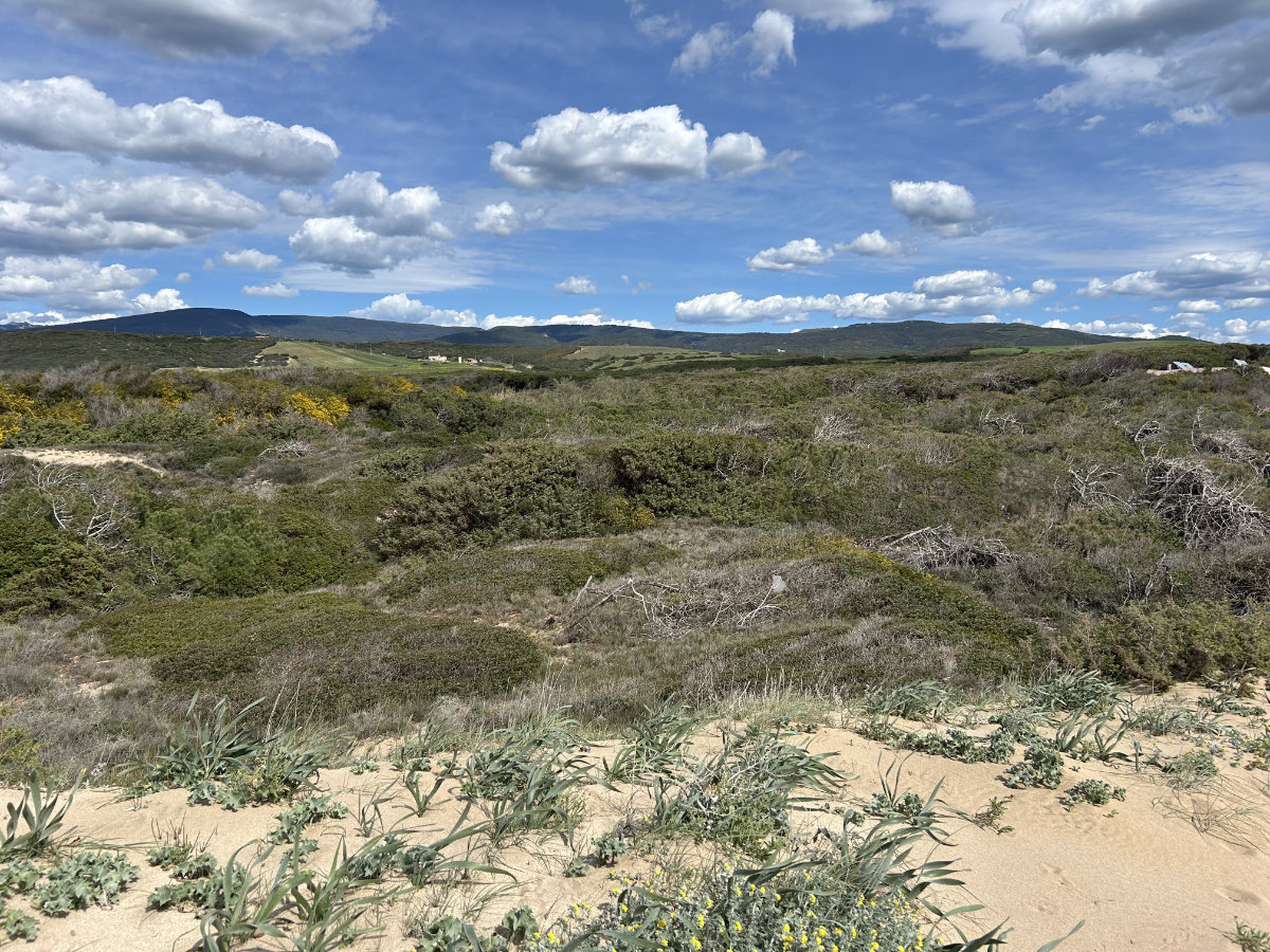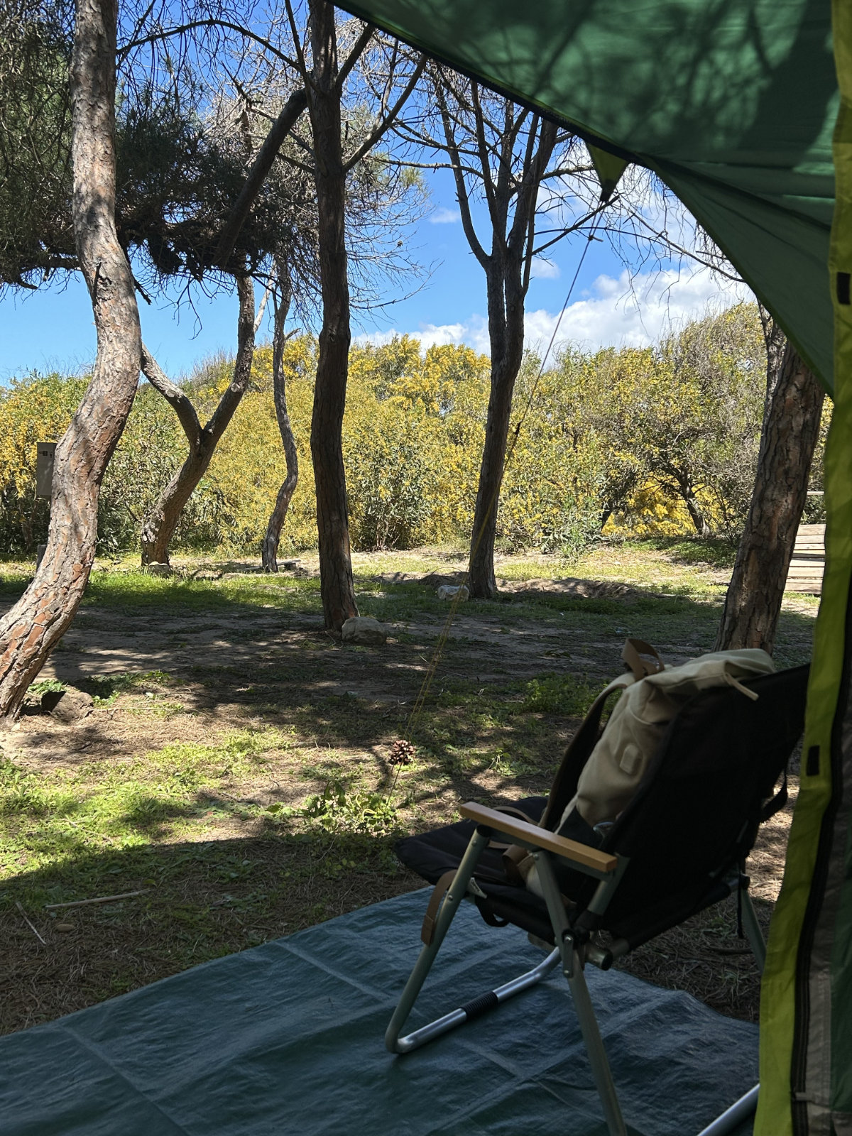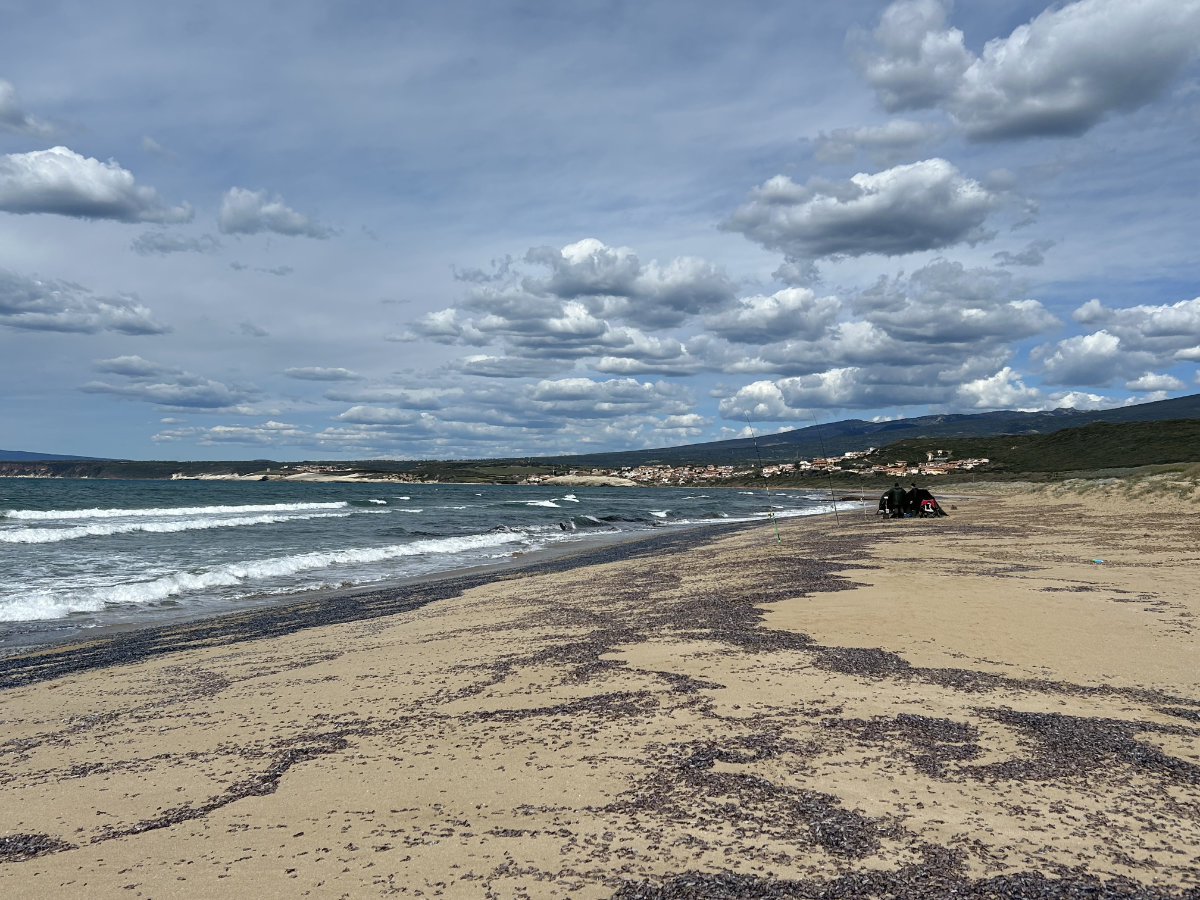 Wir verlassen Cagliari auf gut ausgebauten Strassen und nehmen die Autobahn. Nach 120 Kilometern erreichen wir den Zeltplatz Nurapolis, an der Westküste Sardiniens. Der grosse Zeltplatz liegt im Schatten eines Pinienwalds, zwei direkte Strandzugänge führen, zwischen Dünen hindurch, zum Meer. Der Minimarkt und die Bar des Zeltplatzes werden erst in ein paar Wochen den Betrieb aufnehmen und von den drei grossen Sanitärblöcken sind zwei noch geschlossen. Wir können uns einen Platz aussuchen, auf dem Areal für Zelte ist noch niemand. Allerdings sind doch schon einige Gäste mit ihren Bussen, Womos und Wohnwagen hier, das wundert uns nicht, dieser Zeltplatz ist einer der wenigen, die bereits geöffnet haben, die meisten Campingplätze öffnen ihre Pforten erst ab Mitte April.