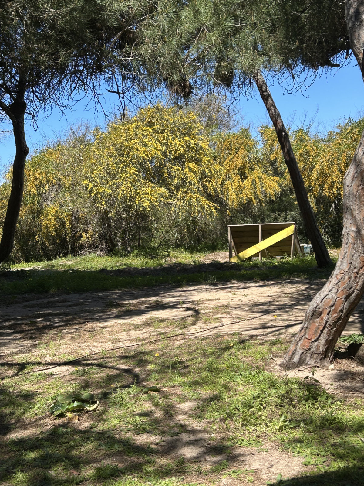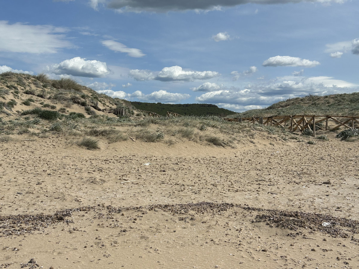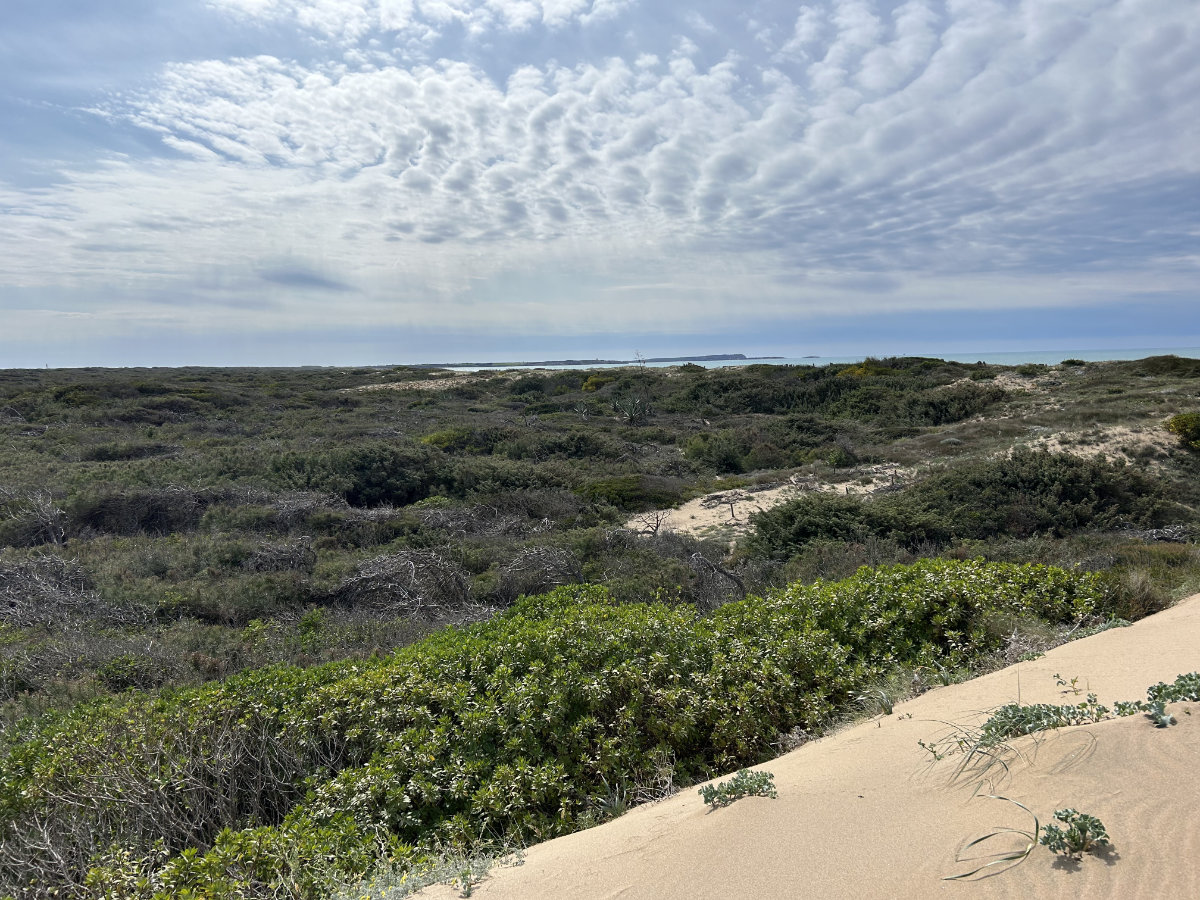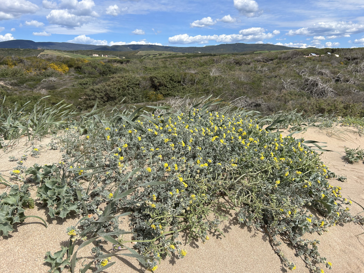 Wir verlassen Cagliari auf gut ausgebauten Strassen und nehmen die Autobahn. Nach 120 Kilometern erreichen wir den Zeltplatz Nurapolis, an der Westküste Sardiniens. Der grosse Zeltplatz liegt im Schatten eines Pinienwalds, zwei direkte Strandzugänge führen, zwischen Dünen hindurch, zum Meer. Der Minimarkt und die Bar des Zeltplatzes werden erst in ein paar Wochen den Betrieb aufnehmen und von den drei grossen Sanitärblöcken sind zwei noch geschlossen. Wir können uns einen Platz aussuchen, auf dem Areal für Zelte ist noch niemand. Allerdings sind doch schon einige Gäste mit ihren Bussen, Womos und Wohnwagen hier, das wundert uns nicht, dieser Zeltplatz ist einer der wenigen, die bereits geöffnet haben, die meisten Campingplätze öffnen ihre Pforten erst ab Mitte April.