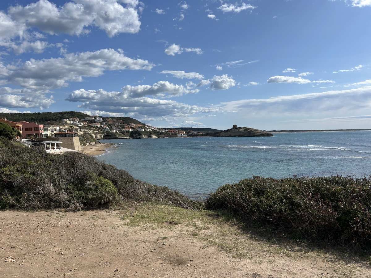 Wir fahren ins nächstgelegene Dorf, rund 5 Kilometer entfernt, um Lebensmittel einzukaufen. S’Archittu, so heisst das Dorf, bietet herrliche Ausblicke auf weit ins Meer ragende Felszungen aus Kalk, die hier kleine Buchten formen. Wir folgen dem gepflasterten Spazierweg im Dorf, gelangen dann auf Trampelpfaden zu einem schönen Aussichtspunkt mit Sicht auf einen Felsbogen im Meer und erblicken den Pfad und die verwitterte Oberfläche von Kalkfelsen, – da beginnt unsere Wanderung, die wir morgen begehen wollen.