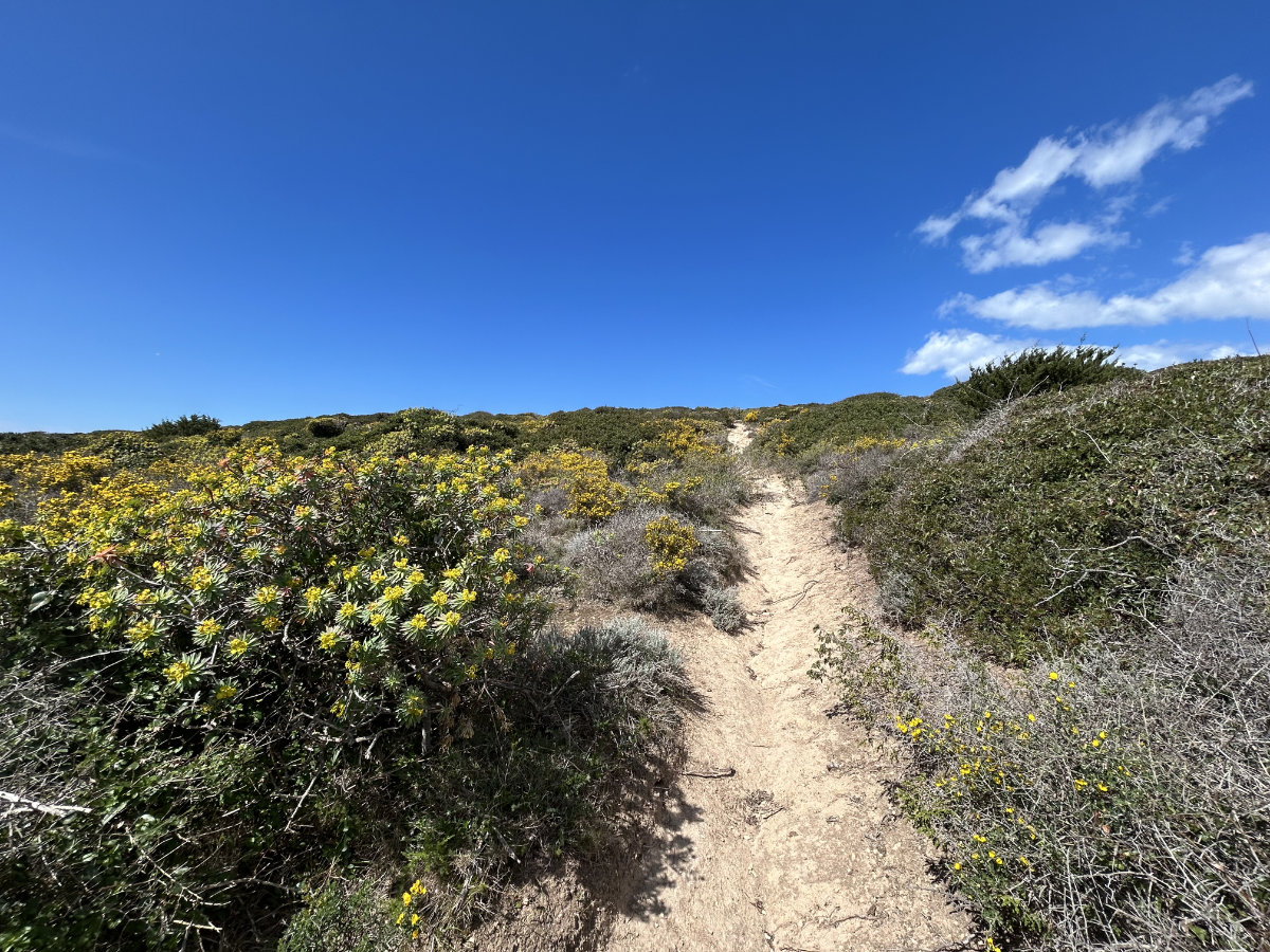 Wir wähnen uns im Vorhof des Paradieses und wandeln durch den Garten Eden, ohne Gefahr zu laufen, von den verbotenen Früchten zu kosten, Apfelbäume gibts hier keine. Die schmalen Pfade durch das Gestrüpp und über Kalkfelsen durch die Macchia, zwischen S’Archittu und Santa Catterina di Pittinuri, bieten herrliche Aussichten auf die Küste, das weite, tiefblaue Meer und in den Buchten das klare, türkisfarbene Wasser.