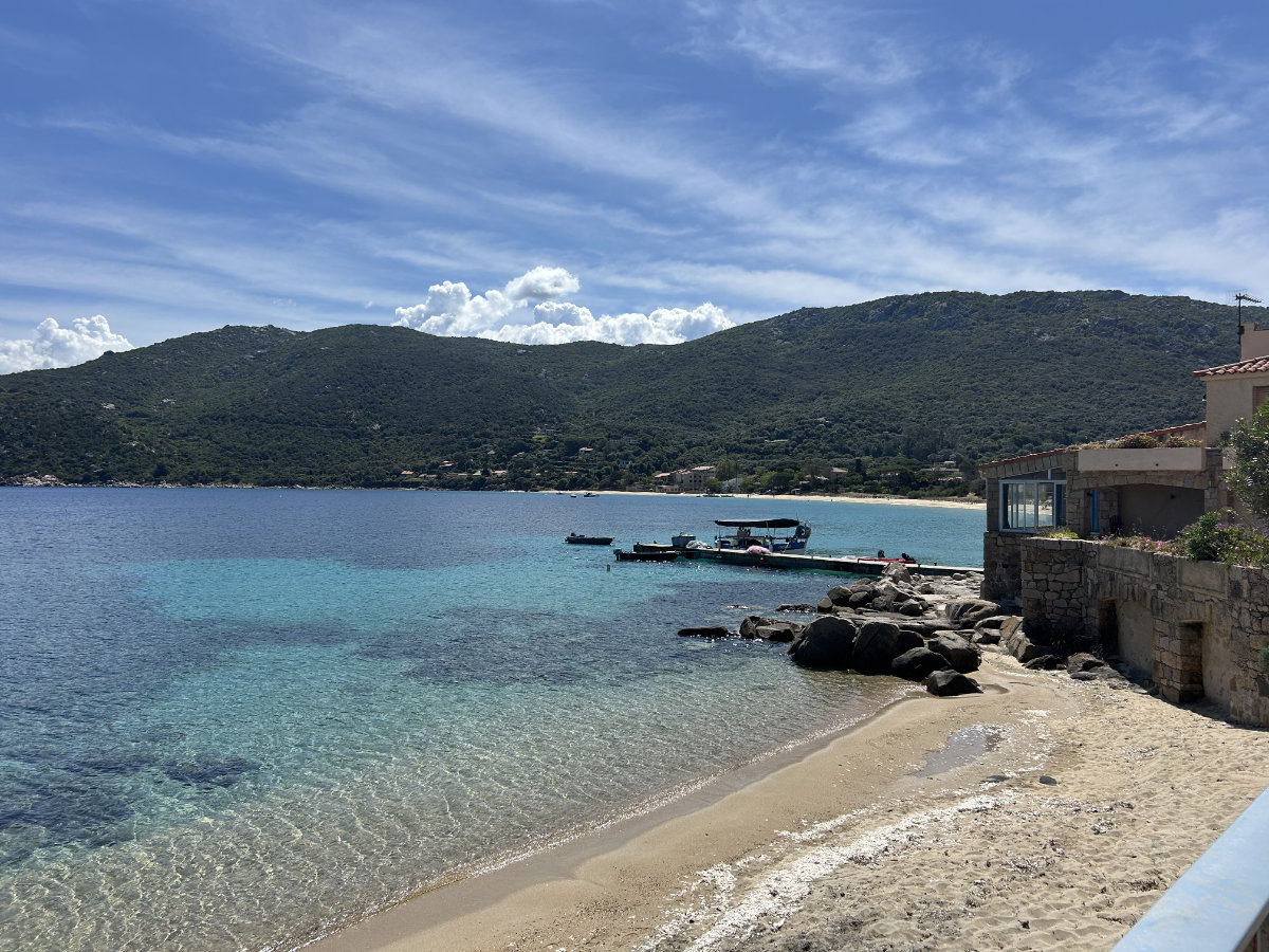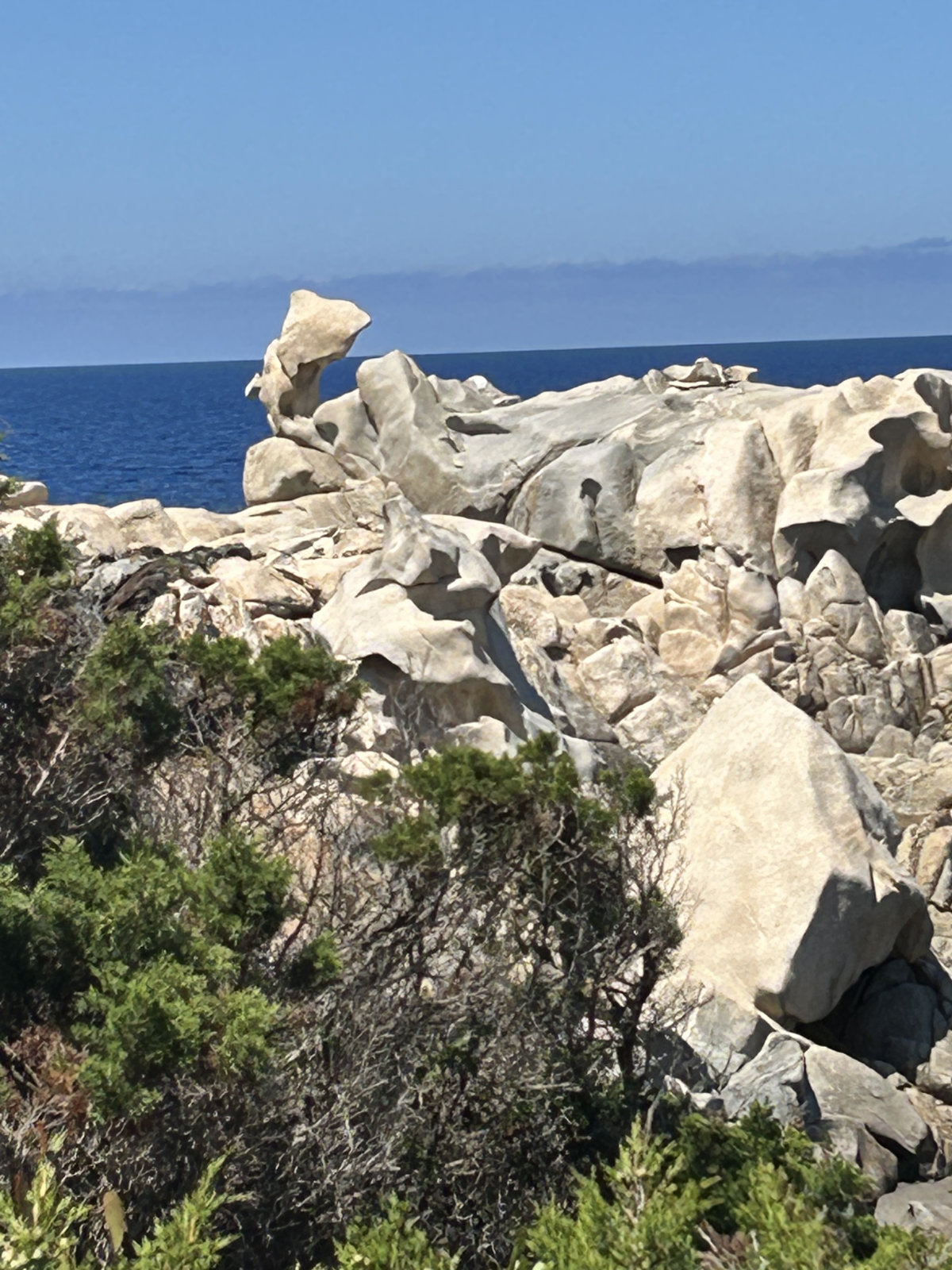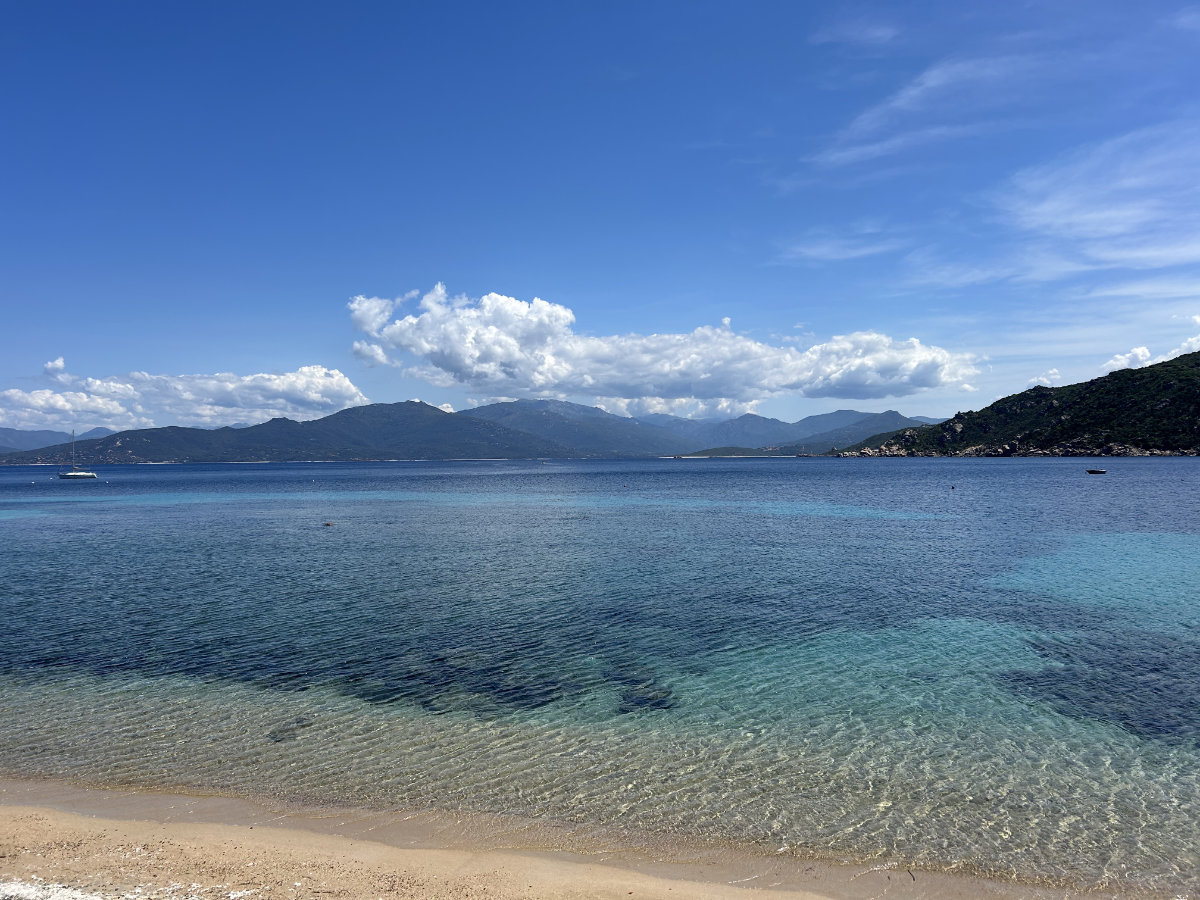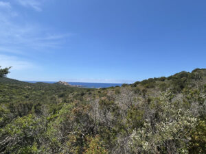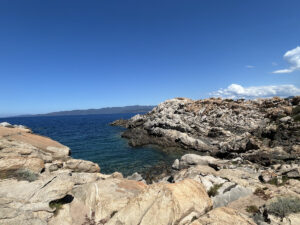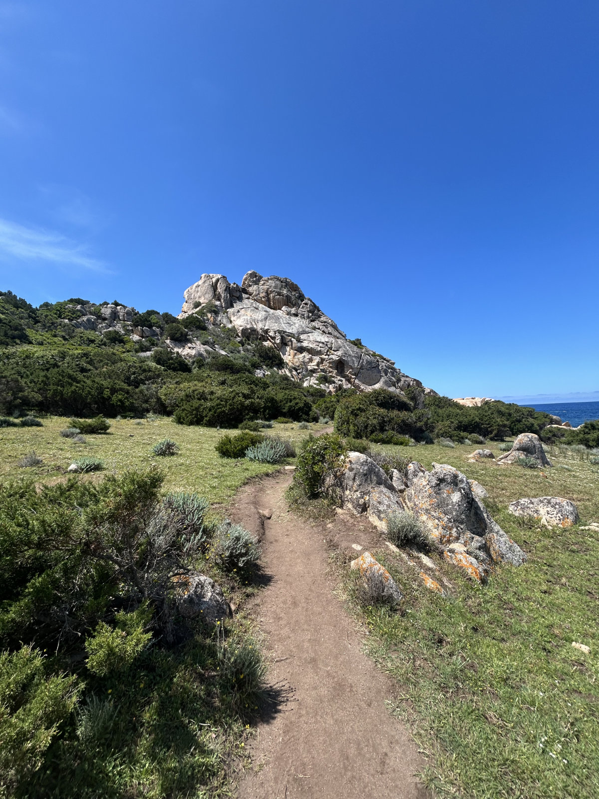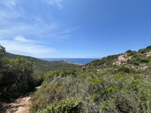 Sagenhaft schöne Wanderung von Campomoro vorbei an einem der besterhaltenen Genuesertürmen (Tour de Campomoro) auf Korsika und mit Blick auf den wunderbaren Küstenverlauf. Wir sind hier nicht so stark zwischen steilen Felsen eingekesselt wie in Porto, auf der weiten Ebene vom Strand bis zu den sanften Hügeln, breitet sich die Macchia aus. Wir gehen über blühende Wiesen, vorbei an sonderbaren Kalksteinformationen am Strand und solchen, die aus dem Meer ragen. Der gut begehbare Pfad führt uns sanft rauf und runter. Wir drehen ab ins Landesinnere und erklimmen einen Hang, die Macchia reicht uns von der Hüfte bis über den Kopf, es gibt schattige Abschitte und sonnige, mit herrlichen Aussichten hinunter auf das grosse Blau, das sich heute in seiner schönsten Farbe präsentiert. Wir folgen dem Höhenrücken zurück nach Campomoro. Ich wünschte unterwegs, eine Stunde würde so lange dauern wie ein Tag. Anstrengend an dieser Tour ist nicht die Wanderung an und für sich, sondern der Versuch, die Schönheit dieses Fleckchens Erde mit allen Sinnen zu verinnerlichen und für immer einzuprägen! Und das Tüpfelchen auf dem i? Meine bezaubernde Lebensgefährtin, die mich auf allen Wegen begleitet. Ich bin im Paradies.
