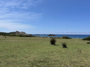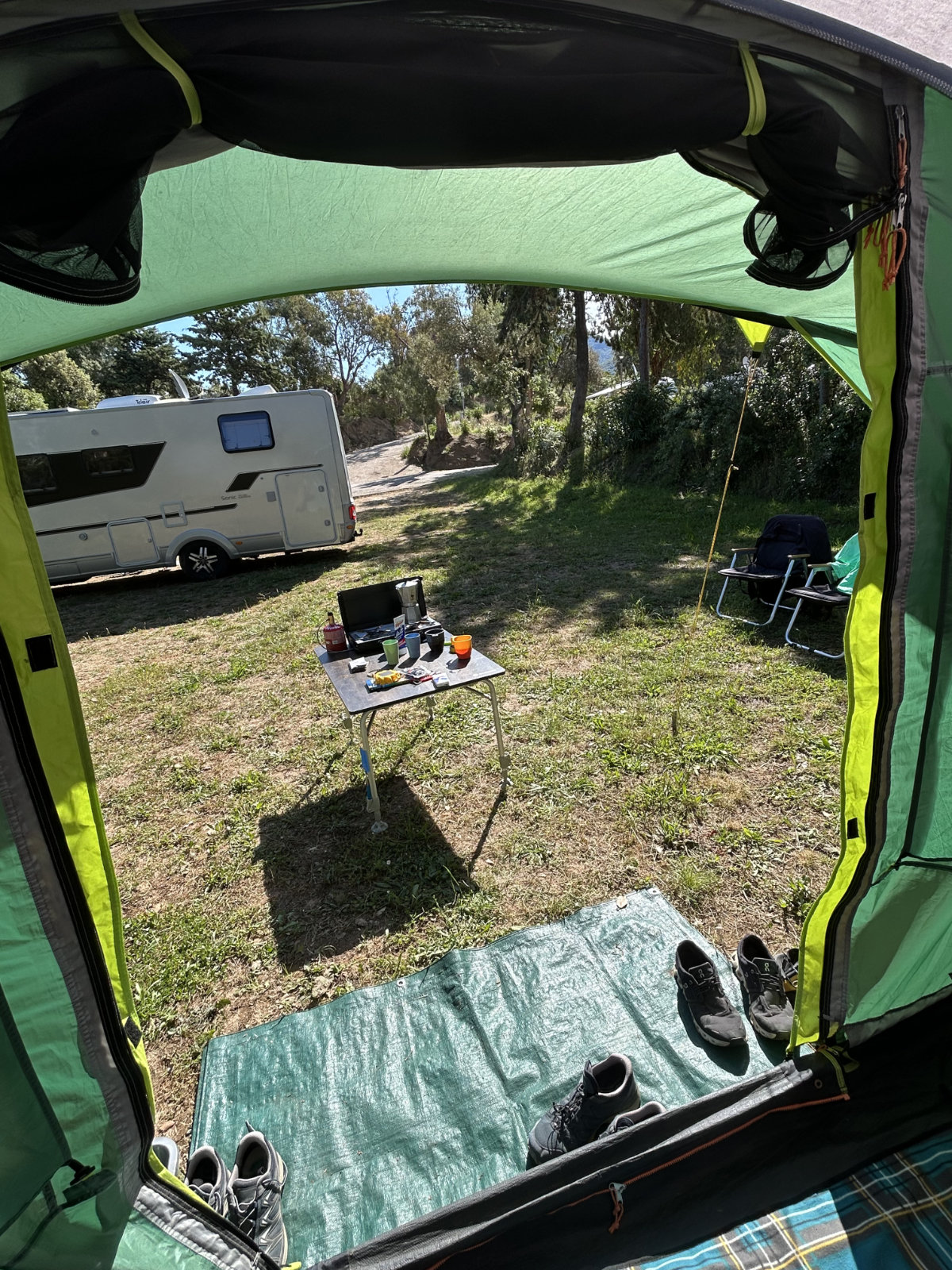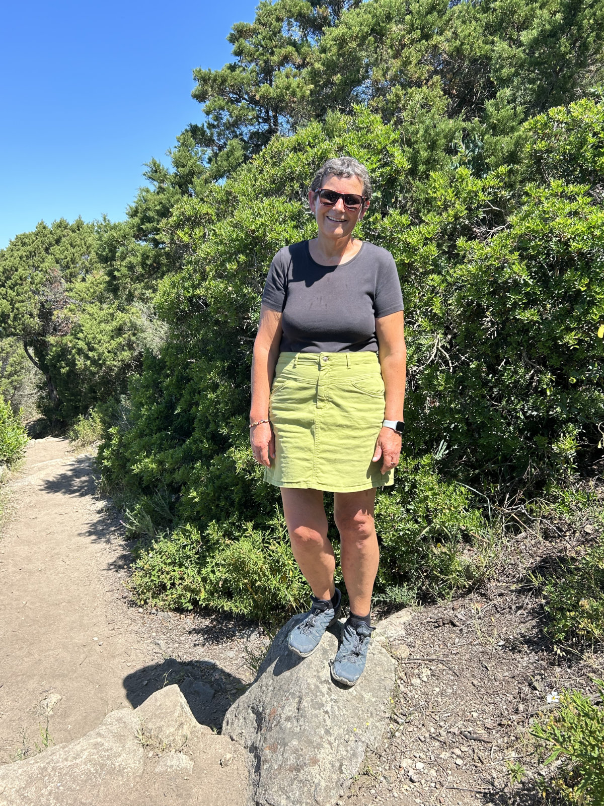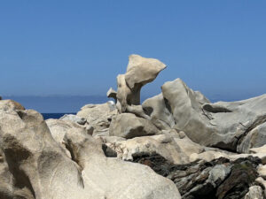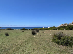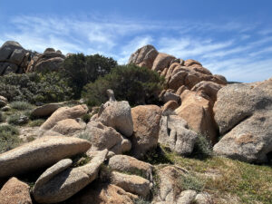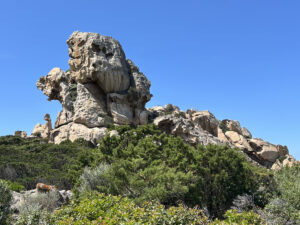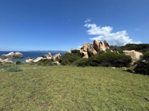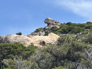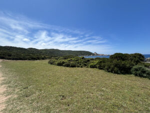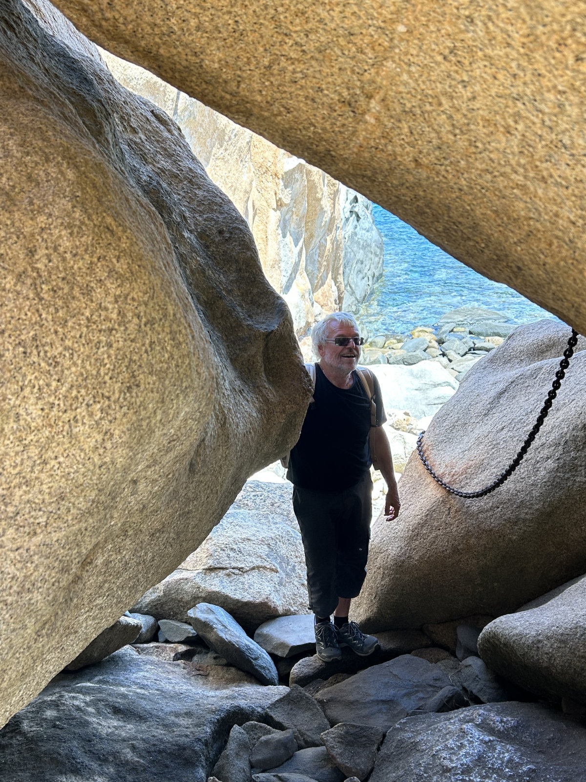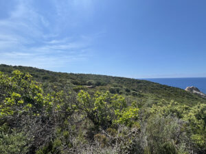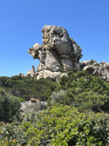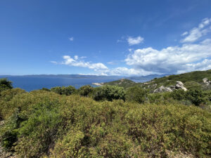 Sagenhaft schöne Wanderung von Campomoro vorbei an einem der besterhaltenen Genuesertürmen (Tour de Campomoro) auf Korsika und mit Blick auf den wunderbaren Küstenverlauf. Wir sind hier nicht so stark zwischen steilen Felsen eingekesselt wie in Porto, auf der weiten Ebene vom Strand bis zu den sanften Hügeln, breitet sich die Macchia aus. Wir gehen über blühende Wiesen, vorbei an sonderbaren Kalksteinformationen am Strand und solchen, die aus dem Meer ragen. Der gut begehbare Pfad führt uns sanft rauf und runter. Wir drehen ab ins Landesinnere und erklimmen einen Hang, die Macchia reicht uns von der Hüfte bis über den Kopf, es gibt schattige Abschitte und sonnige, mit herrlichen Aussichten hinunter auf das grosse Blau, das sich heute in seiner schönsten Farbe präsentiert. Wir folgen dem Höhenrücken zurück nach Campomoro. Ich wünschte unterwegs, eine Stunde würde so lange dauern wie ein Tag. Anstrengend an dieser Tour ist nicht die Wanderung an und für sich, sondern der Versuch, die Schönheit dieses Fleckchens Erde mit allen Sinnen zu verinnerlichen und für immer einzuprägen! Und das Tüpfelchen auf dem i? Meine bezaubernde Lebensgefährtin, die mich auf allen Wegen begleitet. Ich bin im Paradies.