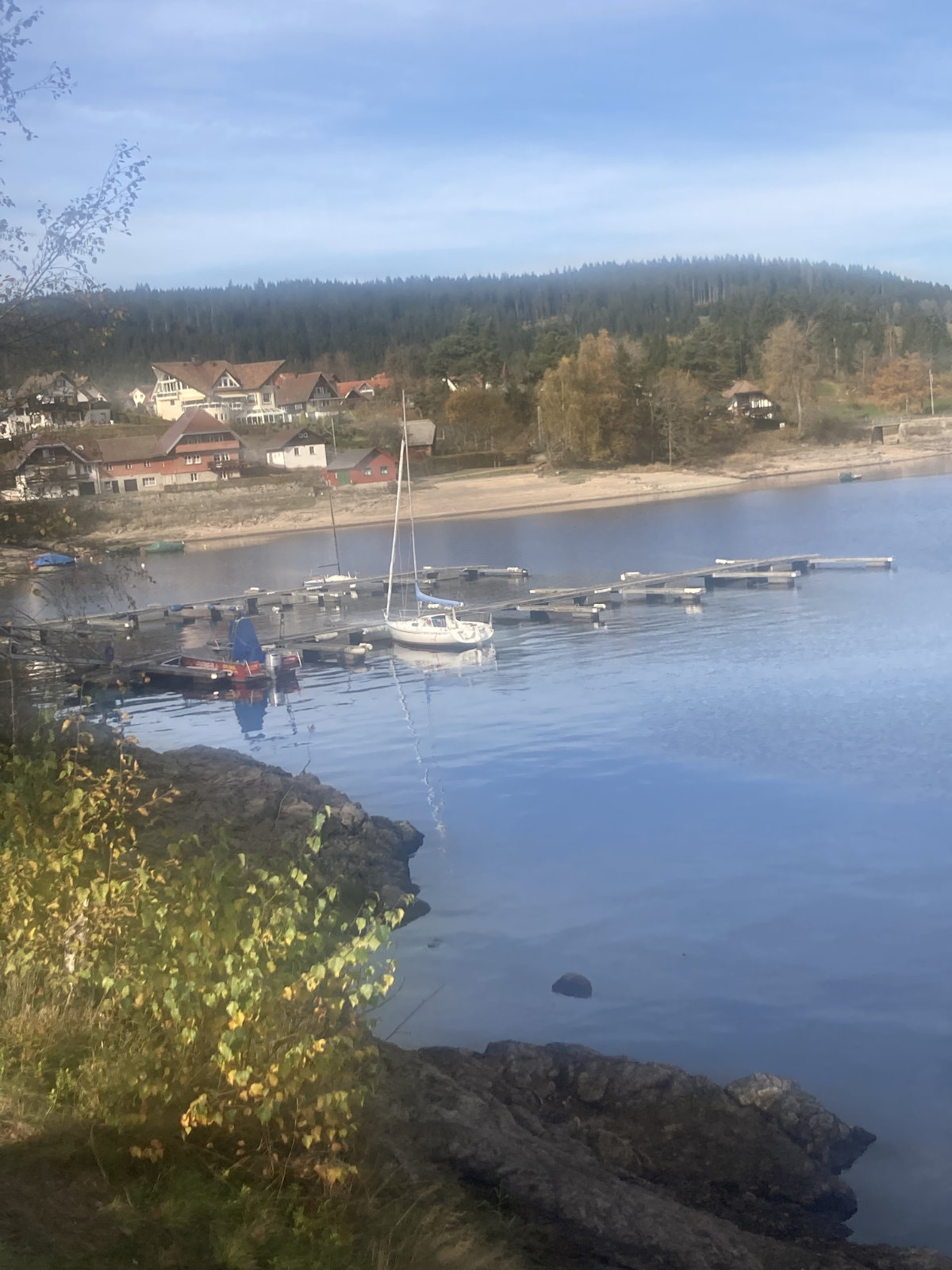 Um dem Nebel zu entgehen und endlich ein Stück vom Wetterhoch abzuschneiden, sind wir tags darauf an den Schluchsee gefahren, das sind nur 40 Autominuten von Beringen. Wir spazierten dem See entlang und genossen die warme Sonne bei einem Picnic auf einer Parkbank und bei einem Glas Rotwein auf der Terrasse eines Restaurants.