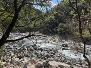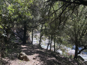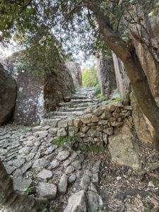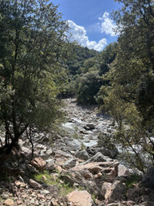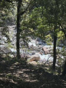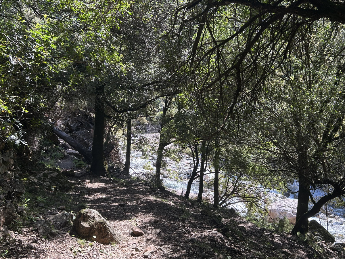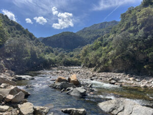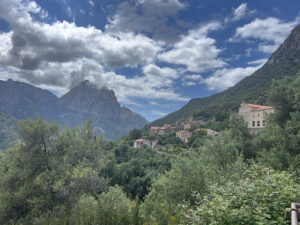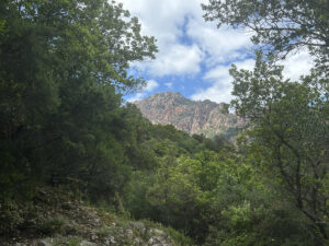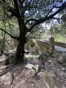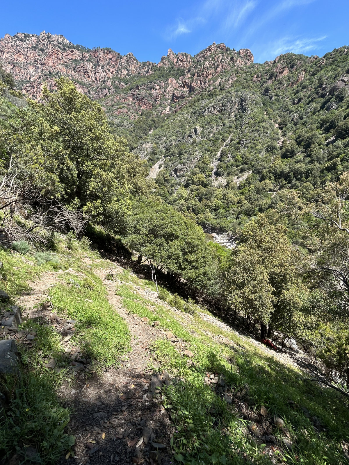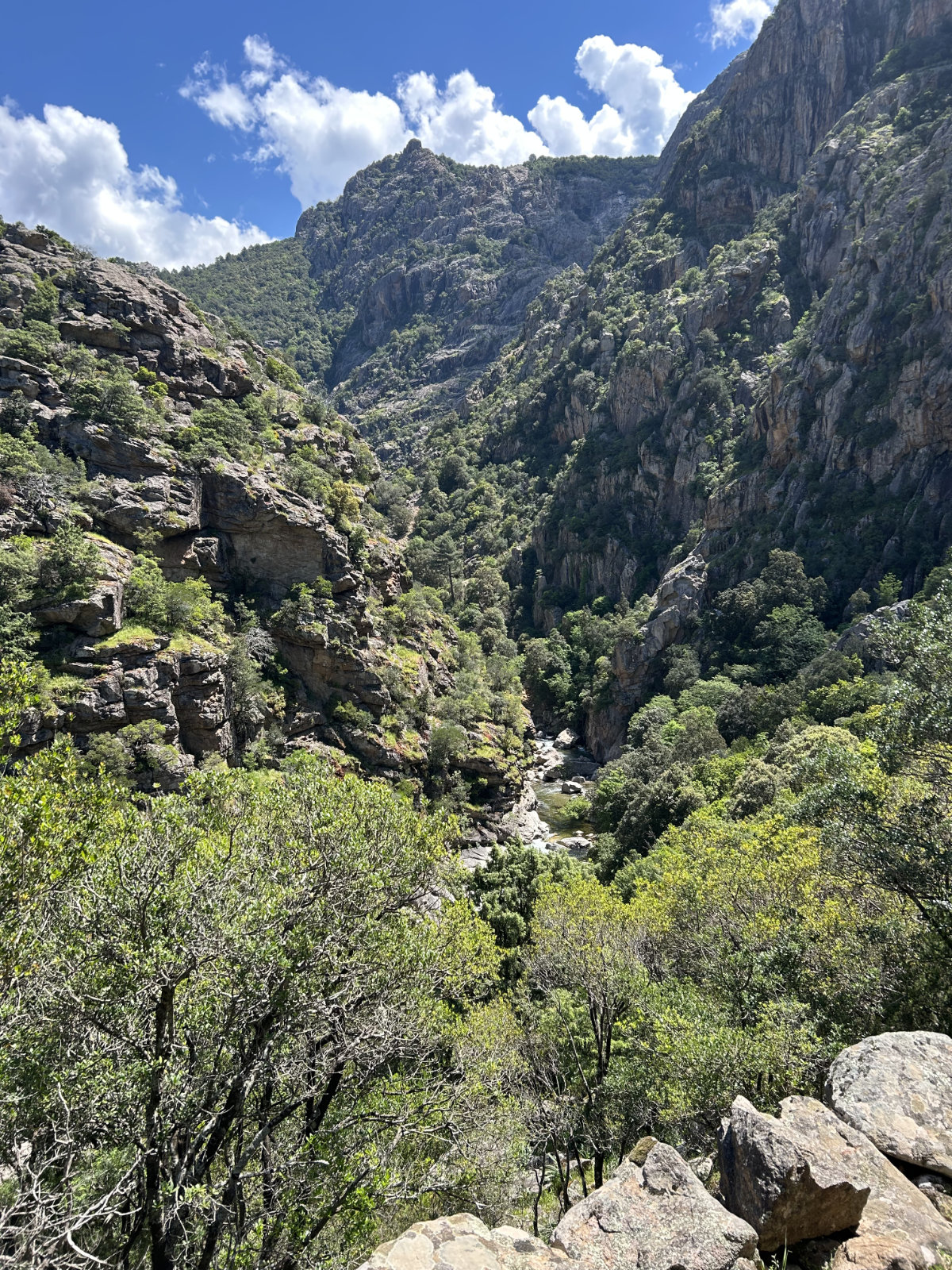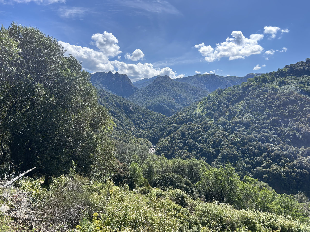 Die Spelunca-Schlucht liegt Zwischen Ota und Evisa. Hier haben sich die Portozuflüsse Lonca, Tavulella und Aitone tief in den Fels gegraben. Das Ergebnis andauernder Erosion ist ein über dreihundert Meter tiefes Tal mit stellenweise steilen Wänden und erfrischenden Naturpools. Von Ota aus steigen wir ab in die Schlucht, wir hören das Rauschen des Gebirgsflusses weit unter uns. Als wir die Talsohle erreichen, weiss ich schon, welch Aufstieg uns auf dem Rückweg erwartet. Beiderseits des Weges steigen Felswände steil empor. Wir folgen dem tosenden Fluss aufwärts, der sich in seinem breiten Bett den Weg zwischen Geröll und Felsen bahnt, über Geröllhalden und steinige Wege bis zur Genueserbrücke Pont Génois de Pianella (auch Ponte Vecchiu genannt). Wir überqueren die Brücke und kraxeln auf allen Vieren den Hang hoch, bis uns das zu blöd wird, wir kehren um und rutschen, teilweise auf dem Hosenboden, wieder runter, bis wir bei der Brücke auf sicheren Grund stossen. Wir folgen nun dem Weg auf der gegenüberliegenden Seite bis zur Brücke (Les 2 Ponts). Hier beginnt der spektakulärste Teil unserer Tour, durch die enge Spelunca-Schlucht entlang des Tavulella-Bachs zur Genueserbrücke Pont de Zaglia. Wir rasten auf grossen Felsen mitten im Flussbett und bestaunen die sagenhafte Landschaft, die uns umgibt. Als wir nach vier Stunden wieder in Ota eintreffen, bin ich einigermassen erschöpft und überwältigt von den Eindrücken, die uns das Naturschauspiel der Spelunca-Schlucht geboten hat.