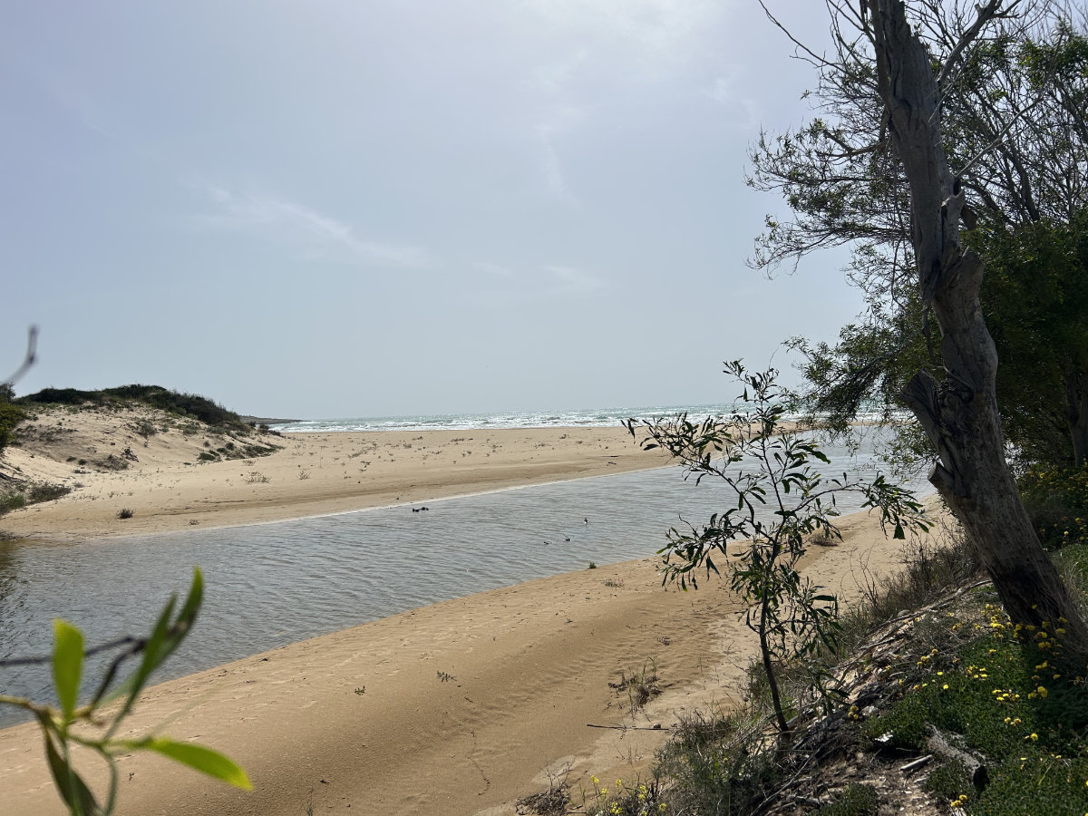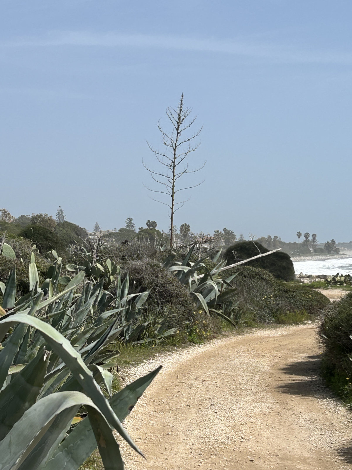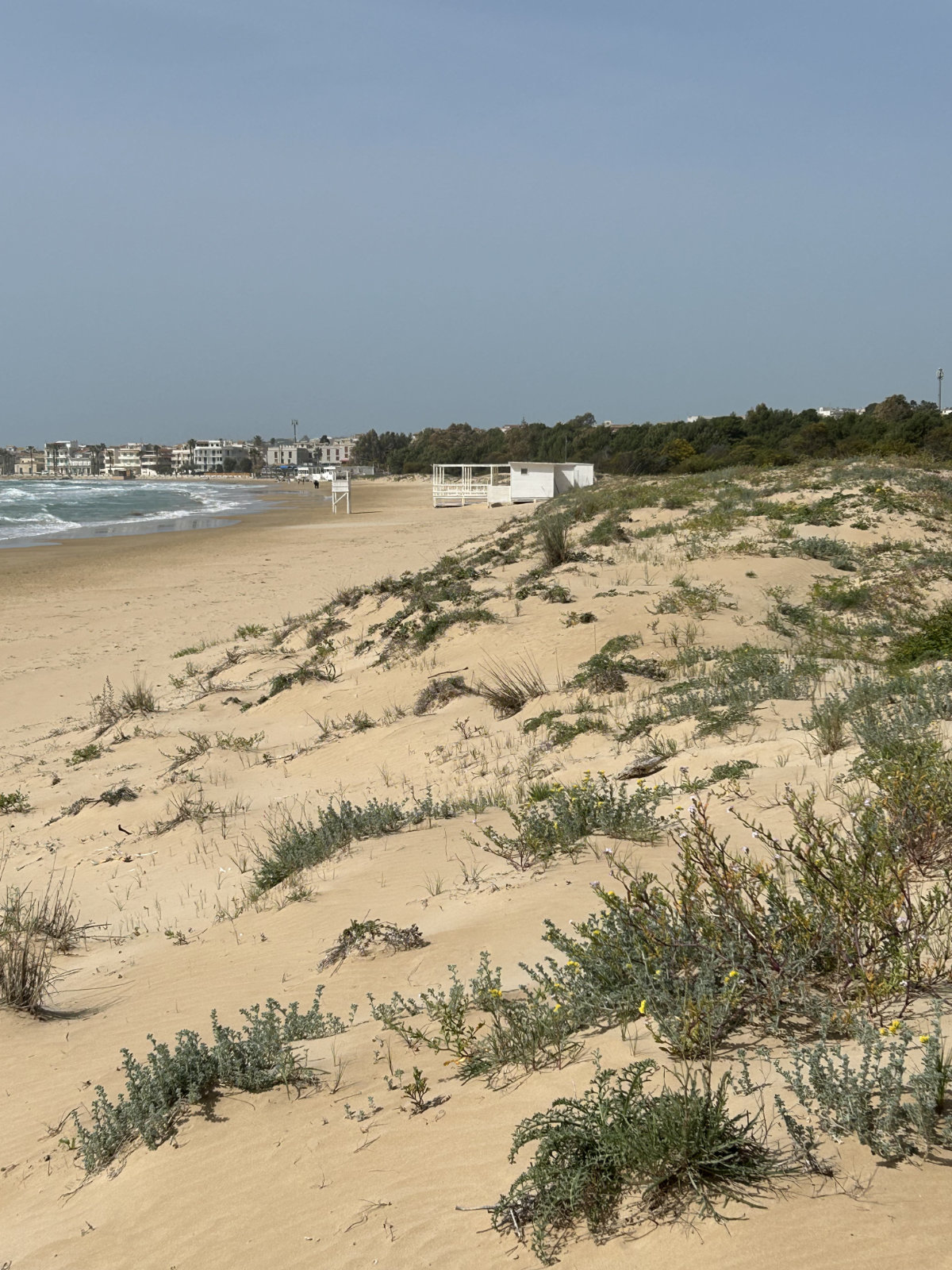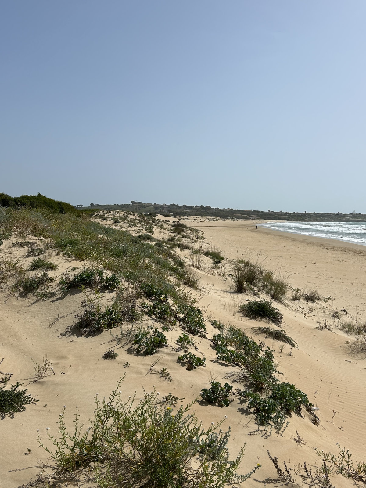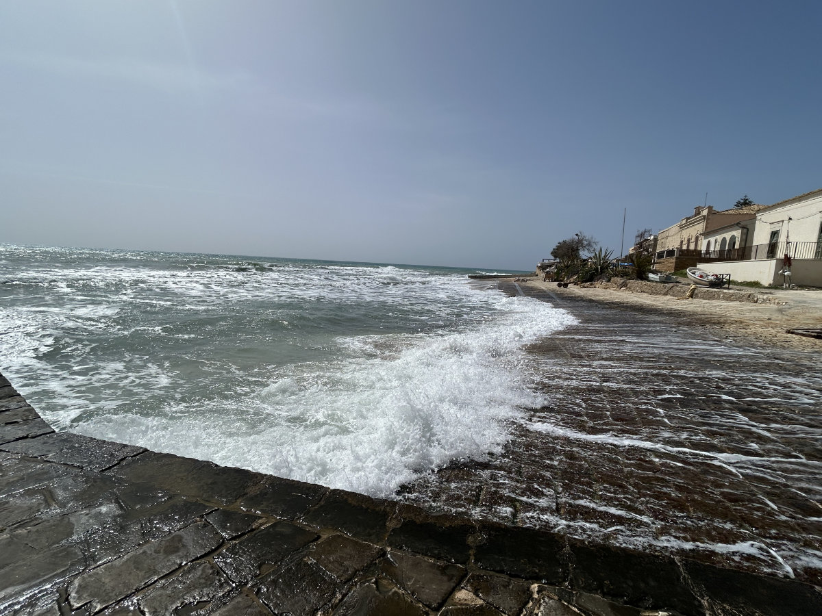 Wir waten barfuss durch den nassen Sand am Strand, manchmal umspült das Meerwasser unsere Füsse, das Wasser ist kalt, erfrischt uns von unten für den Rückweg. Nun ist es windstill, und die Märzsonne heizt uns schon ordentlich ein. Der Himmel über uns ist blau, am Horizont gelbgrau vom Saharastaub. Bevor wir ins Auto steigen und heimfahren, setzen wir uns in den Park, um im Schatten der Pinien etwas abzukühlen. Könnte ein Tag auf Sizilen noch schöner sein als der heutige?