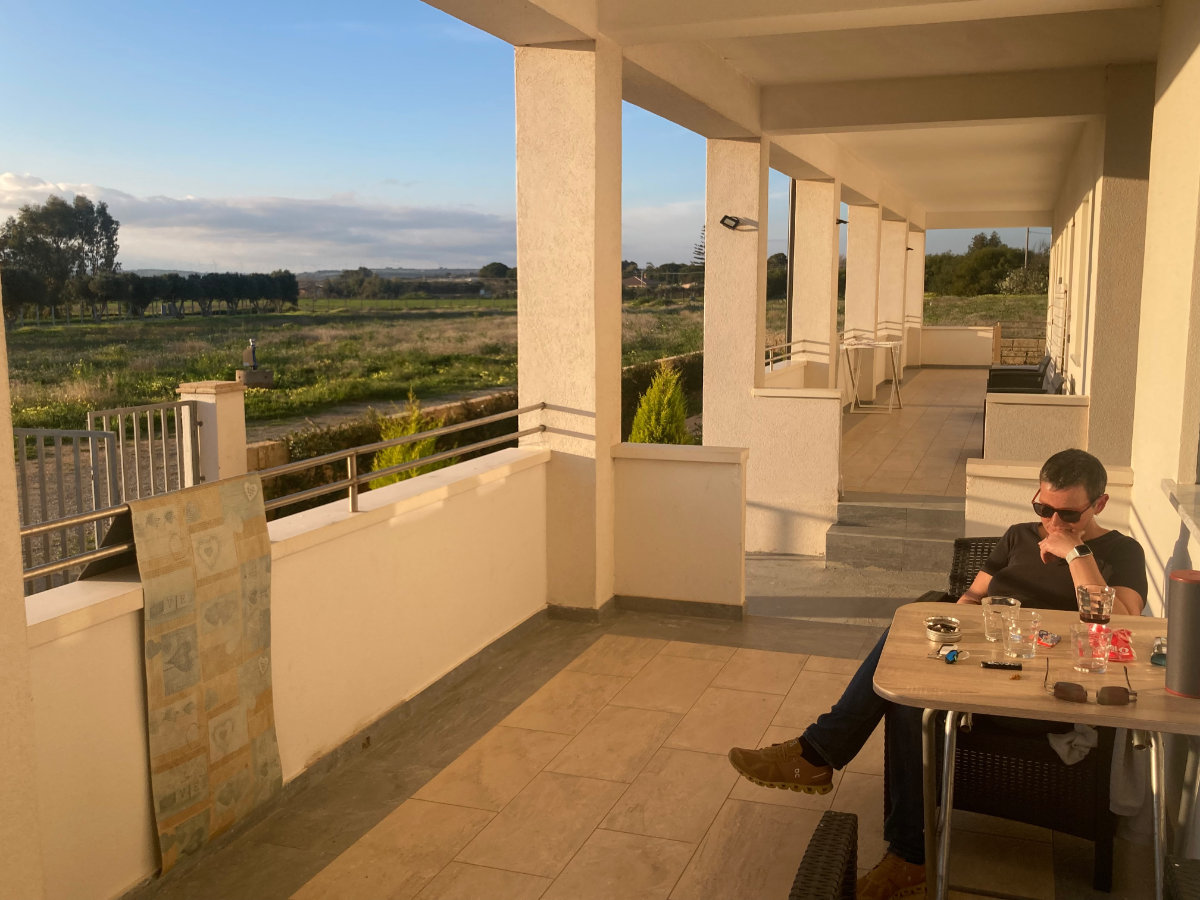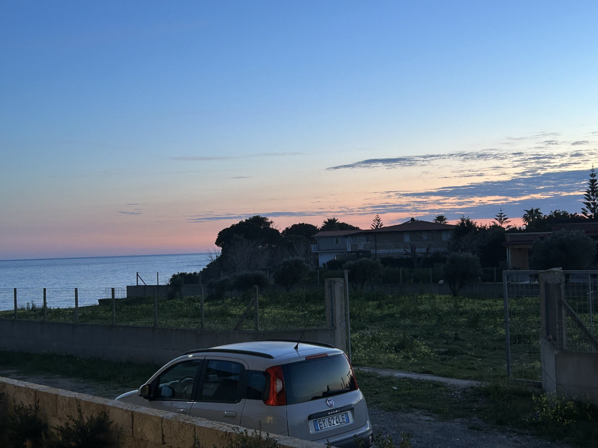 Während wir auf der Terrasse unserer Unterkunft sitzen, Naâman hören und den Blick aufs Meer und die Ferne richten, spüre ich, wie sich der «Flow» einstellt, eine Ruhe, manchmal auch Ergriffenheit. Es fühlt sich gut an, Zeit spielt eine untergeordnete Rolle, wir haben noch so viele Tage vor uns. Susanne gefällts und ich bin glücklich. Der Sonnenuntergang färbt den Himmel von Orange bis Dunkelrot über einem tiefblauen Mittelmeer, wir hören die Brandung, sehen einzelne Schleierwolken am Horizont und die Venus leuchtet hell in der Dämmerung.