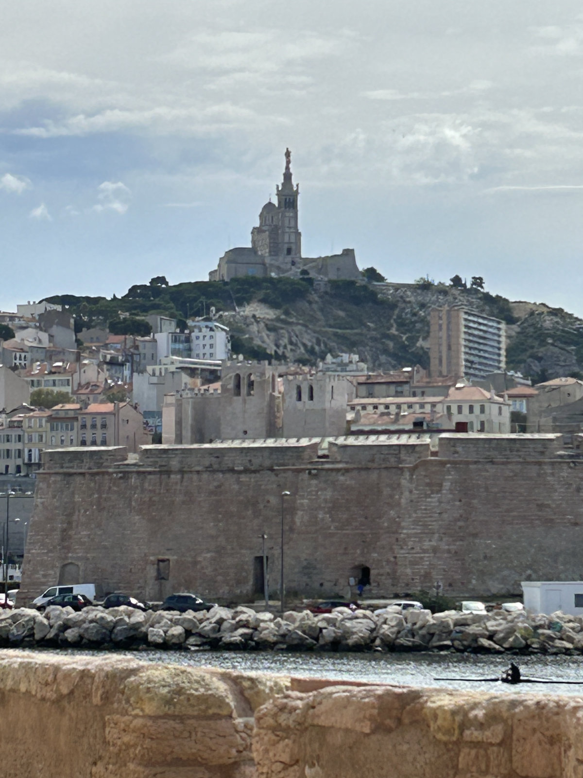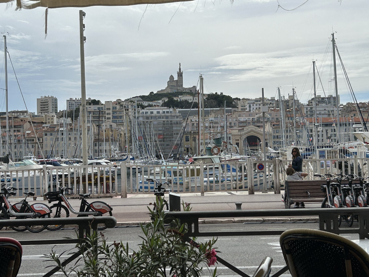 Wir gehen weiter, vorbei an der imposanten Cathédrale de la Major zum alten Hafen. Wir geniessen den Blick auf das Meer und das Wahrzeichen der Stadt, die Marien-Wallfahrtskirche Notre-Dame de la Garde, im Volksmund La Bonne Mère genannt.