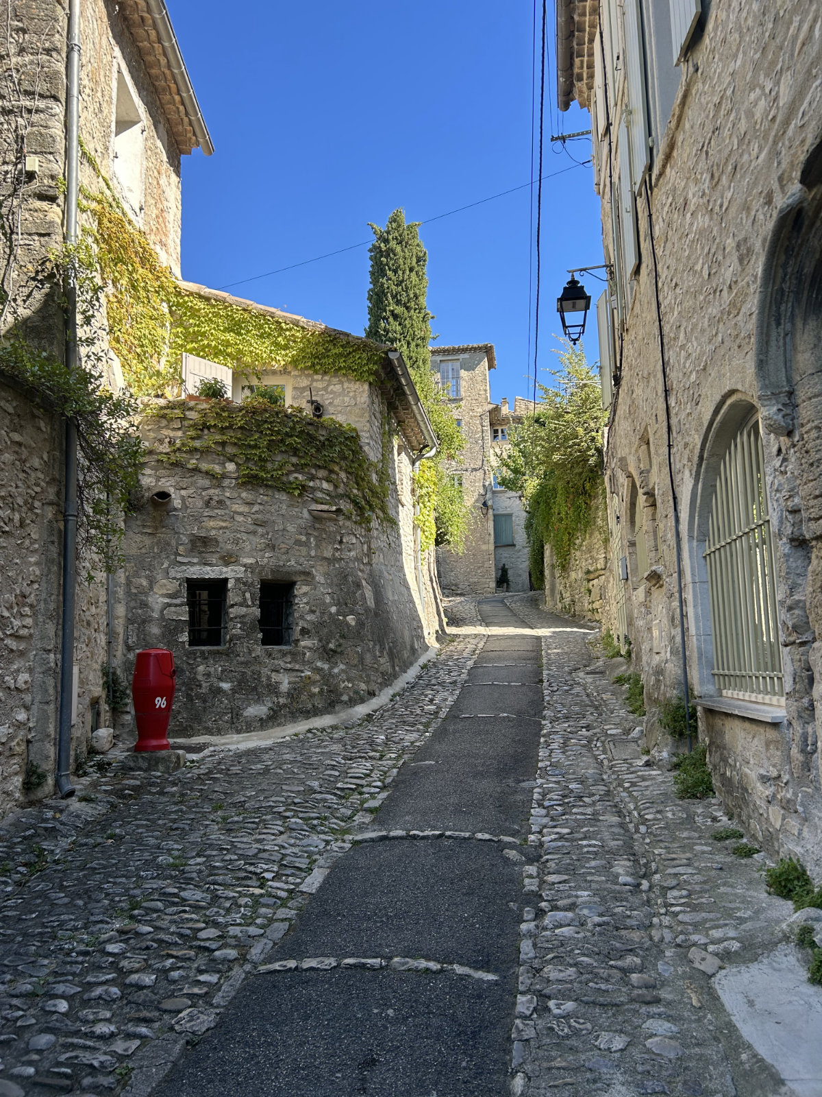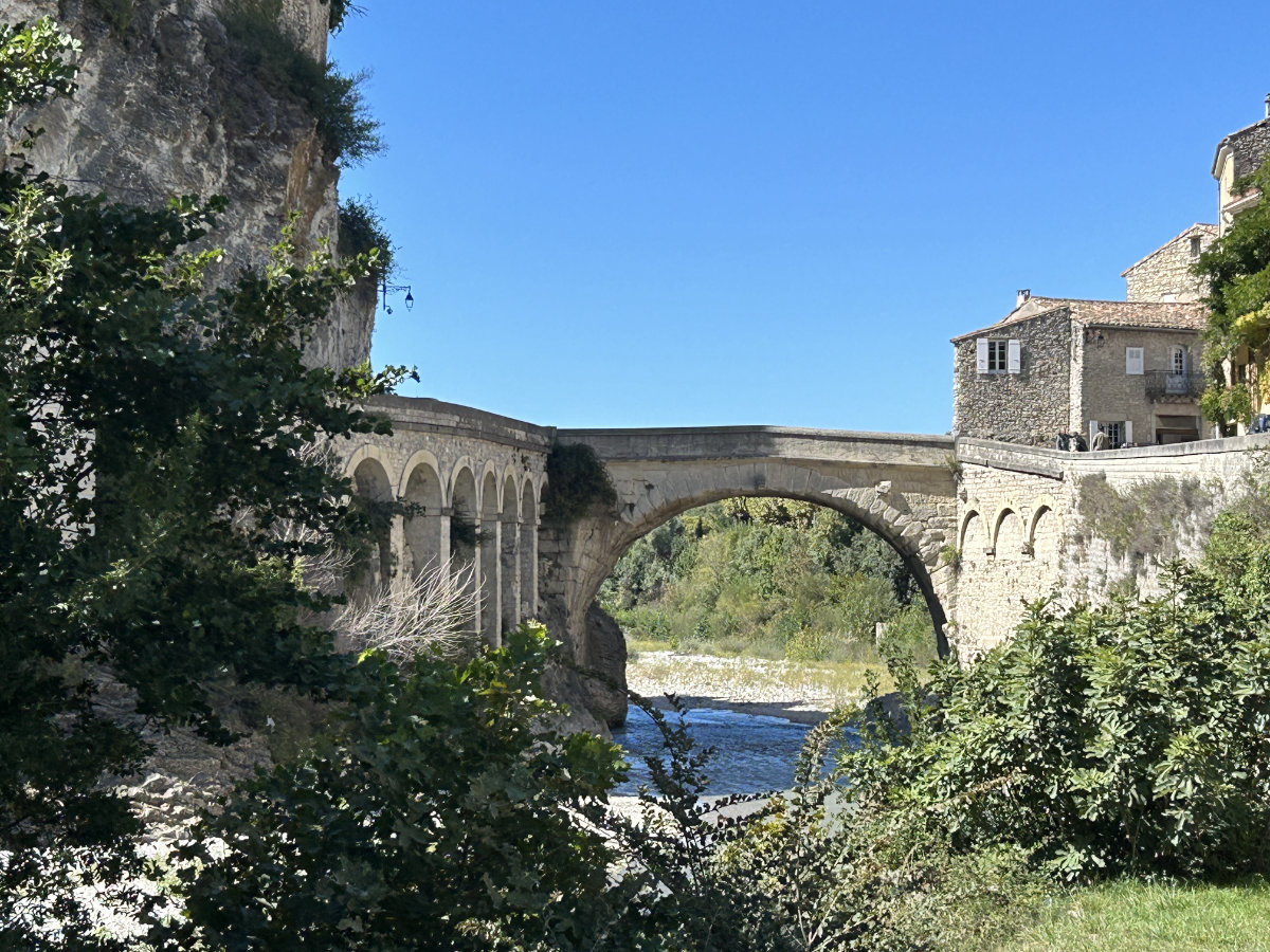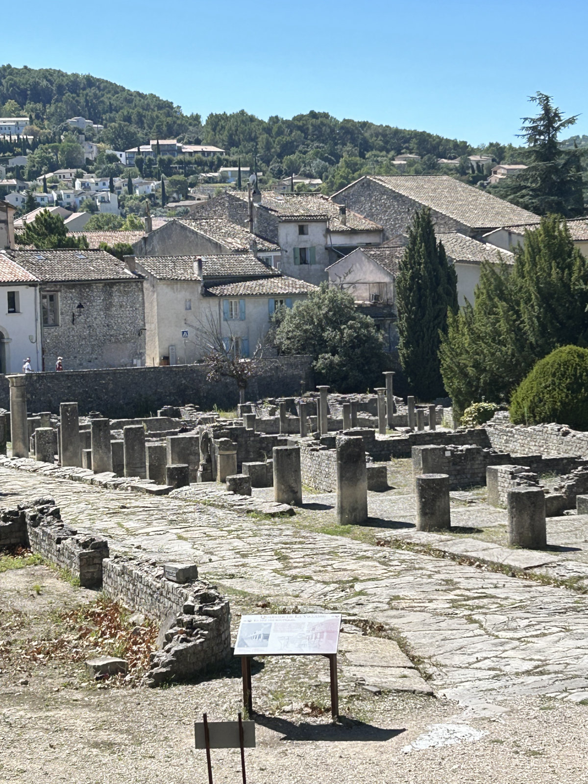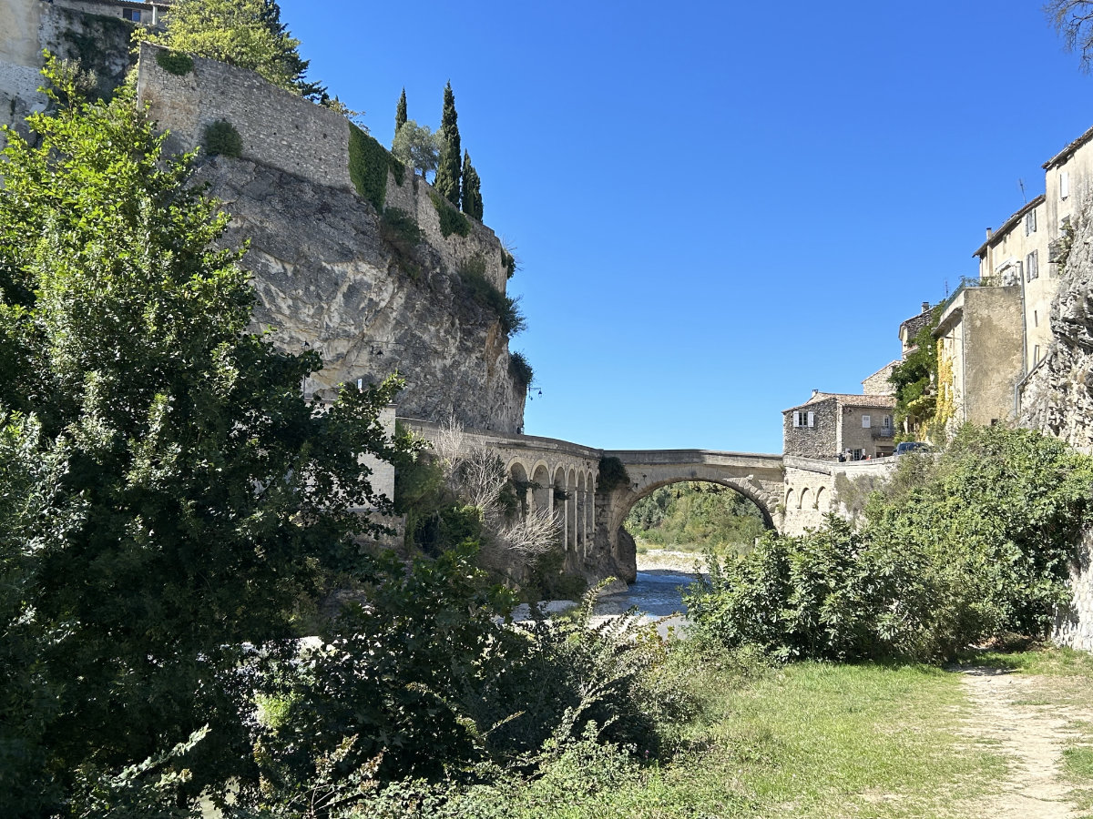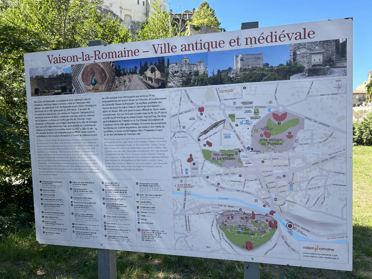 Wir haben die geplante Wanderung am Mont Ventoux für den letzten Tag vor unserer Weiterreise geplant, da die Wetterprognose nachlassenden Wind in Aussicht stellte. Tatsächlich begrüsste uns der Morgen mit einem wolkenlosen Himmel, Sonnenschein und wenig Wind. Perfekte Bedingungen für die geplante Tour, leider hat uns ein dämliches Amateurvelorennen einen Strich durch die Rechnung gemacht. Die Strasse zur Passhöhe war gesperrt! Wir waren bereits eine Dreiviertelstunde unterwegs und hätten einen weiten Umweg machen müssen, um zum Startpunkt unserer Wanderung oder auf die Passhöhe zu gelangen, das war uns zu blöd! Also besuchten wir stattdessen die Stadt Vaison-la-Romaine, kehrten dort ein, spazierten an den Ausgrabungen aus der Römerzeit vorbei zur mittelalterlichen Oberstadt, die auf einen Felsen gebaut wurde. Wir überquerten die römische Rundbrücke über den Fluss Ouvèze und erklommen über Fels und steinige Pfade den Weg zur Oberstadt, besuchten die Kathedrale und beäugten den Wehrturm, der ganz zuoberst auf dem Felsen erbaut wurde. Wir wurden mit schönen Ausblicken auf die Altstadt unter uns, die Rebhaine und die in Hügel eingebettete Landschaft der Provence belohnt. Statt einer Wanderung auf dem höchsten Berg der Provence, gab es einen netten Sonntagsspaziergang – auch schön!