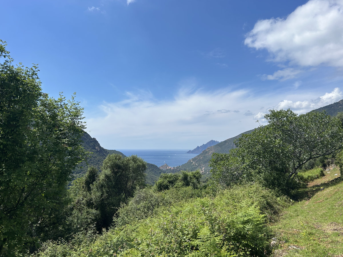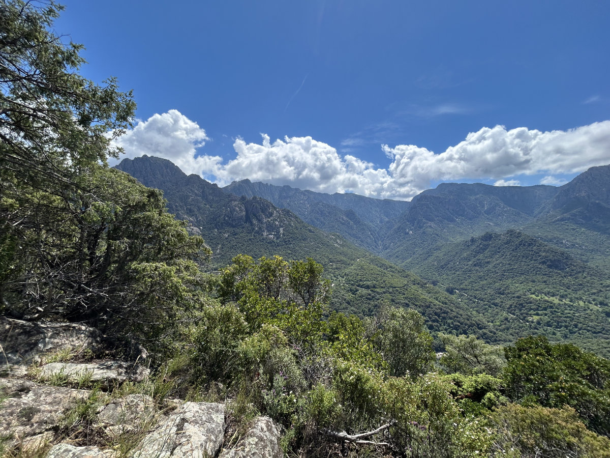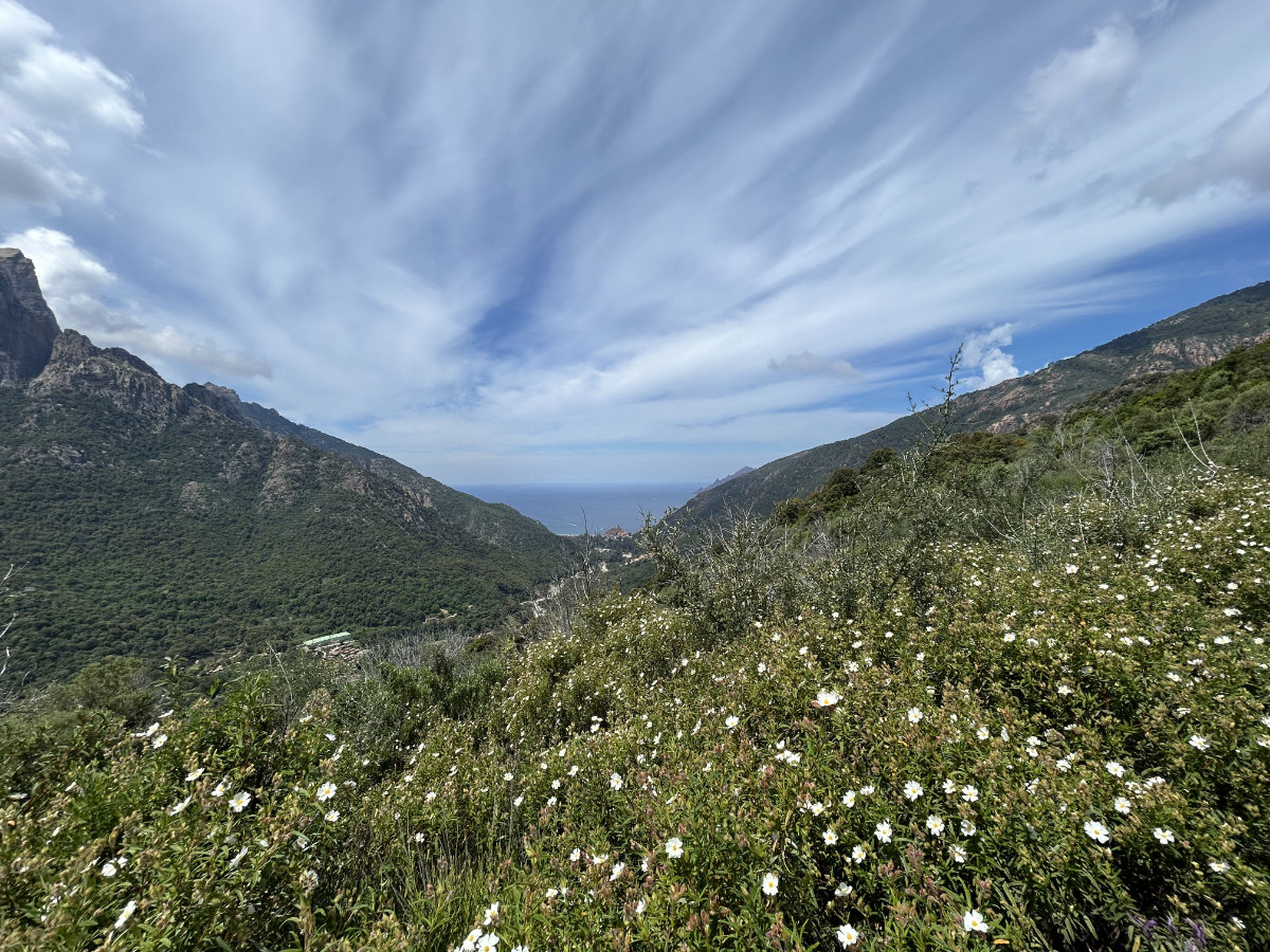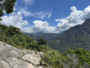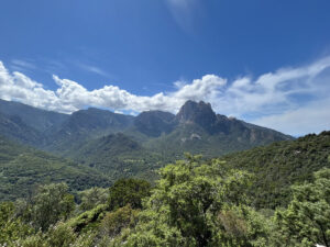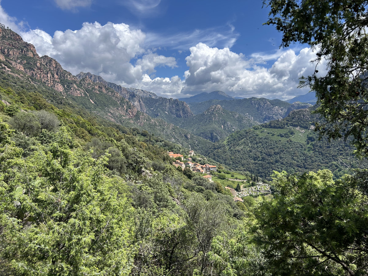 Nun gehts nurmehr bergab, teils auf gut begehbaren Pfaden durch den schattigen Wald, teils entlang der D124, der Serpentinenstrasse, die von Porto nach Ota hinaufführt.