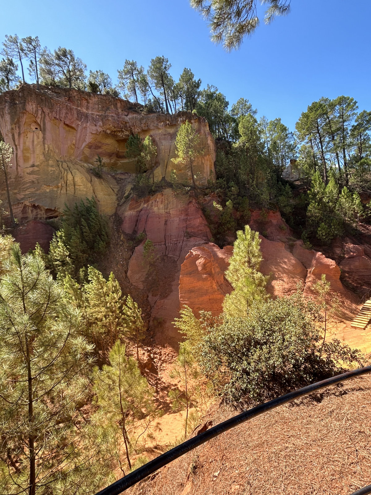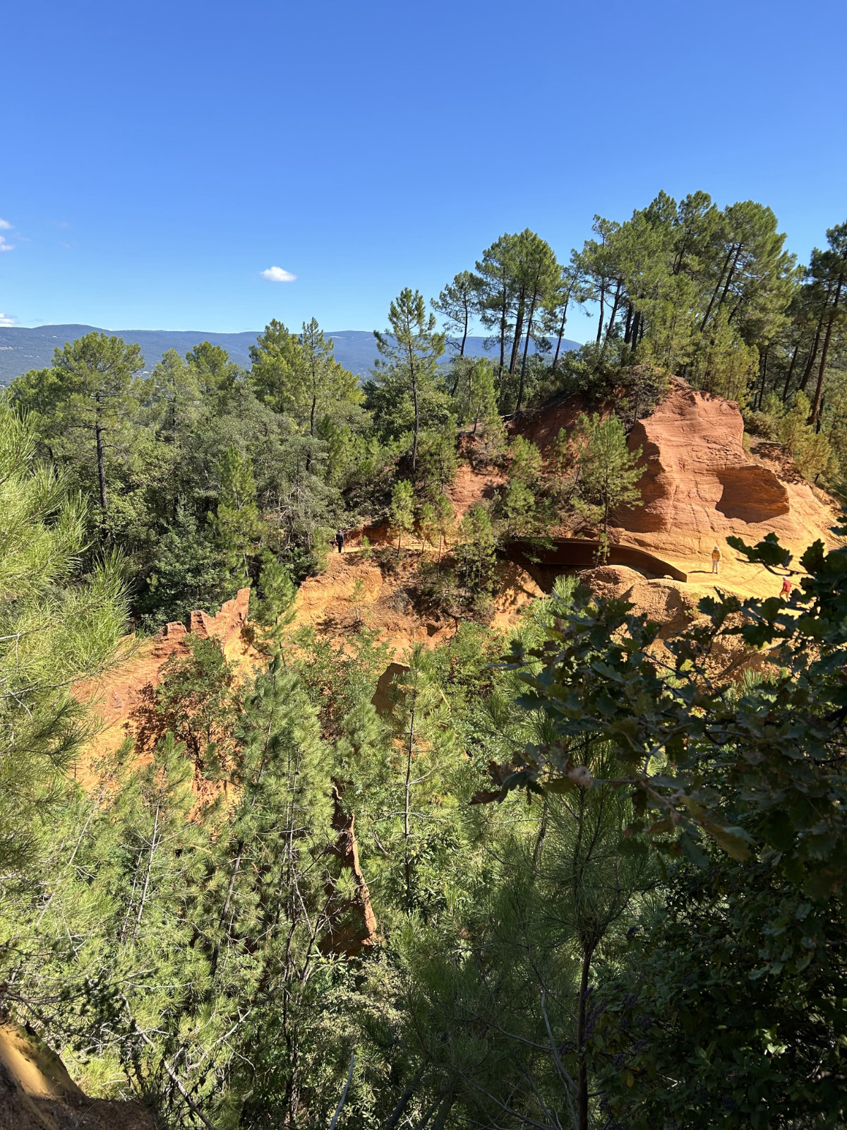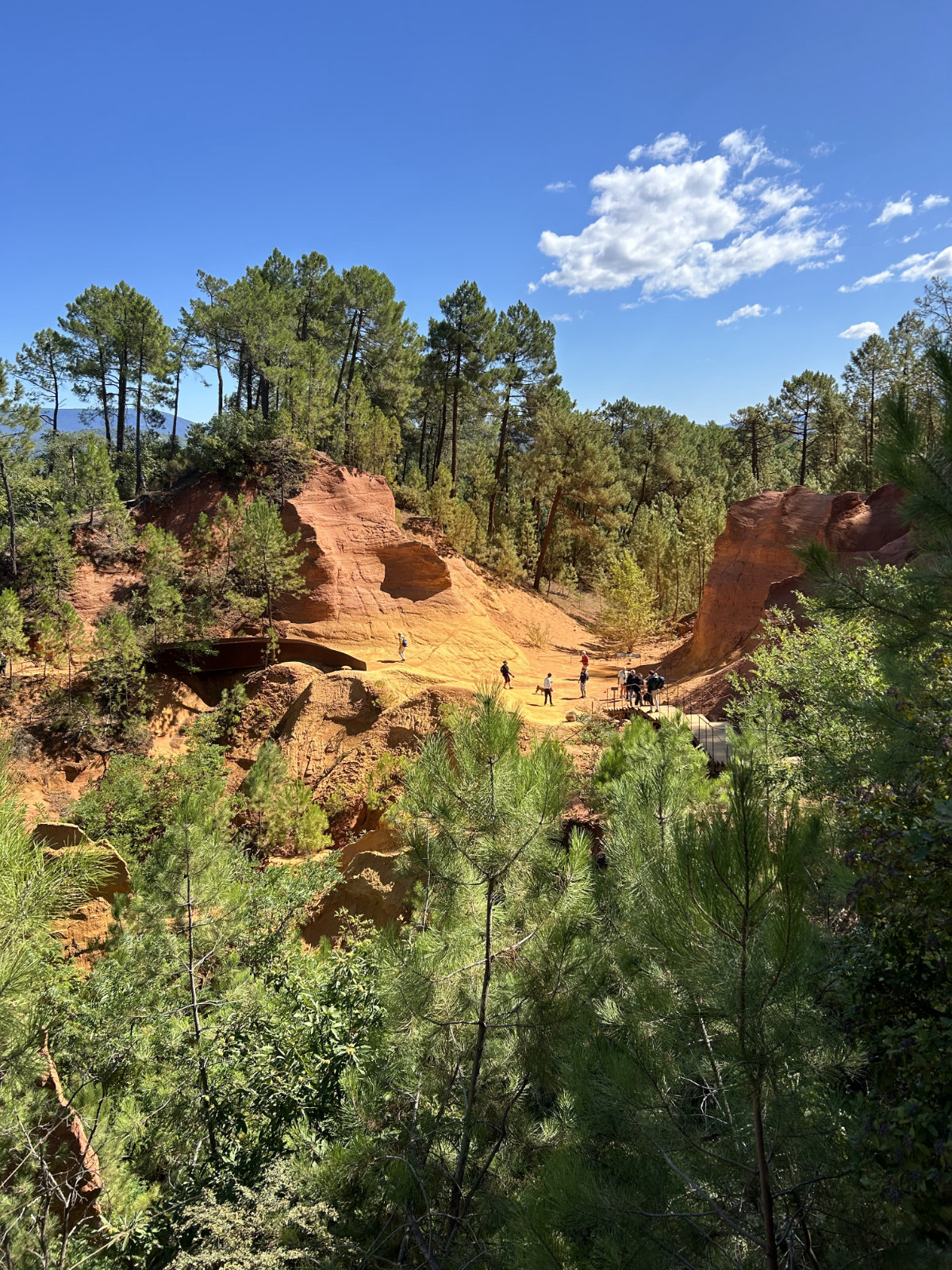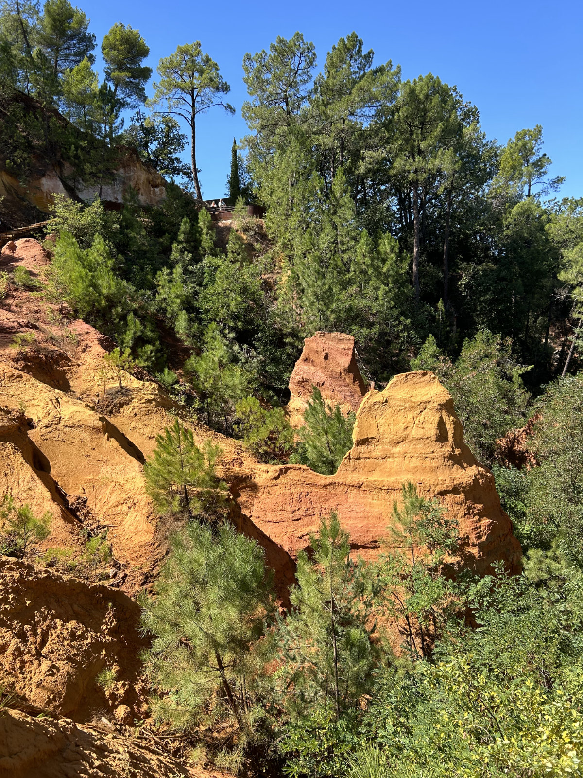Unglaubliche Menschenmassen wälzten sich durch das hübsche Dorf und besuchten den Sentier des Ocres, den Ockerlehrpfad im Ockersteinbruch. Der Eintritt kostet 3.50 Euro. Der Weg durch die alten Ockersteinbrüche bietet bemerkenswerte Landschaften und wurde durch die industrielle Aktivität der Ockergewinnung geformt und dann durch die Erosion verändert.