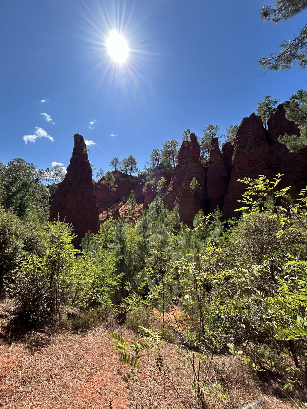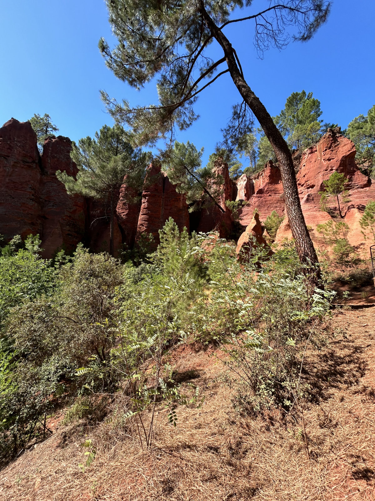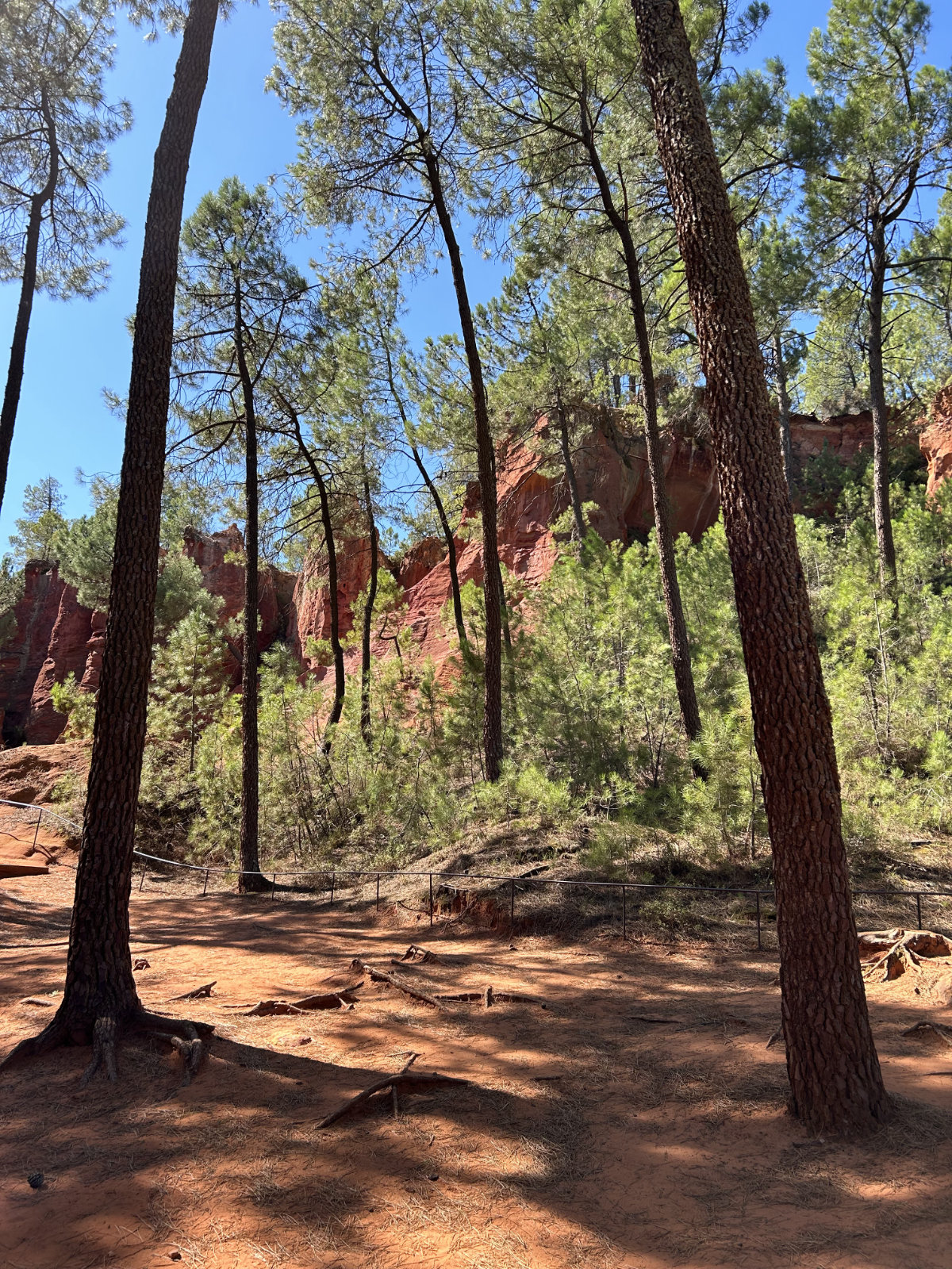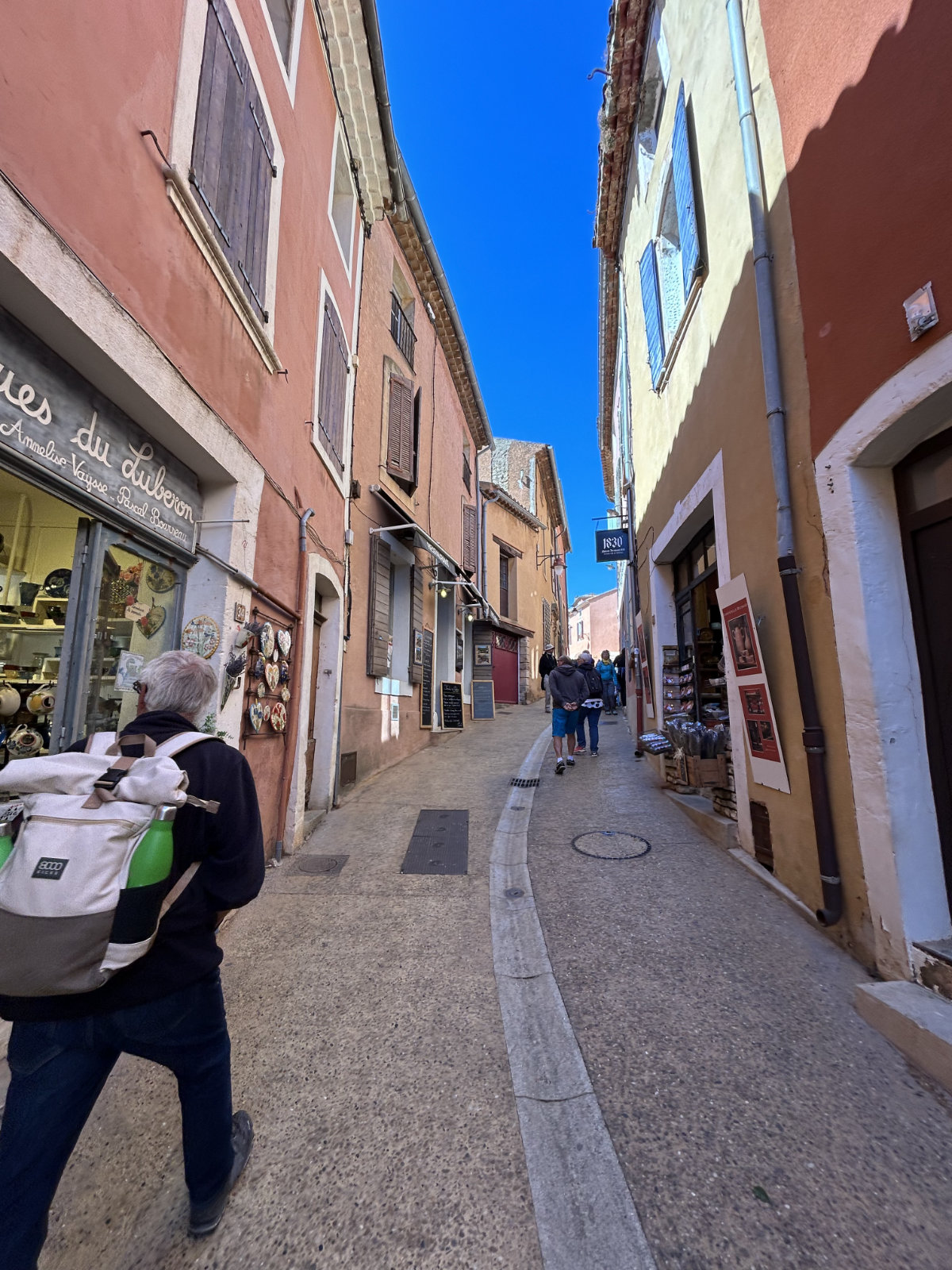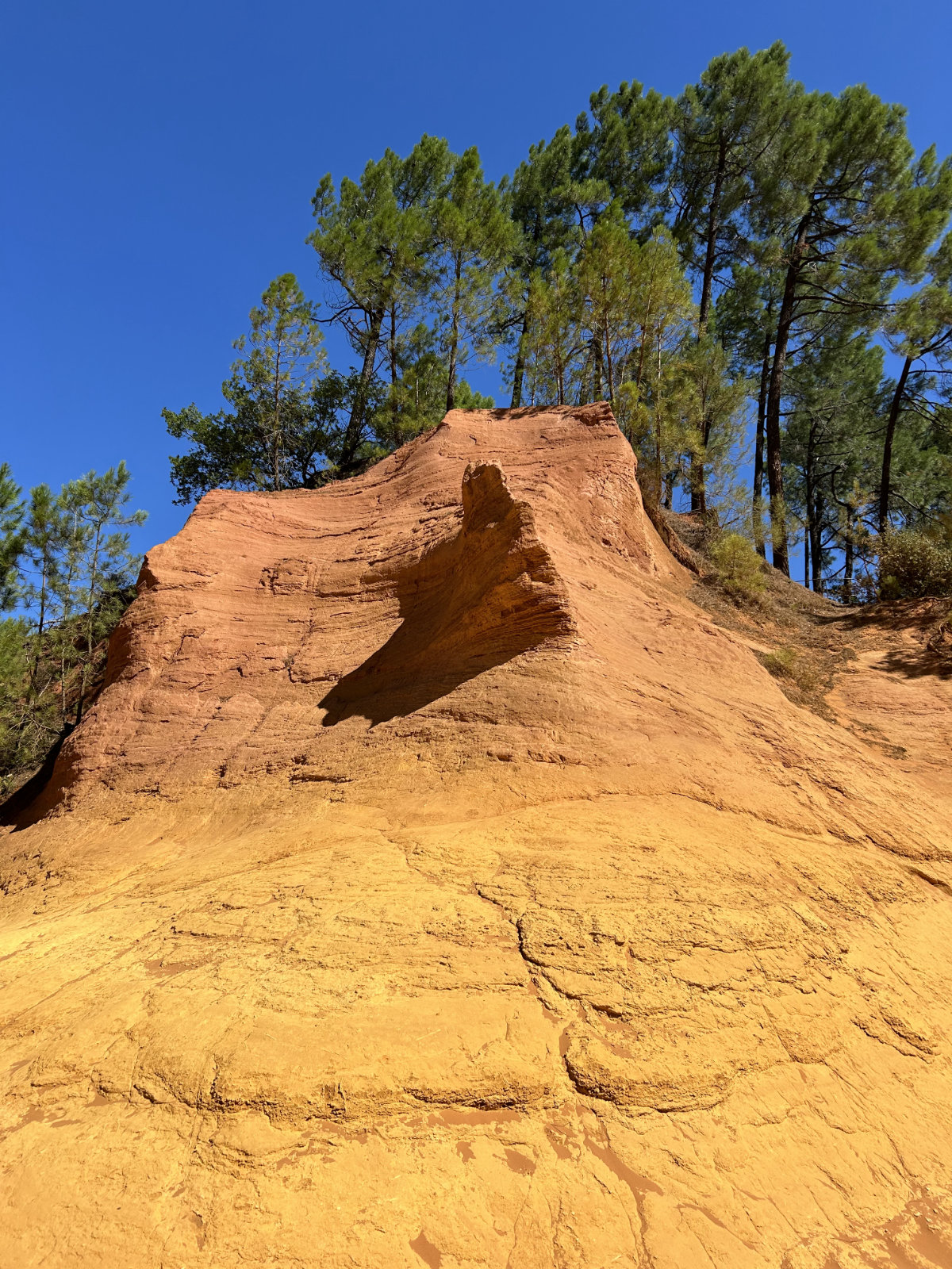 Unglaubliche Menschenmassen wälzten sich durch das hübsche Dorf und besuchten den Sentier des Ocres, den Ockerlehrpfad im Ockersteinbruch. Der Eintritt kostet 3.50 Euro. Der Weg durch die alten Ockersteinbrüche bietet bemerkenswerte Landschaften und wurde durch die industrielle Aktivität der Ockergewinnung geformt und dann durch die Erosion verändert.
