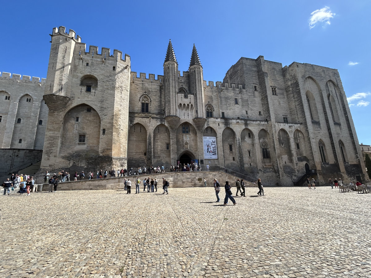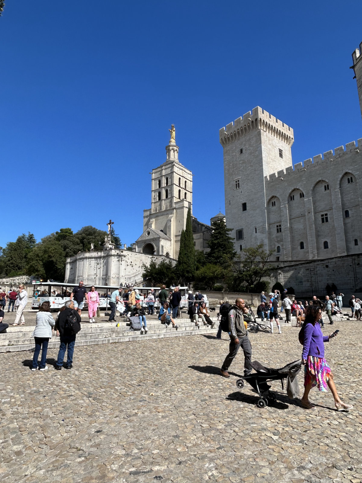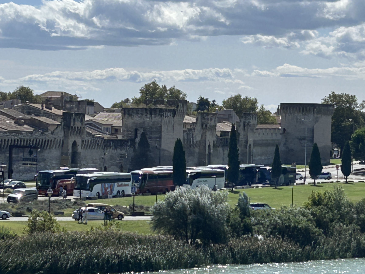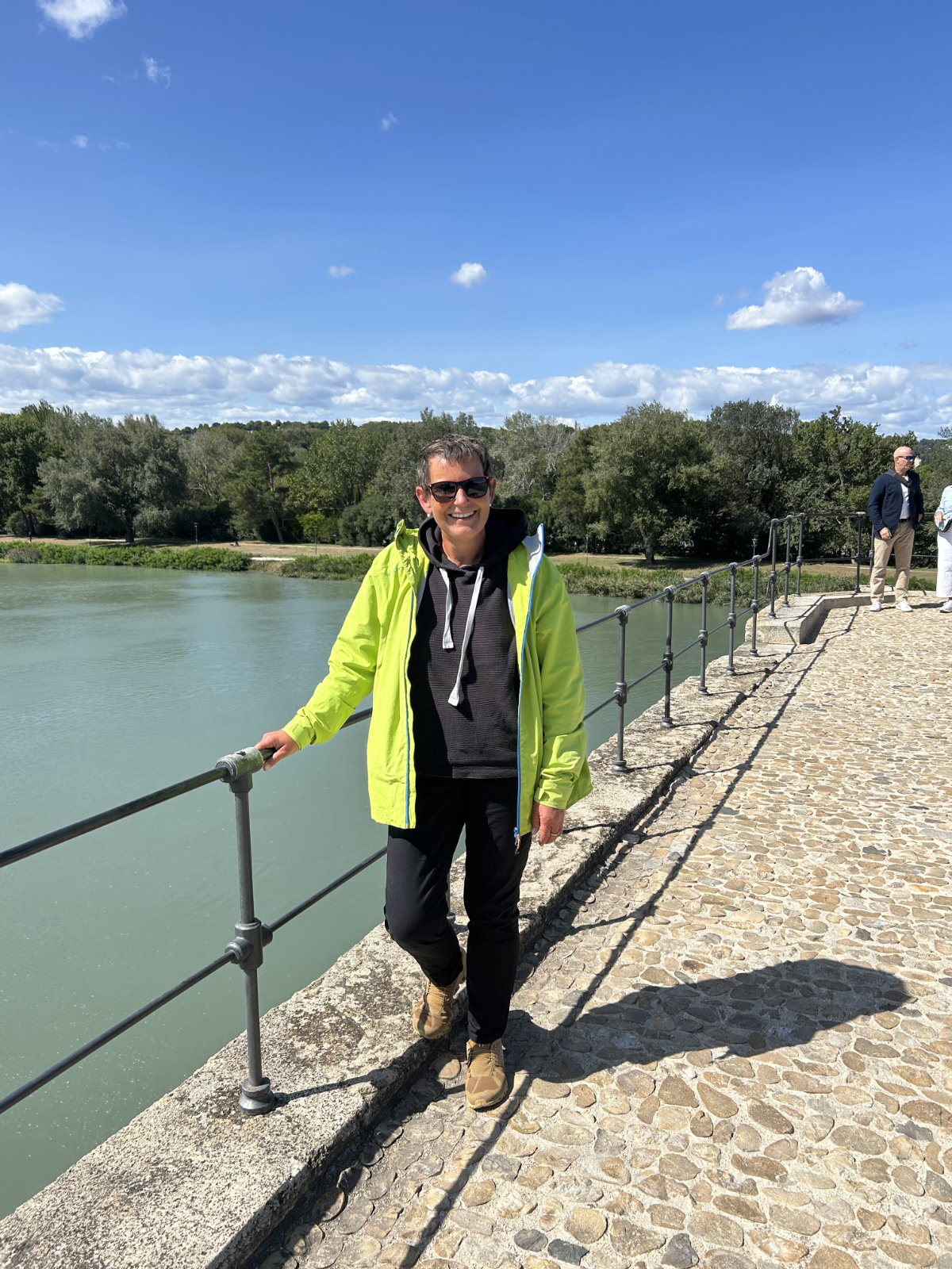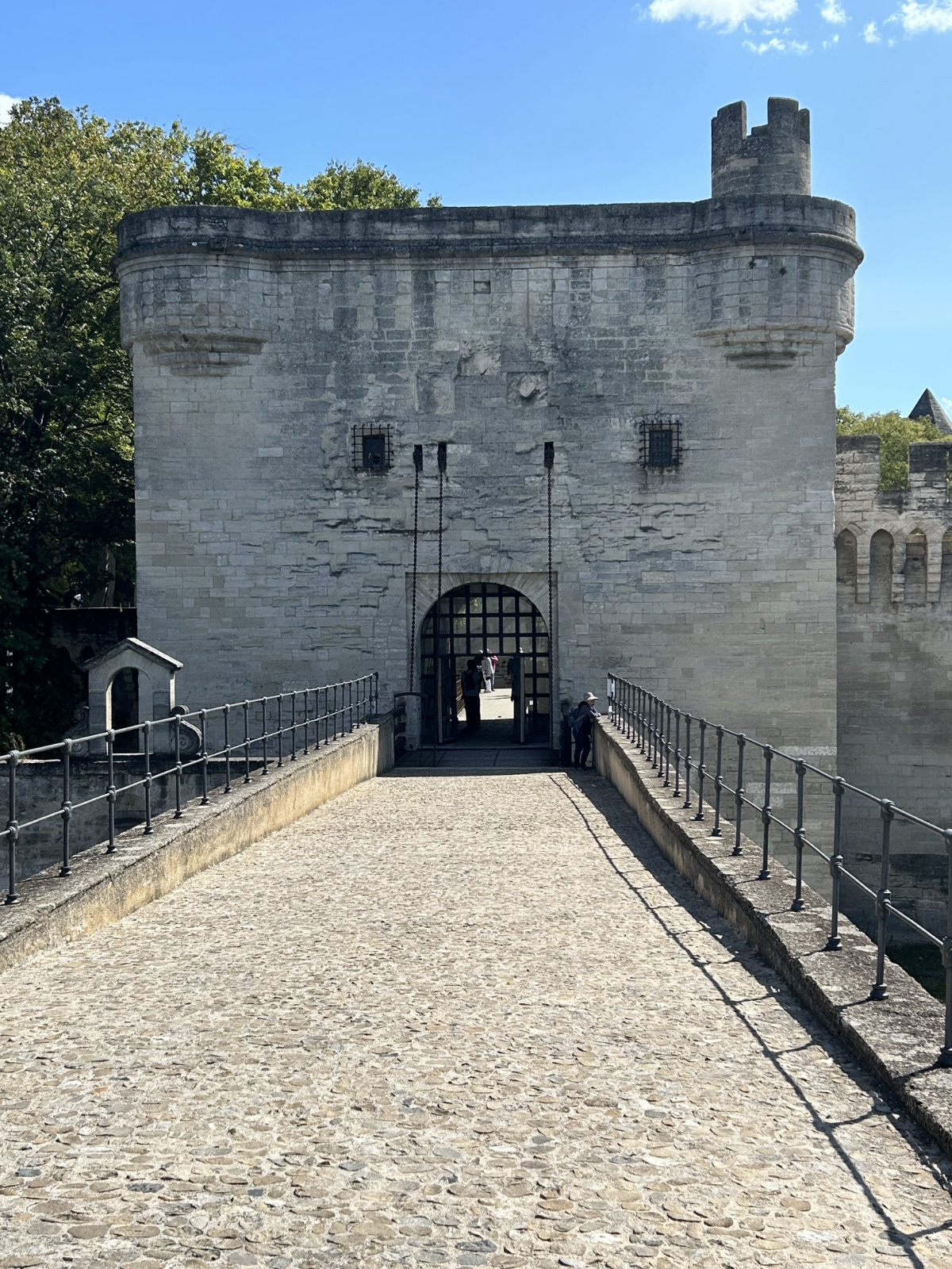 Wir spazierten um den gewaltigen Palais des Papes, wo die Touristen Schlange standen, um ins Innere zu gelangen. Uns interessierte das weniger, aber wir wollten auf die berühmte Brücke und zahlten dafür 5 Euro pro Person. Von ihren zweiundzwanzig Brückenbogen, die im 14. Jahrhundert über die Rhone gebaut wurden, hielten der Flut von 1668 nur vier Bogen stand, so dass die Brücke heute im Fluss endet.