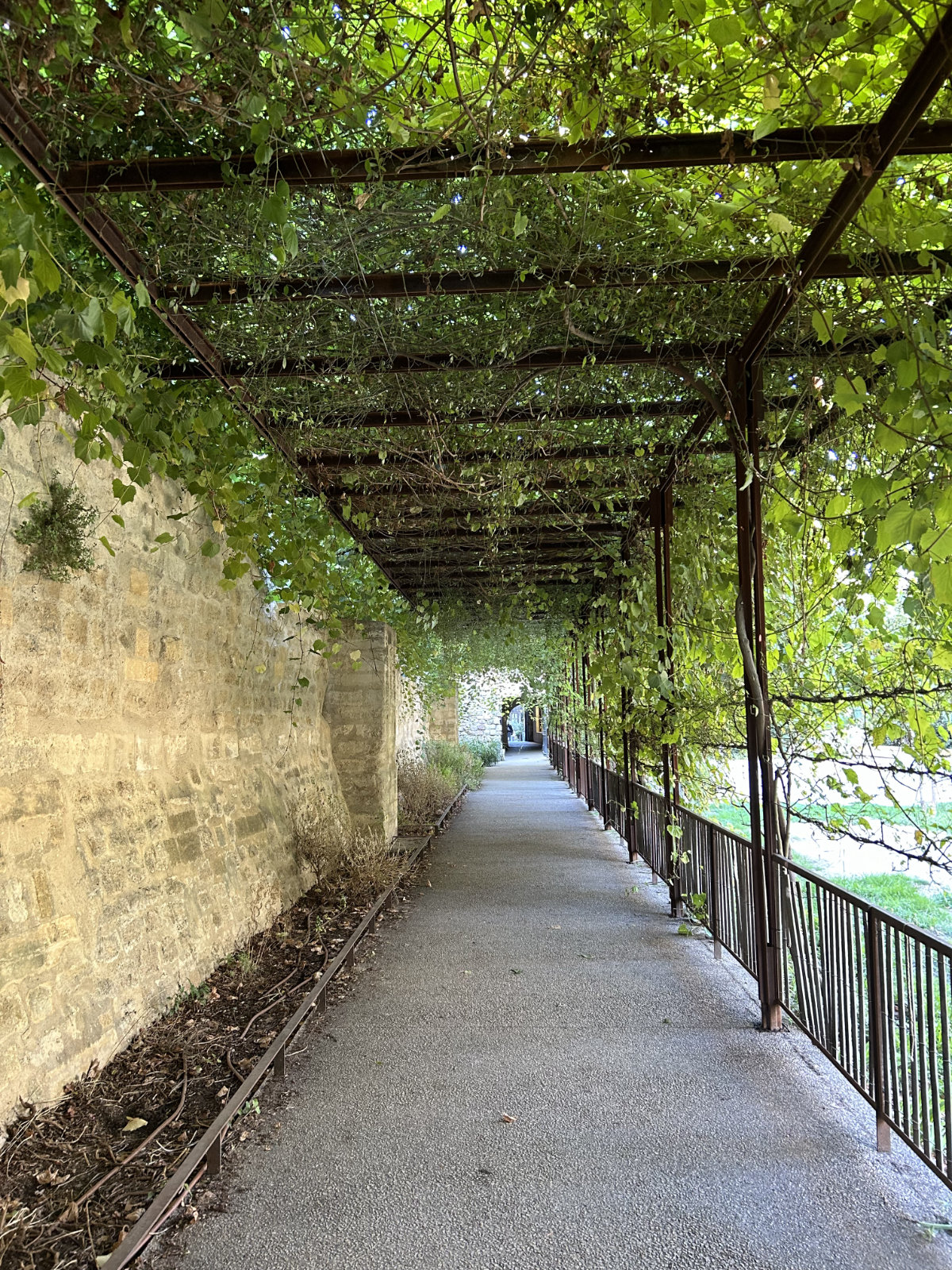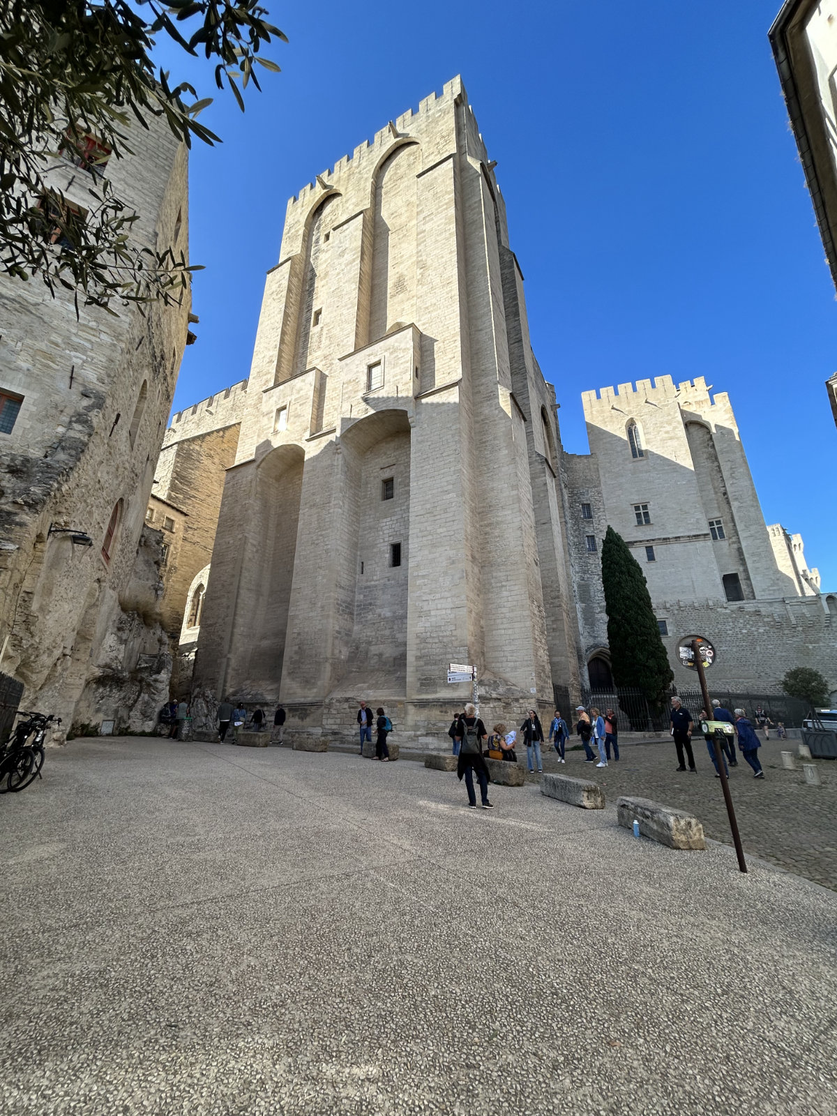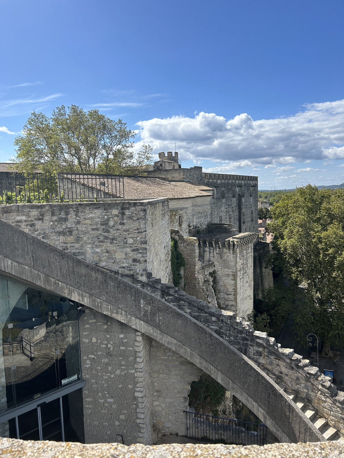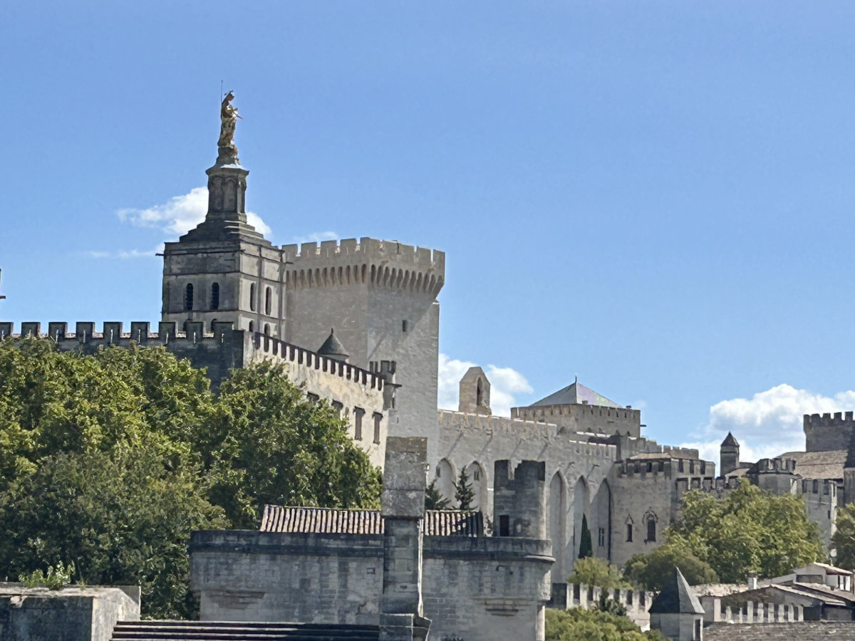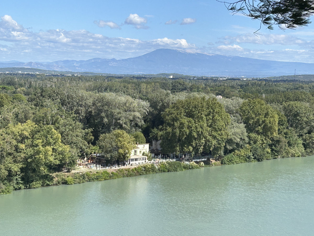 Der Bahnhof liegt mitten in der Altstadt, wir schlenderten der gewaltigen Stadtmauer entlang, vorbei an der berühmten Brücke, dem Pont Saint-Bénézet, hoch zum Rocher des Doms, einem Felsvorsprung am linken Ufer der Rhone, der als öffentlicher Garten eingerichtet wurde. Vom Rocher des Doms sahen wir auf die Altstadt herab, auf die Brücke und die Rhone, auf den Palais des Papes, den gotischen Papstpalast, und auf den Mont Ventoux, mit über 1900m die höchste Erhebung in der Provence.